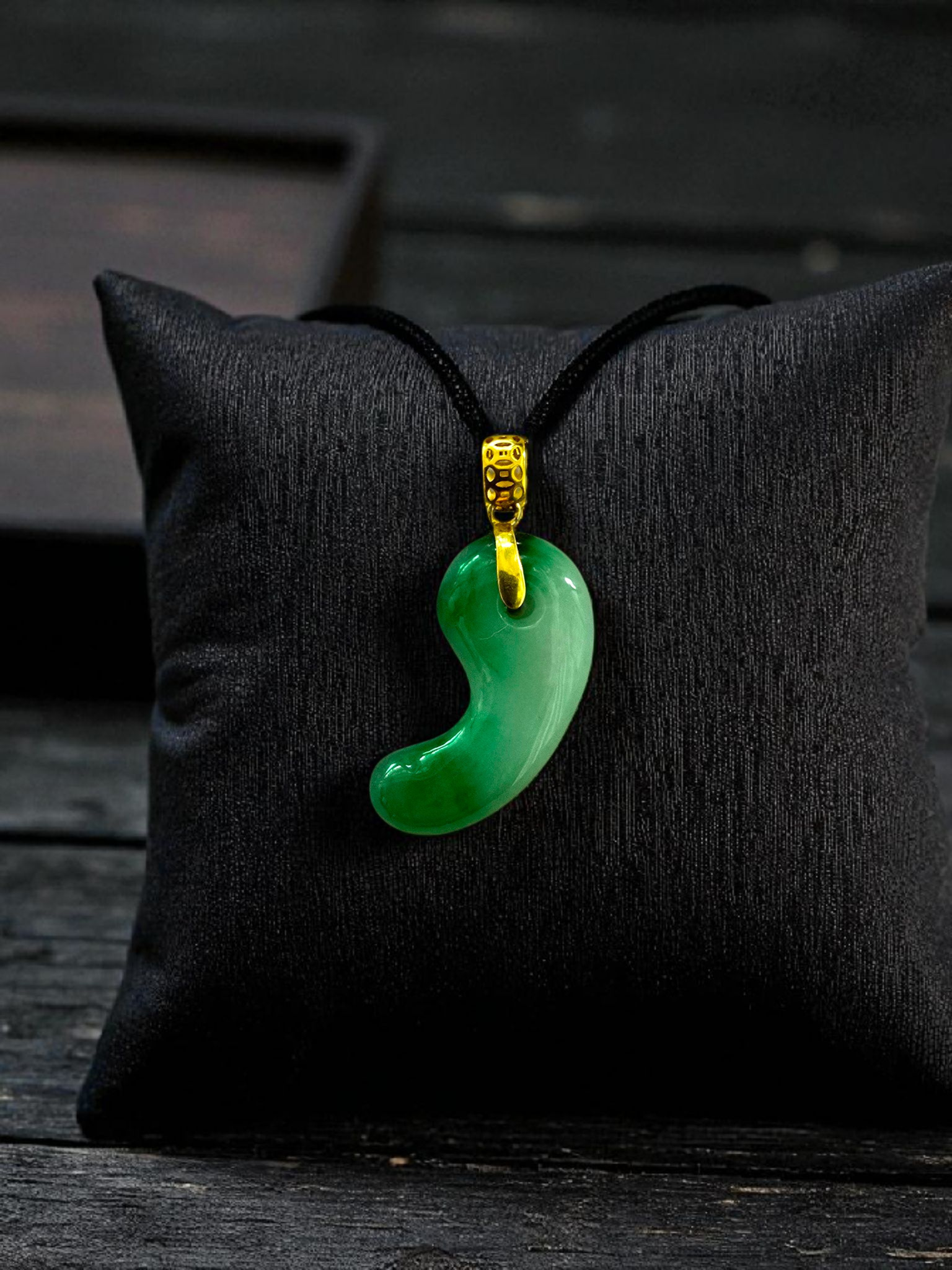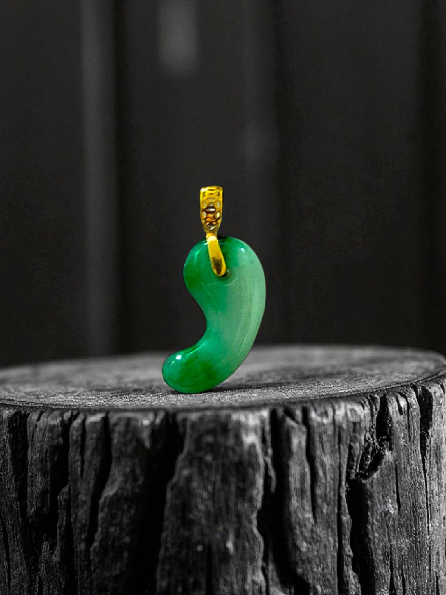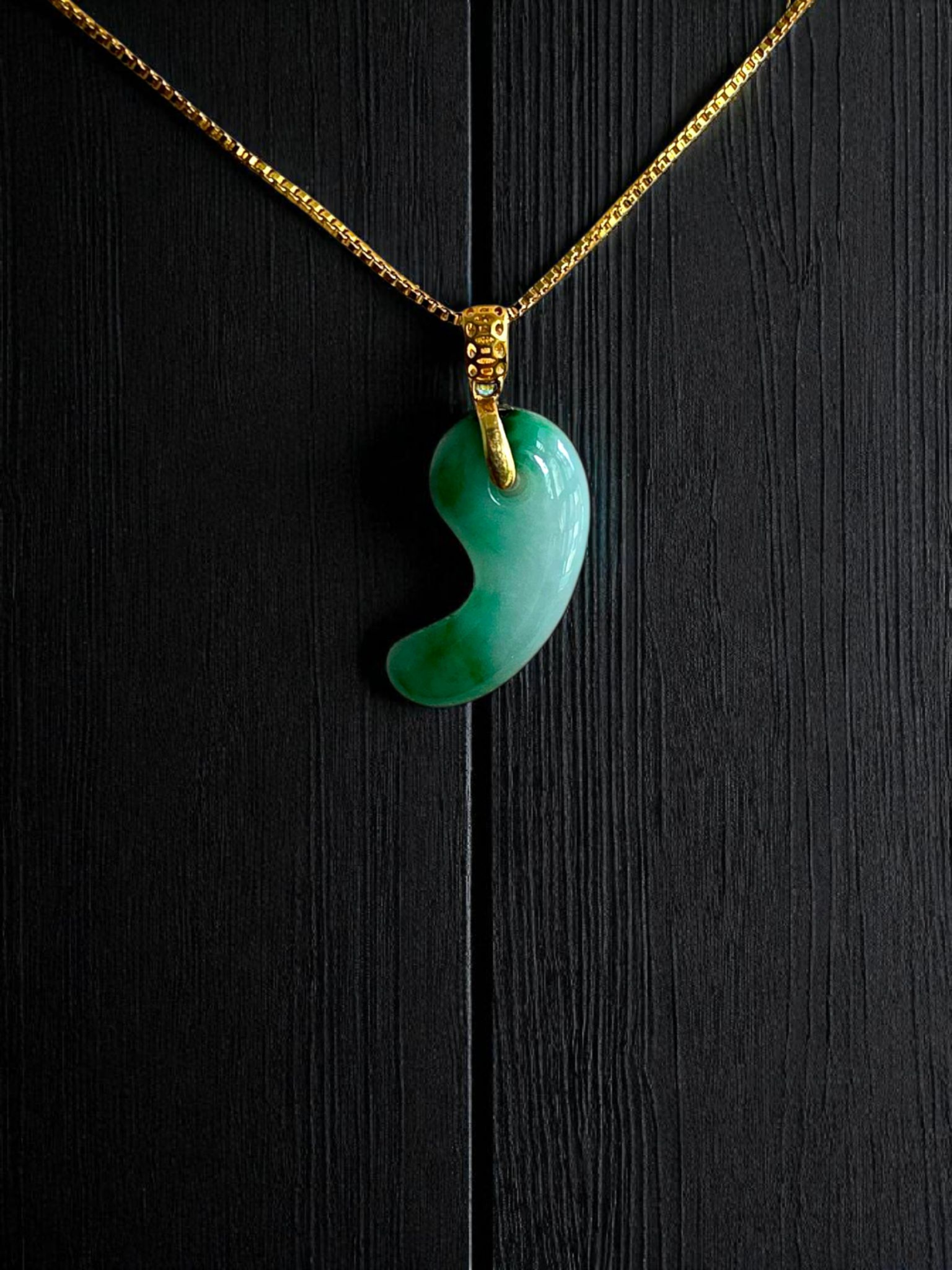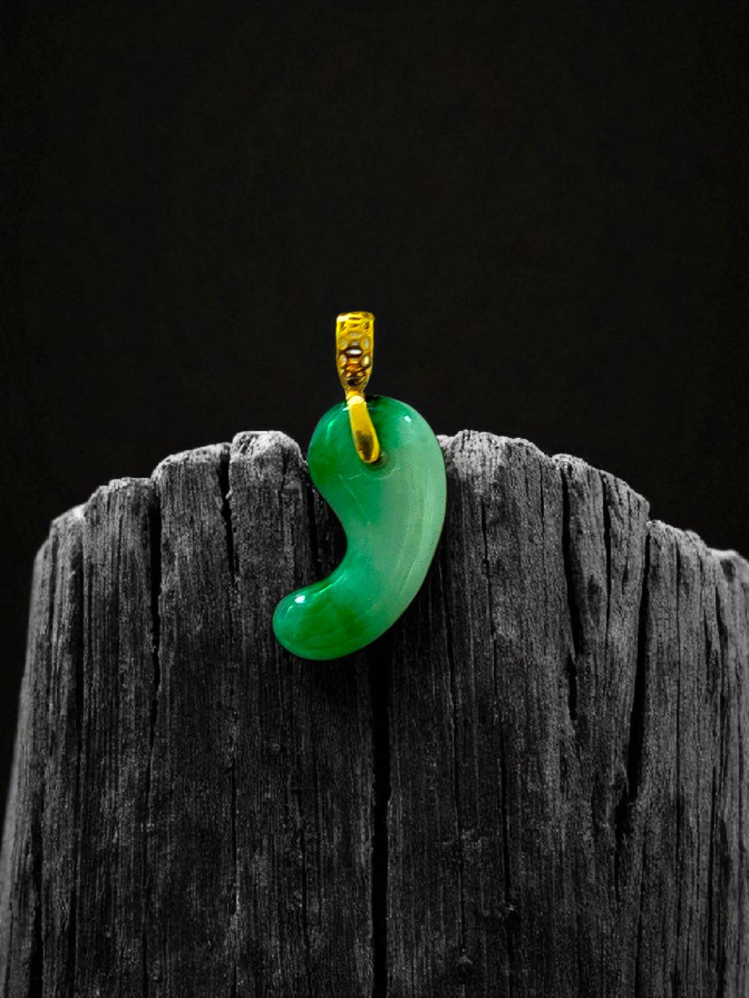 Ginza Magatama (MADE IN JAPAN) Burmese A-Jadeite Charm Pendant (with 18K Yellow Gold) - Certified - V1