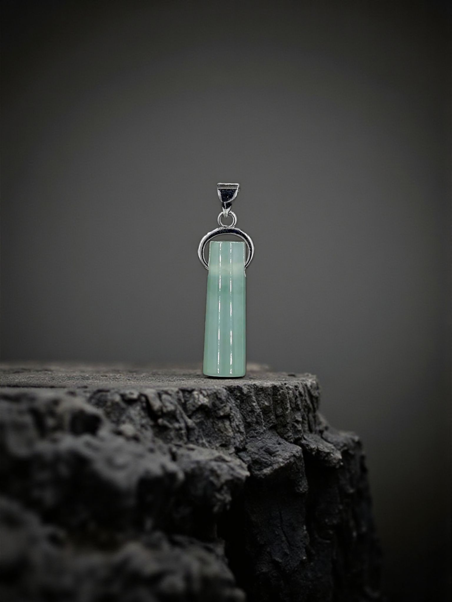 Hokkaido (MADE IN JAPAN) Icy Tube Burmese A-Jadeite Charm Pendant (with Sterling Silver 925) - Certified - V2