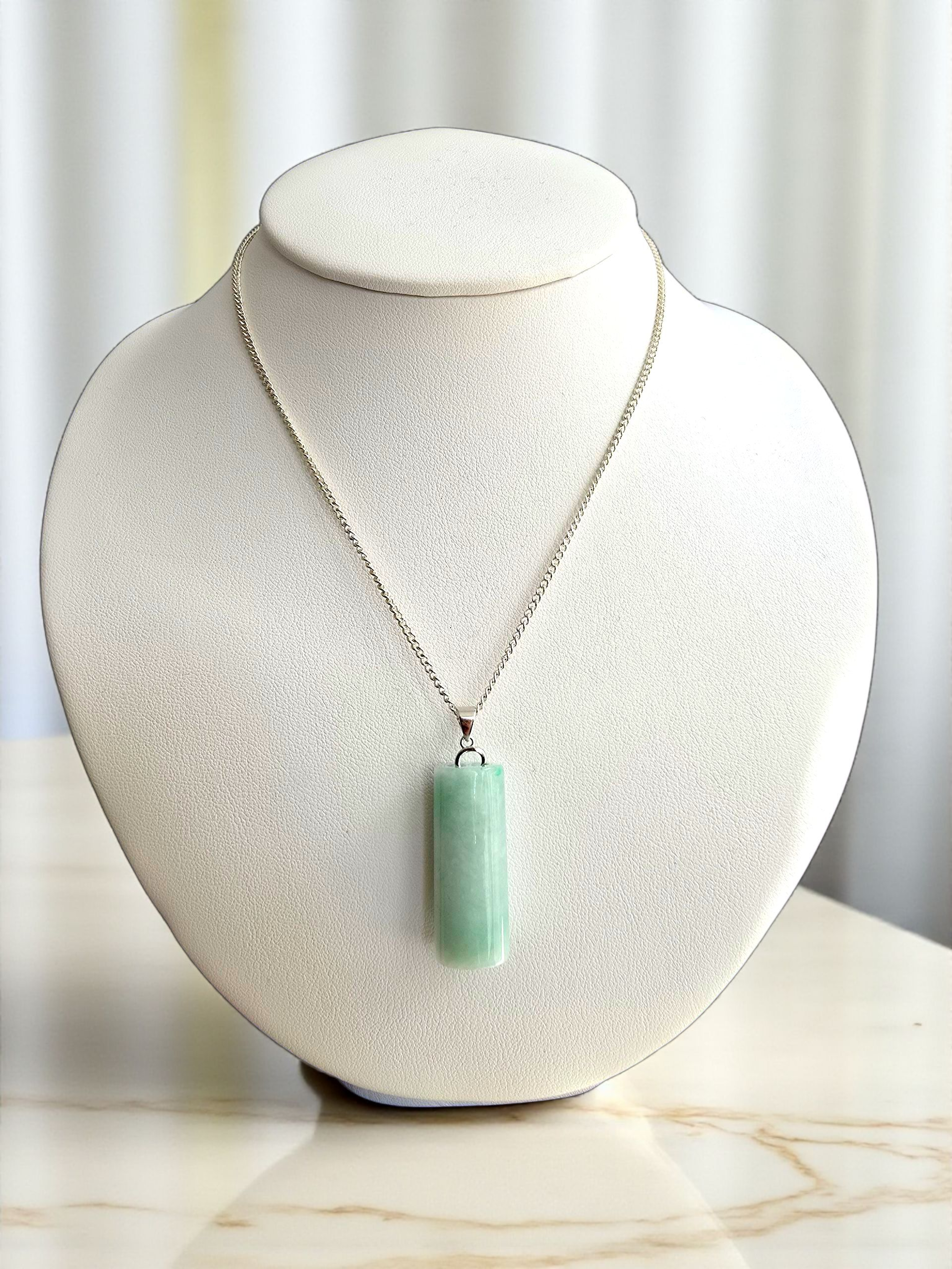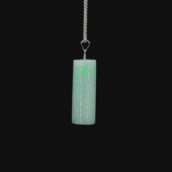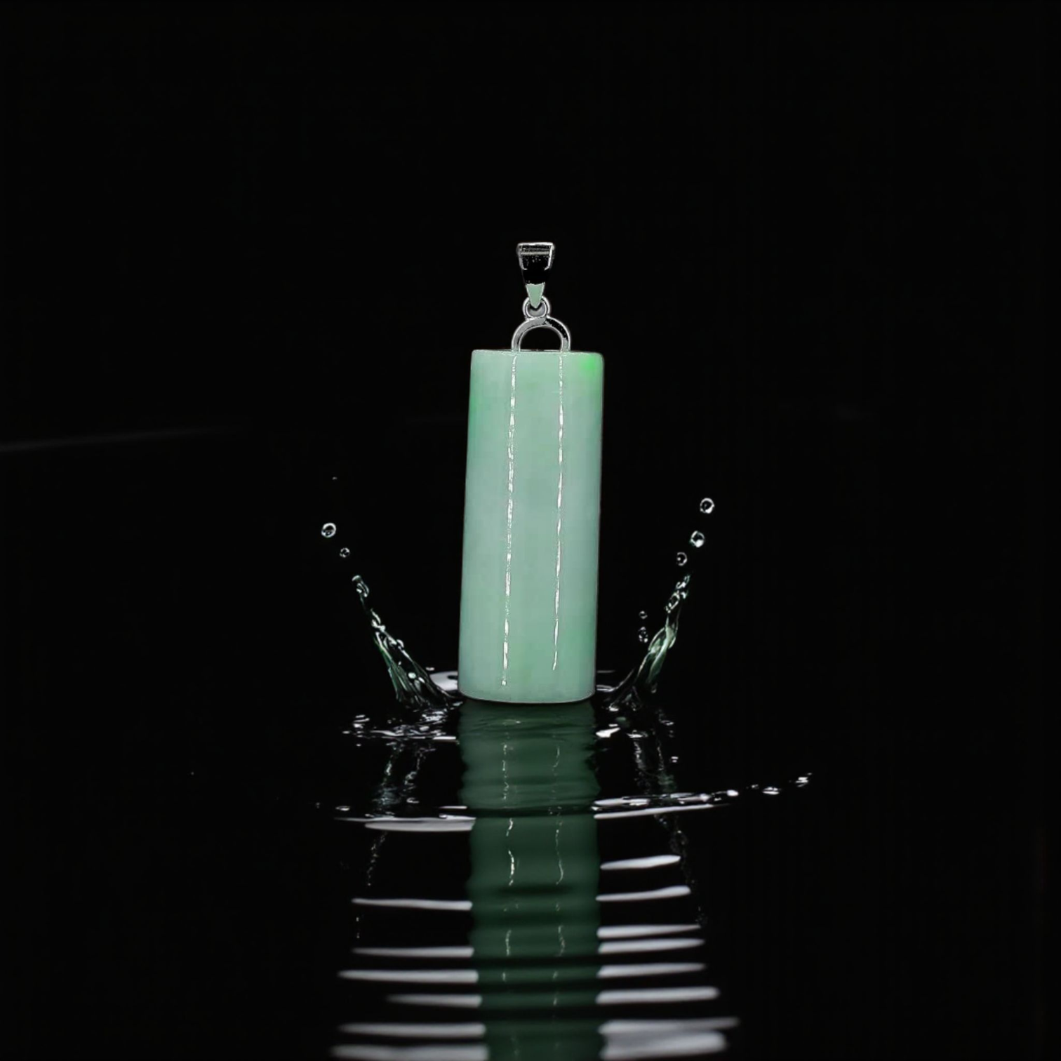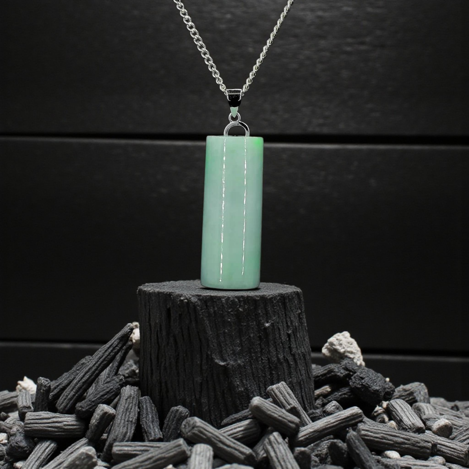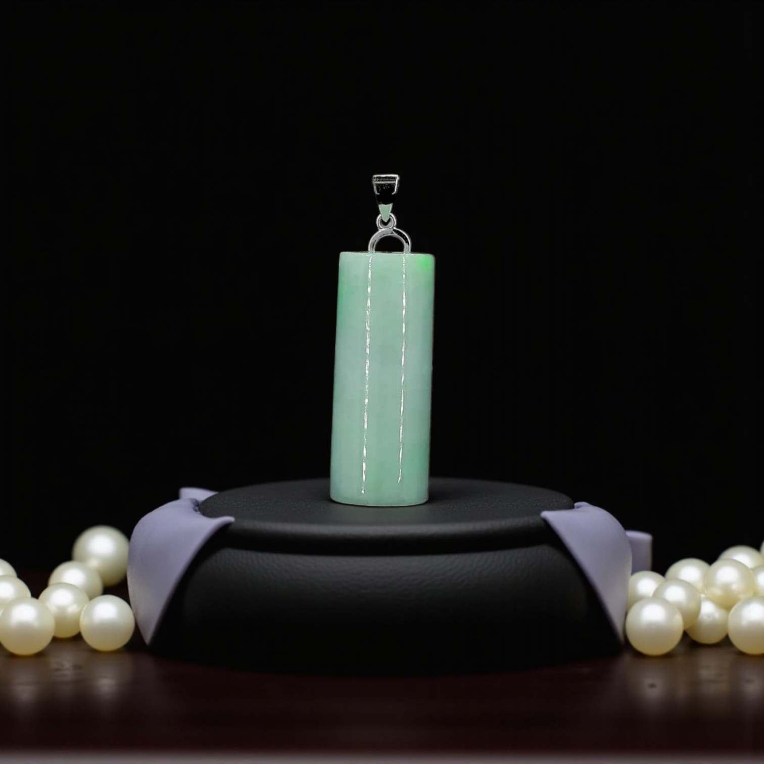 Hokkaido (MADE IN JAPAN) Icy-Minty Tube Burmese A-Jadeite Charm Pendant (with 18K Solid White Gold) - Certified - V3