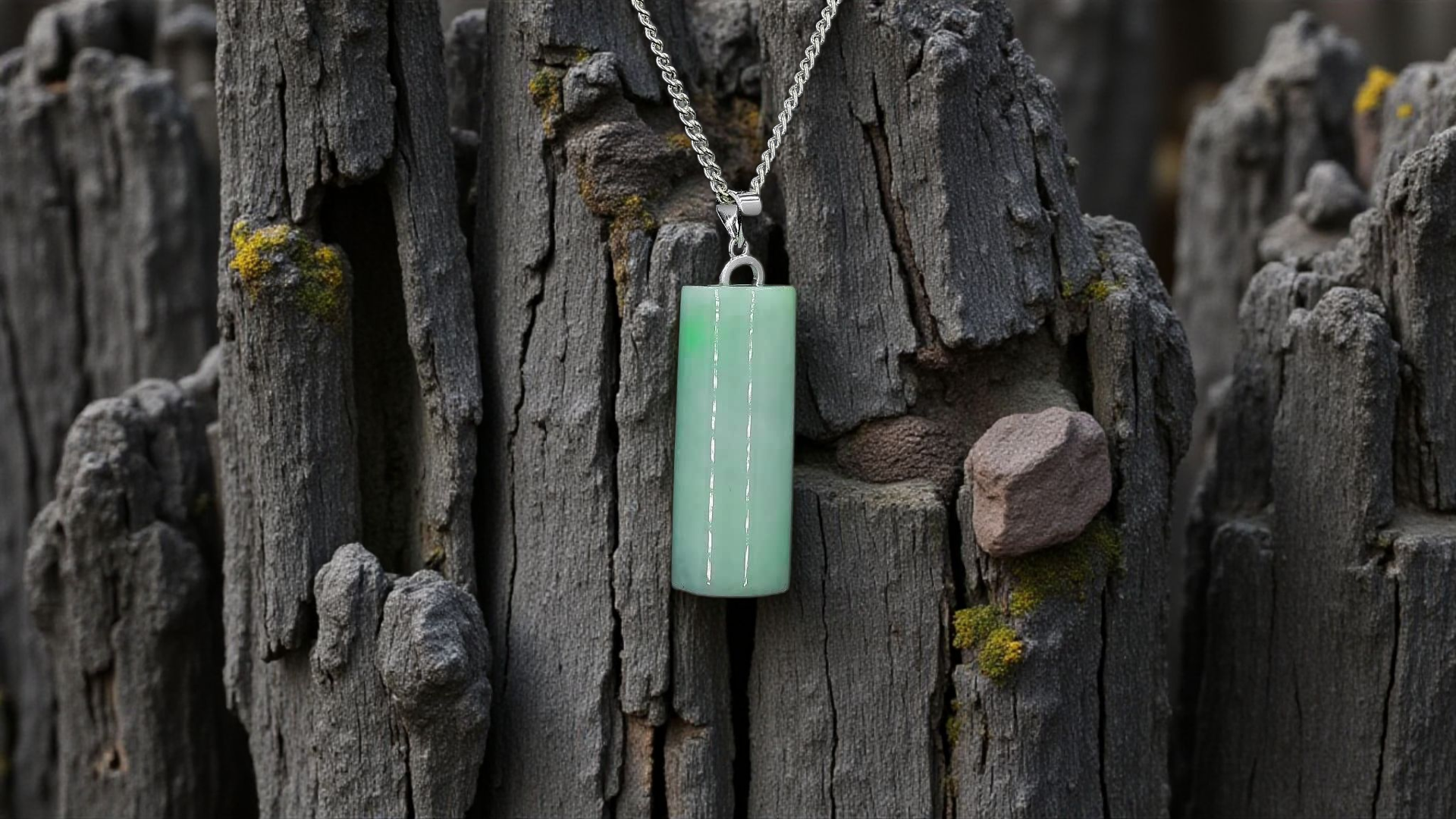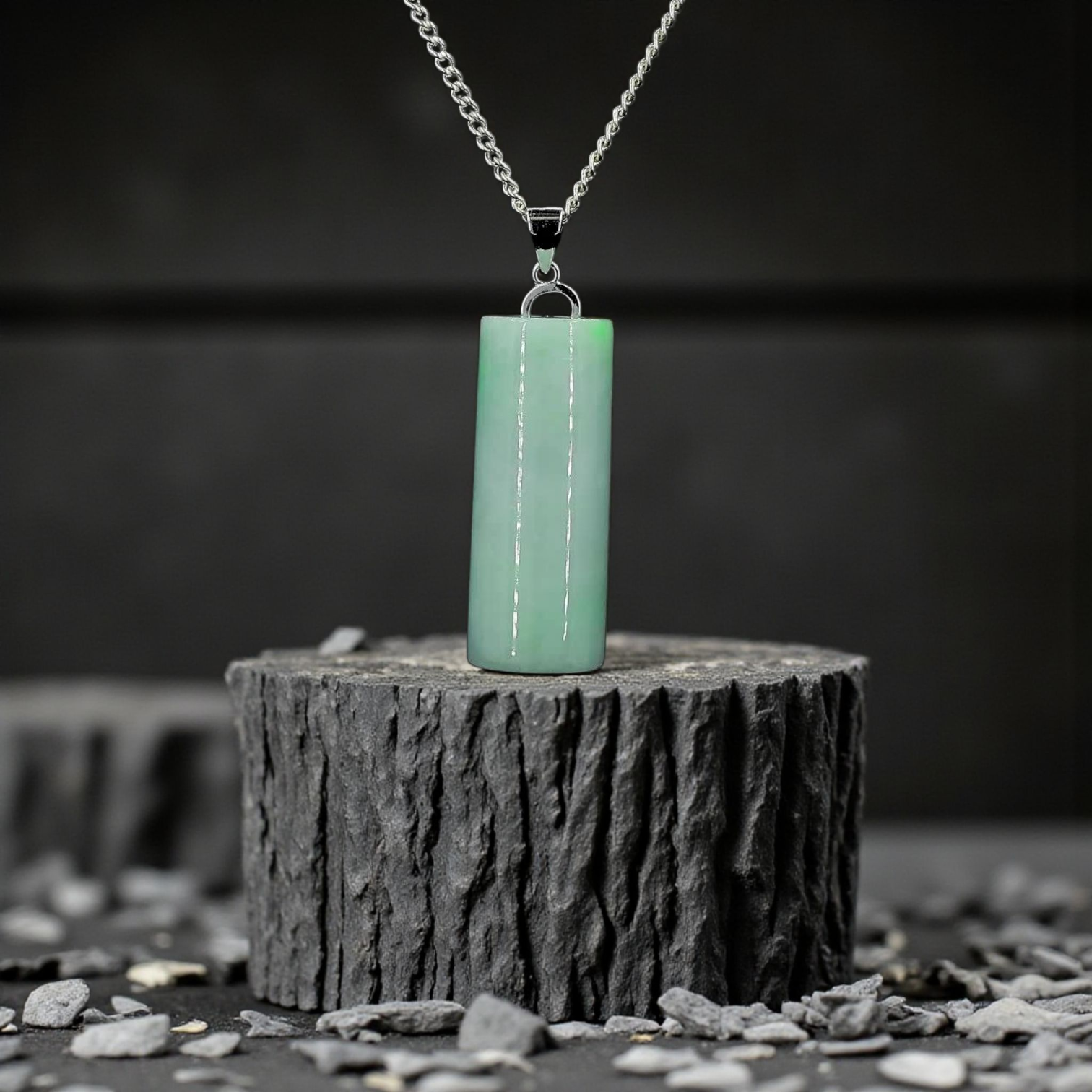 Hokkaido (MADE IN JAPAN) Tube Burmese A-Jadeite Charm Pendant (with 18K Solid White Gold) - Certified - V3