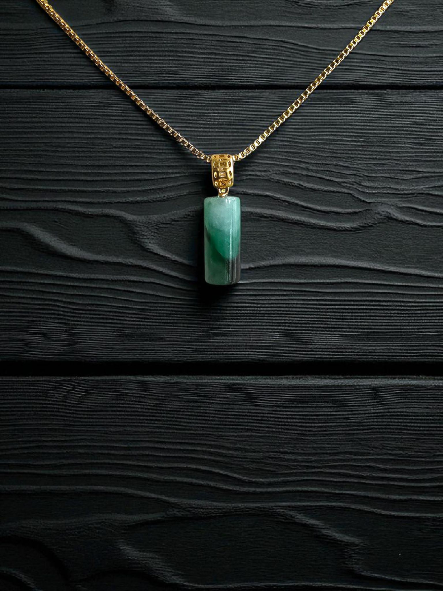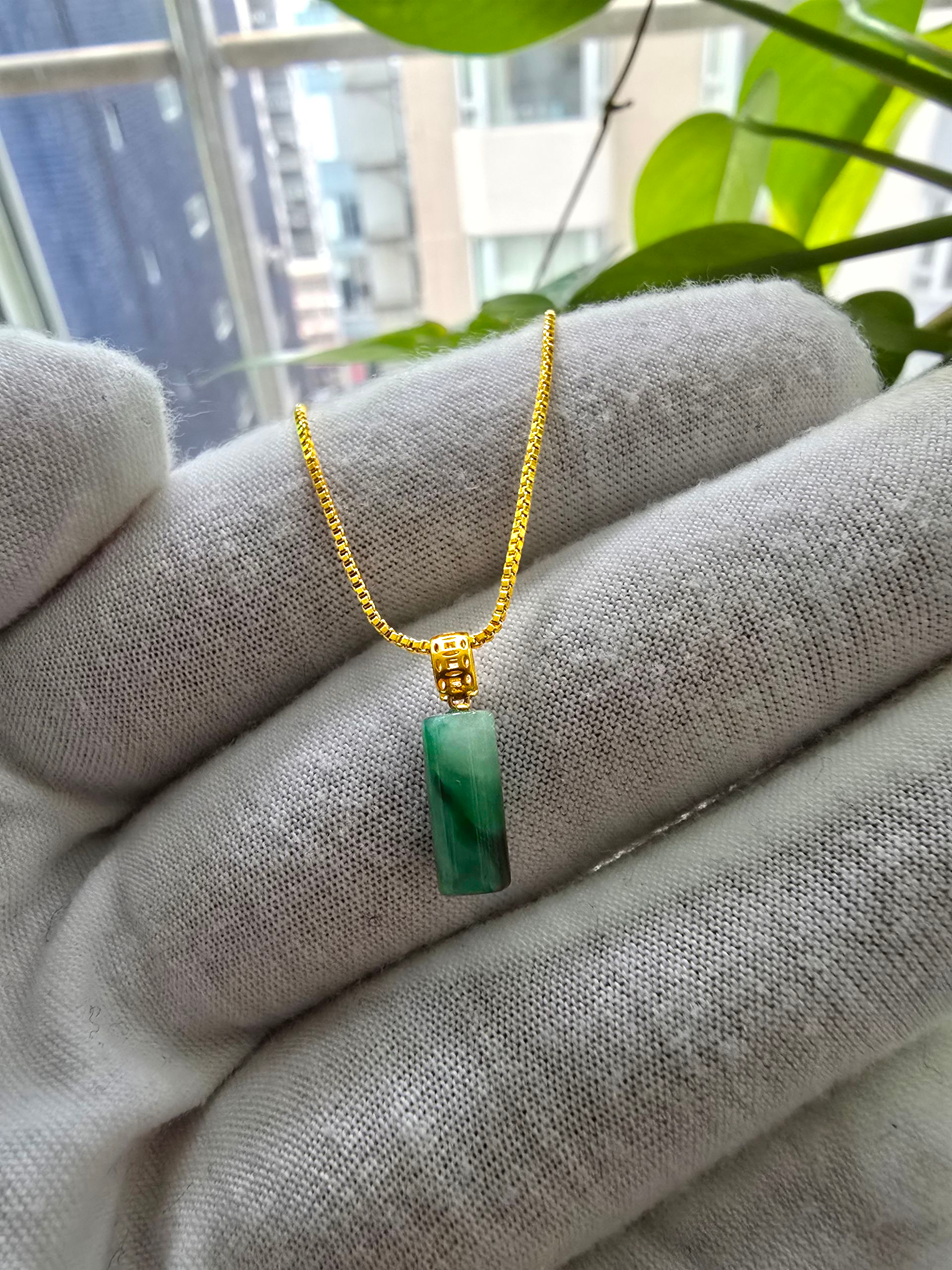 Hokkaido Tube Burmese Royal Green A-Jadeite Charm Pendant (with 18K Yellow Gold) - Certified - V1