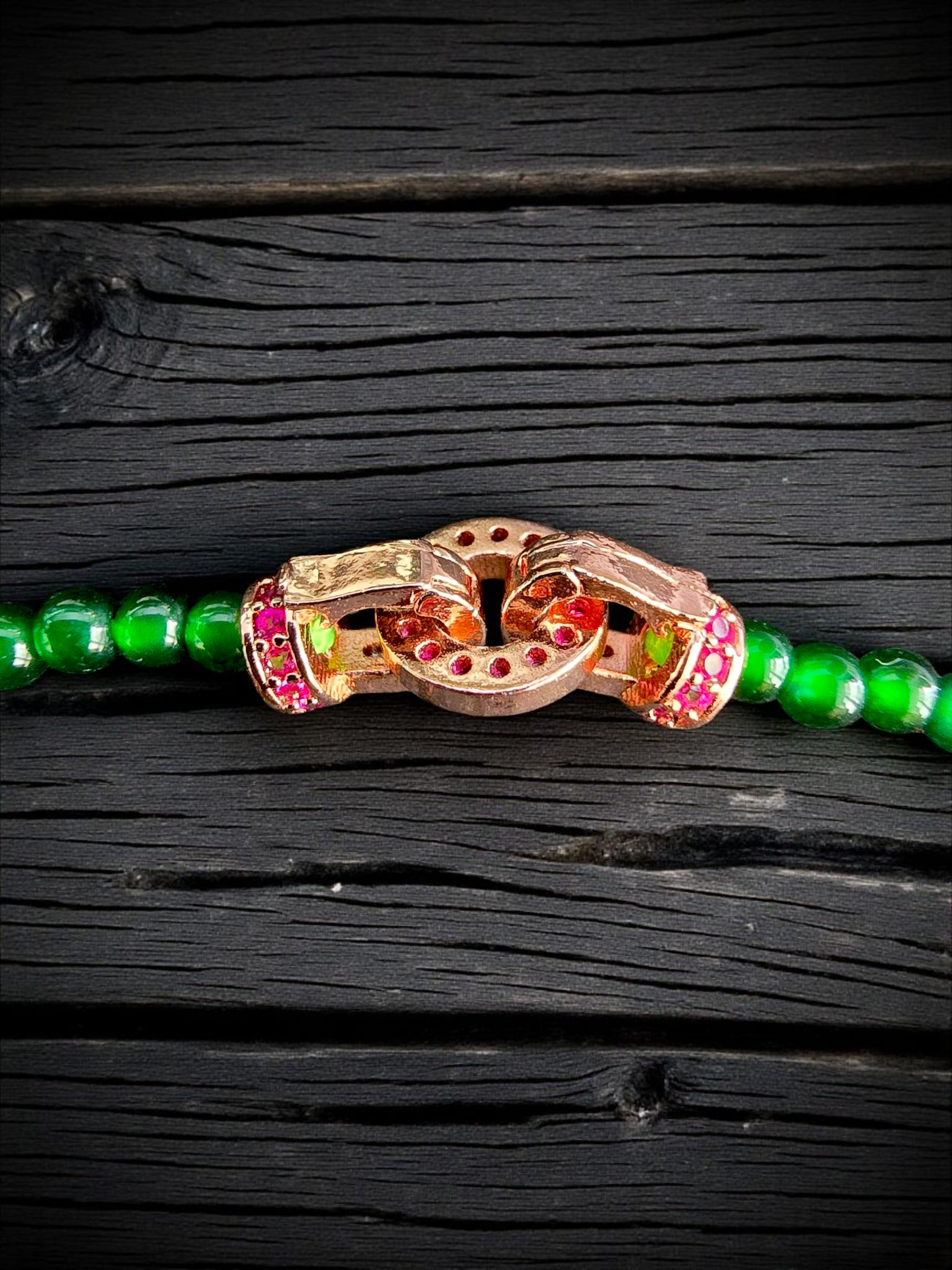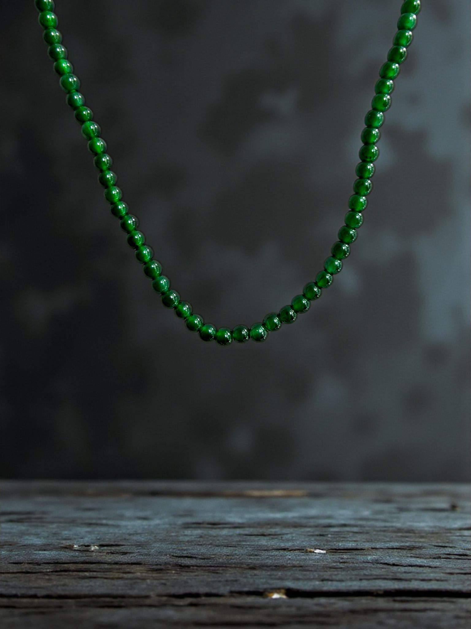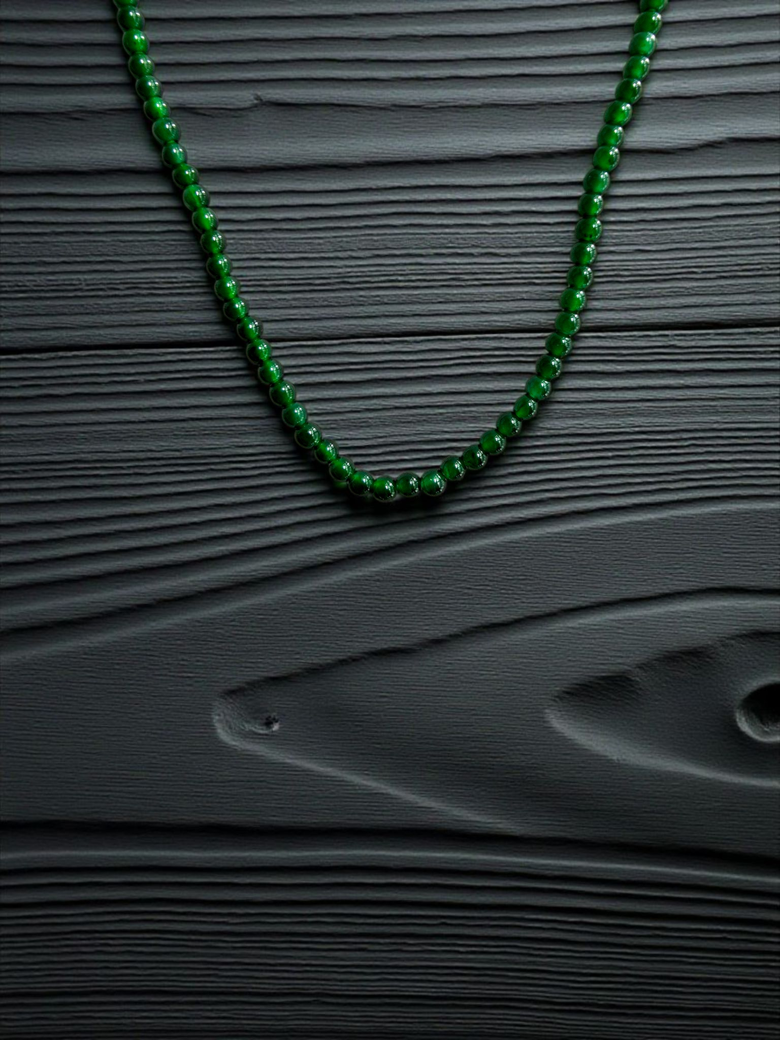This Necklace is completely untreated and 100% natural, with no dyes, no impregnations, or wax treatments; classified as Burmese A-Jade. This is a great accompaniment to formal and casual settings alike. Each beaded-Necklace is one-of-a-kind, a piece-unique; based on the natural variances of the raw jadeite, ensuring each one is truly unique and has its own story.