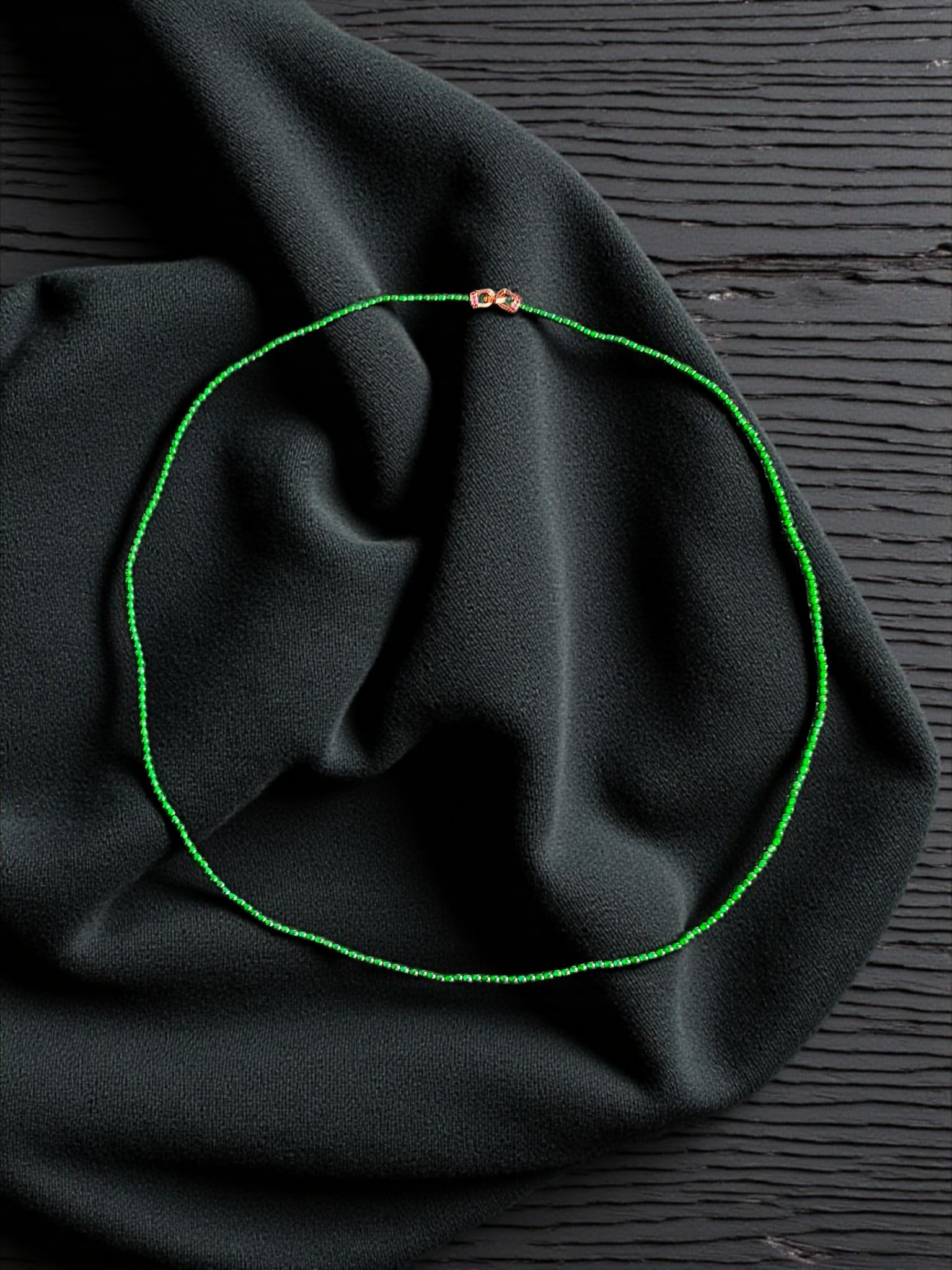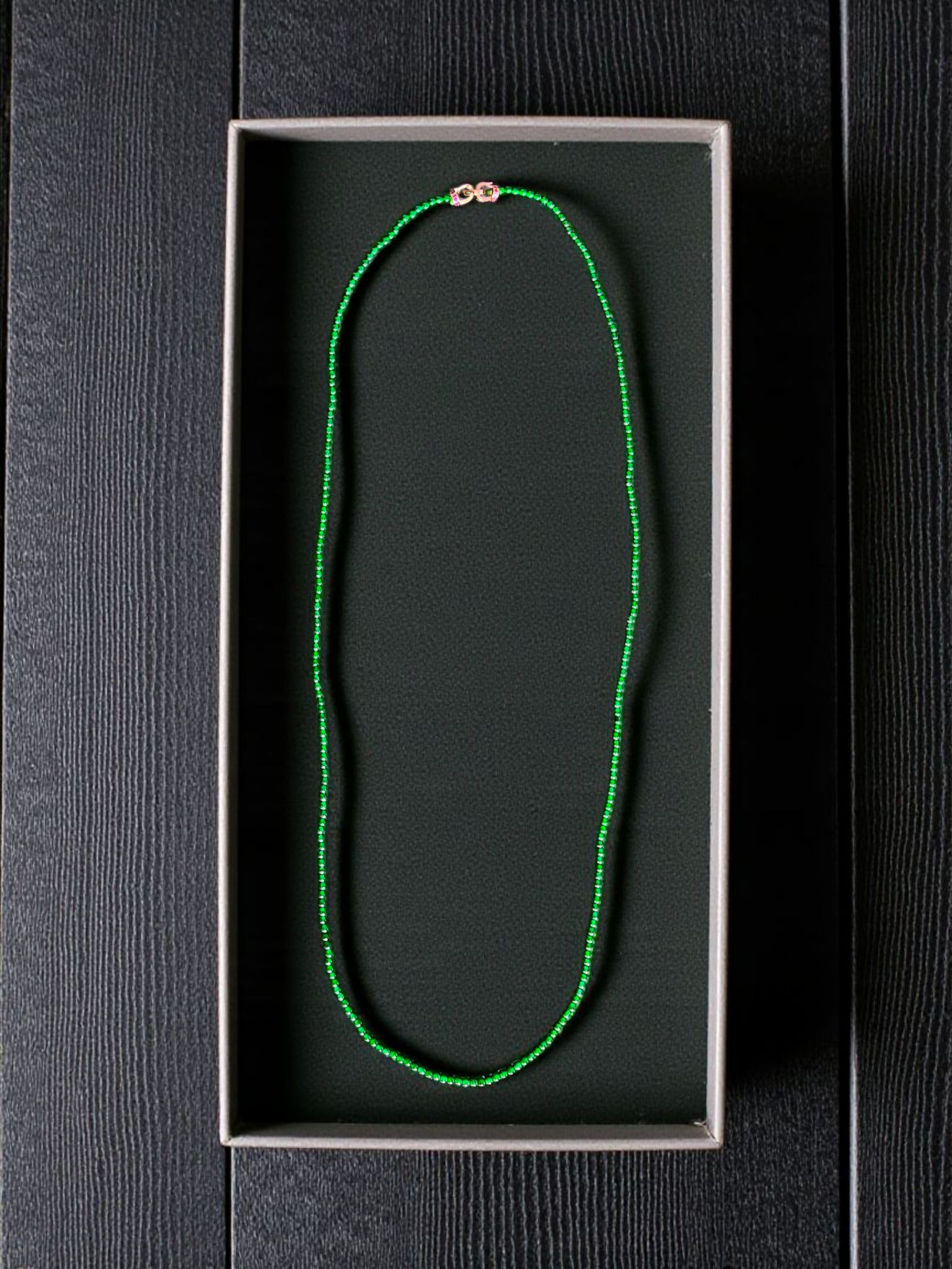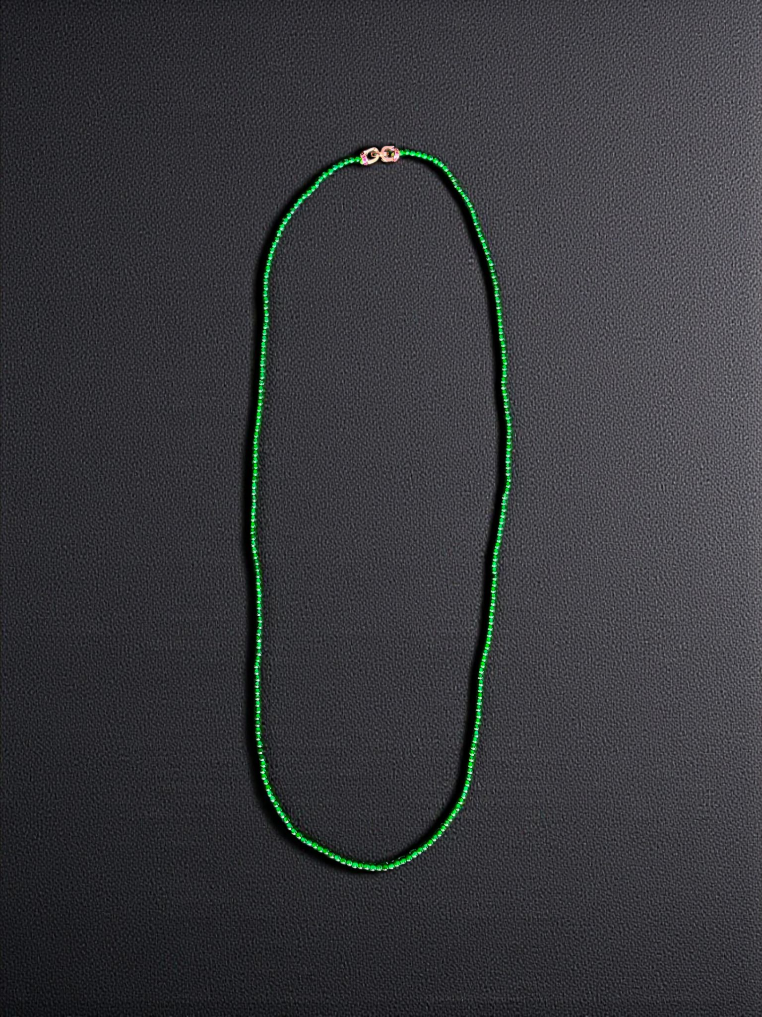 Imperial Green Burmese A-Jade Beaded Long Necklace - 24.50 inches (2.80 mm Beads) with Sterling Silver 925 - Certified - 10010