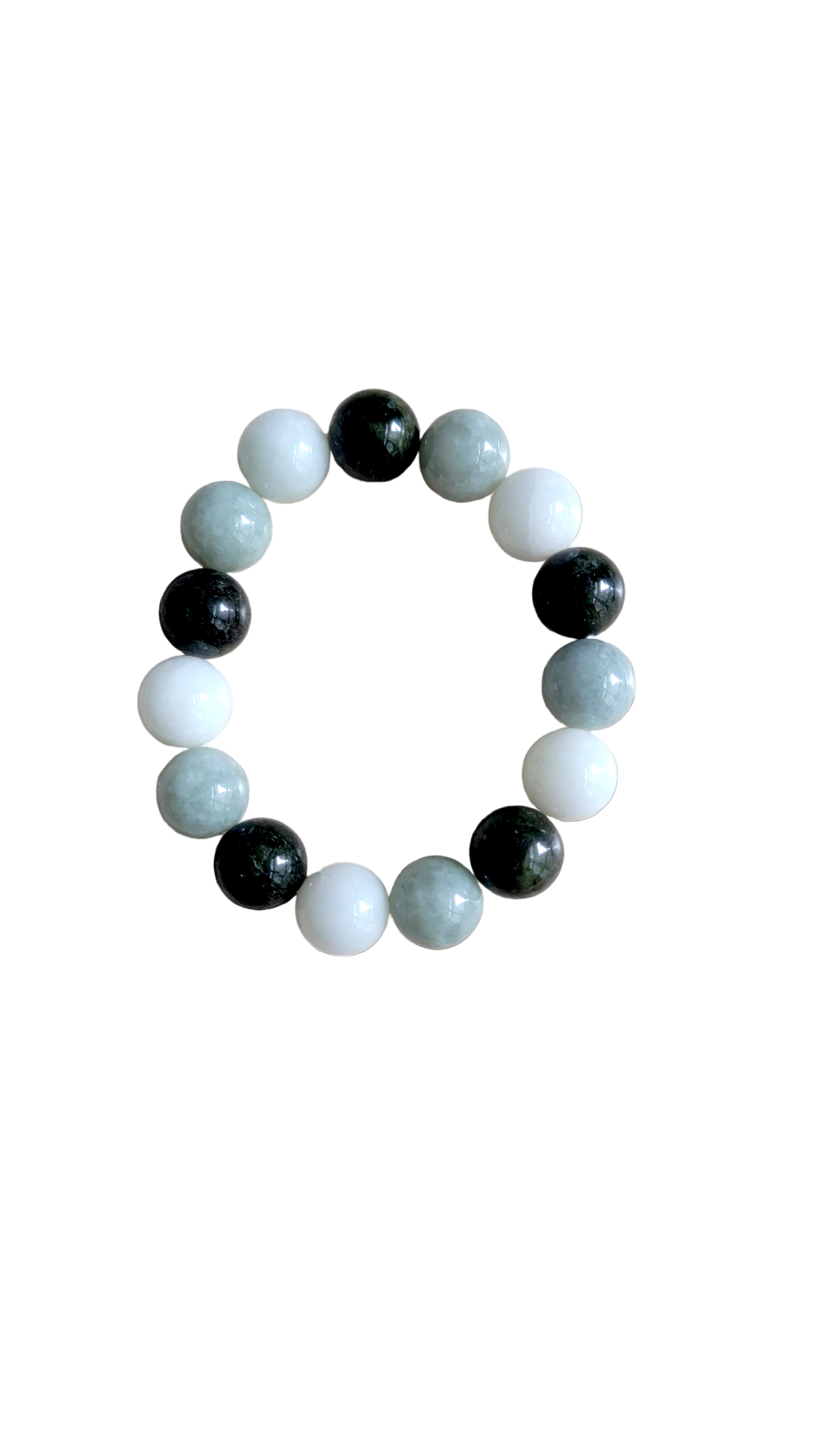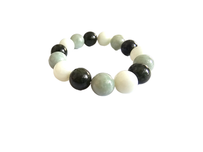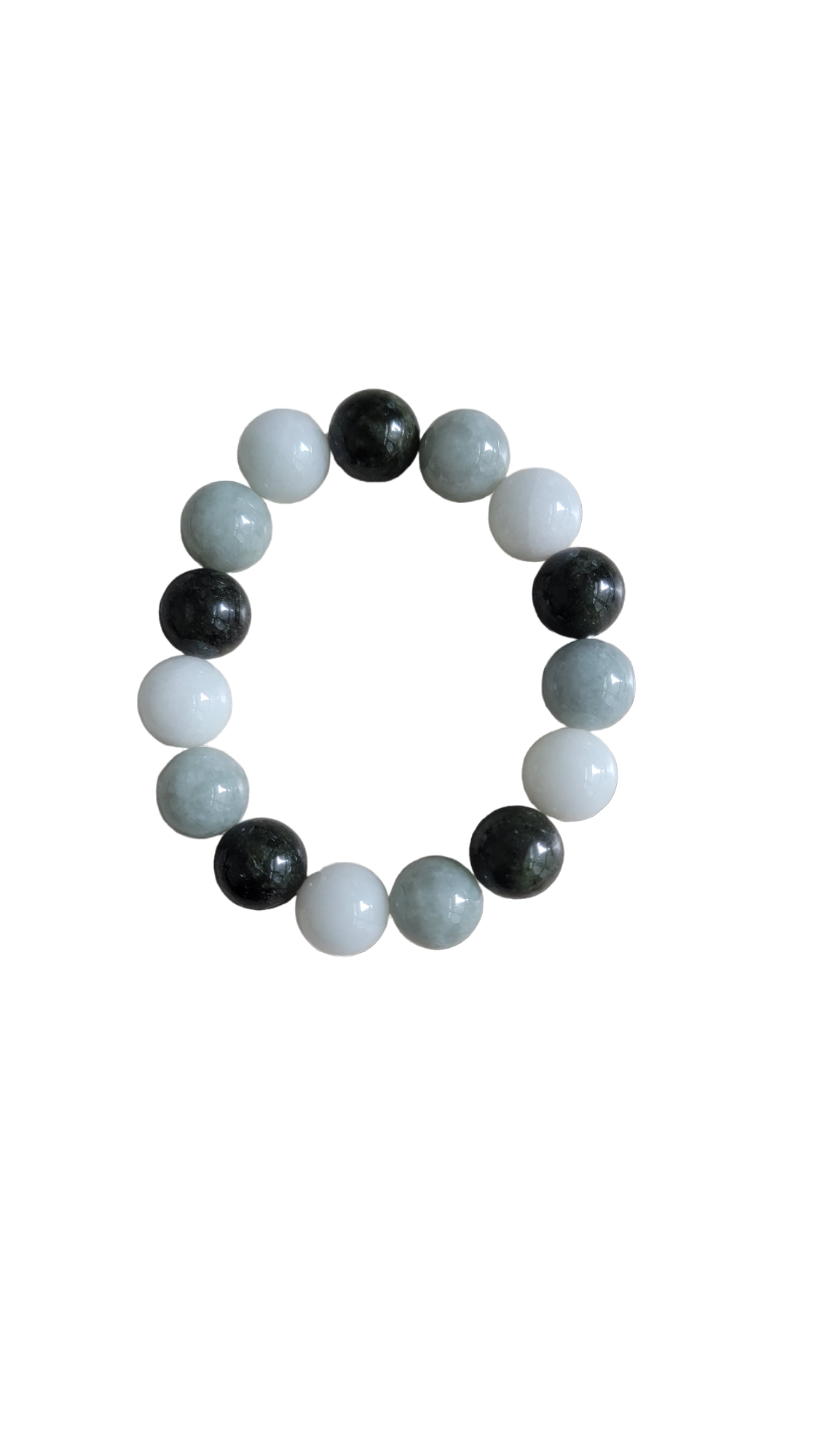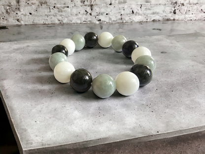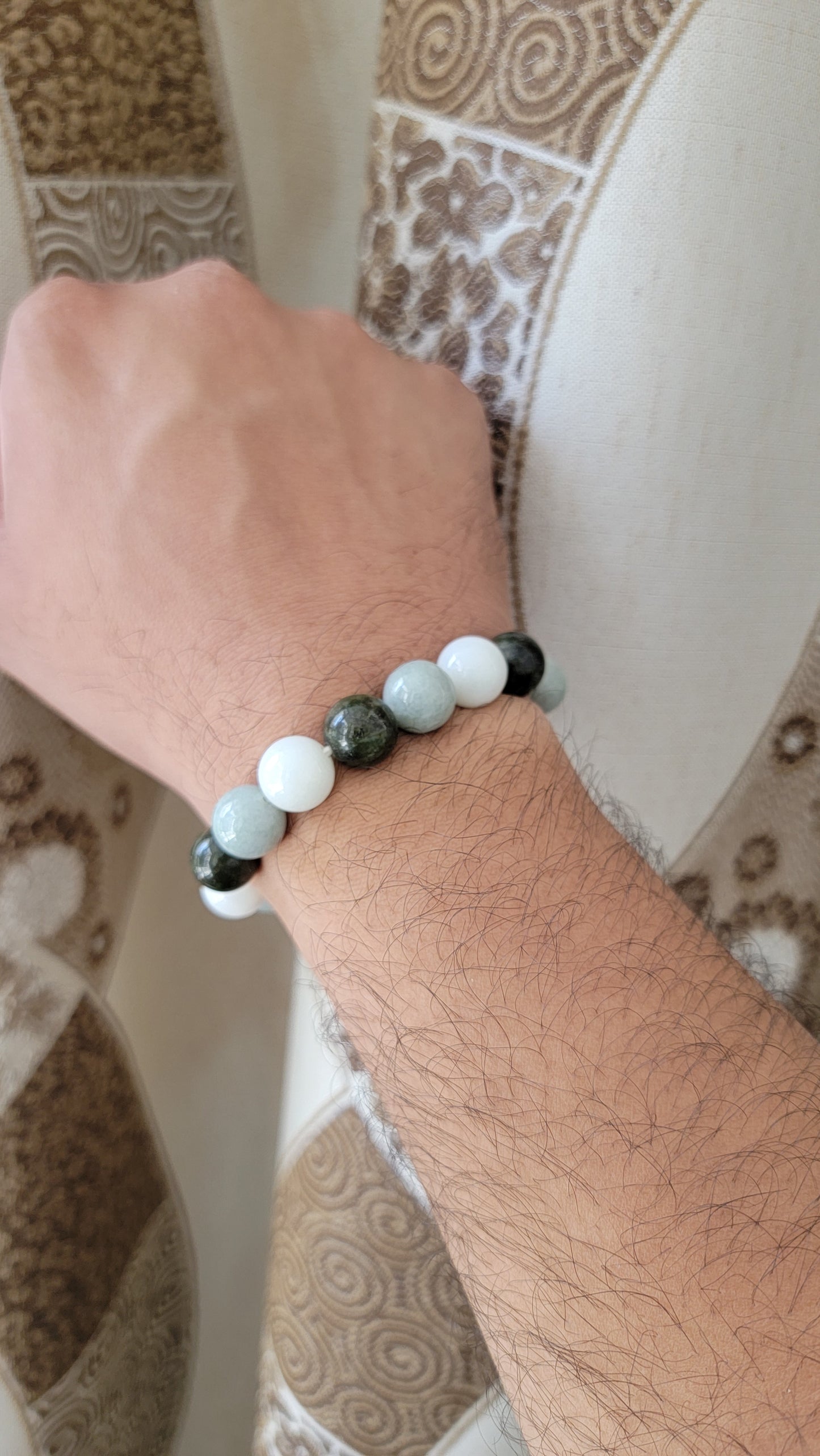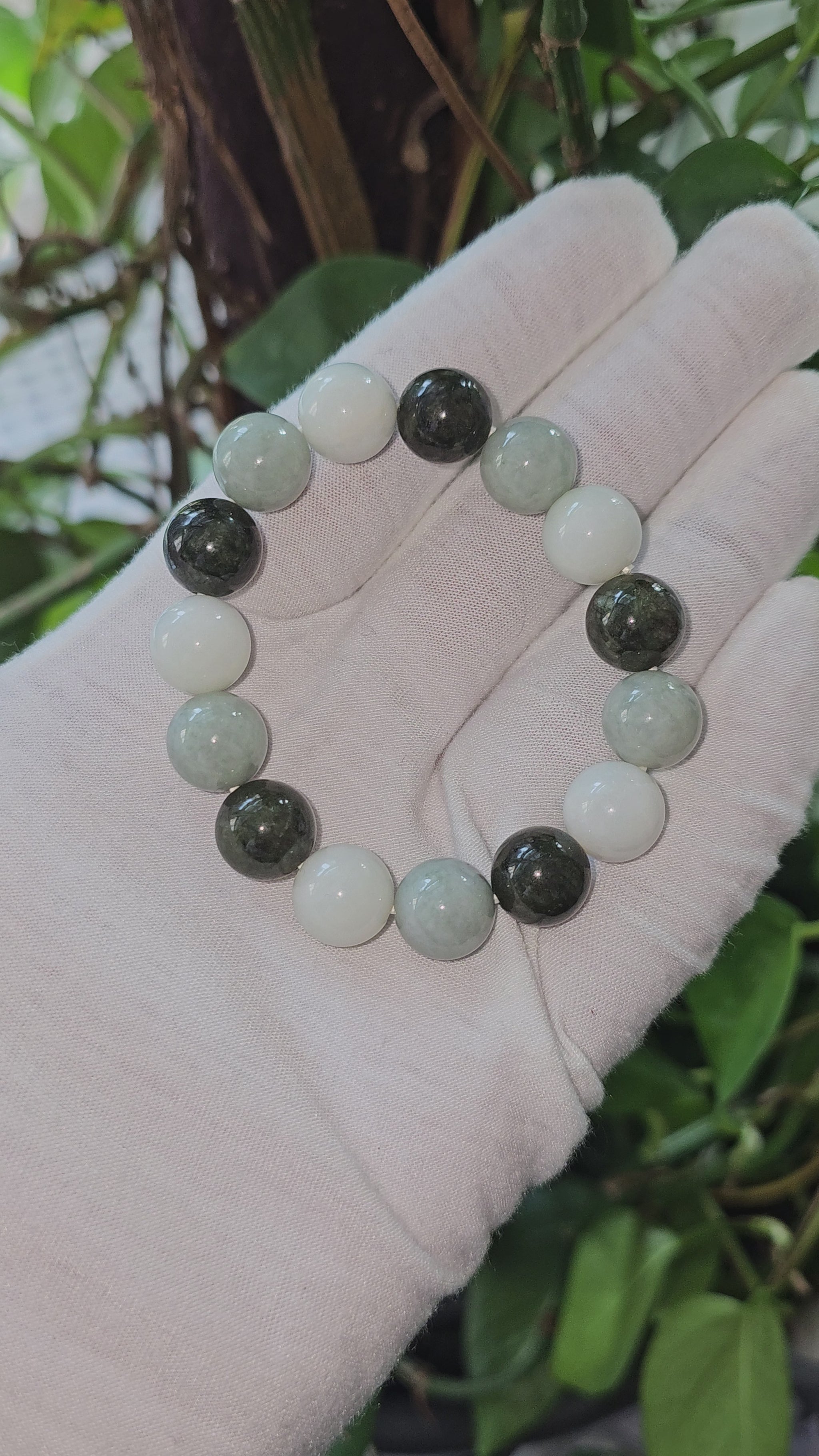 各 12 ~ 12.5 mm、完璧に調整された 15 個のジェダイト ビーズ。同じジェダイト原石から 3 つの独特なグリーンの色調を使用して、自然に発生する色調を対比させています。ジェダイトの中でも最も珍しい自然に発生する色調の 1 つであるこのビルマ産 A ジェダイト ビーズ ブレスレットは、豪華な外観に最適です。完全に未処理で 100% 天然のこのブレスレットは、フォーマルな場にもカジュアルな場にもぴったりです。ビーズ ブレスレットはどれも、ジェダイトの原石の自然な変化に基づいたユニークなものであり、それぞれが真にユニークで独自のストーリーを持っています。