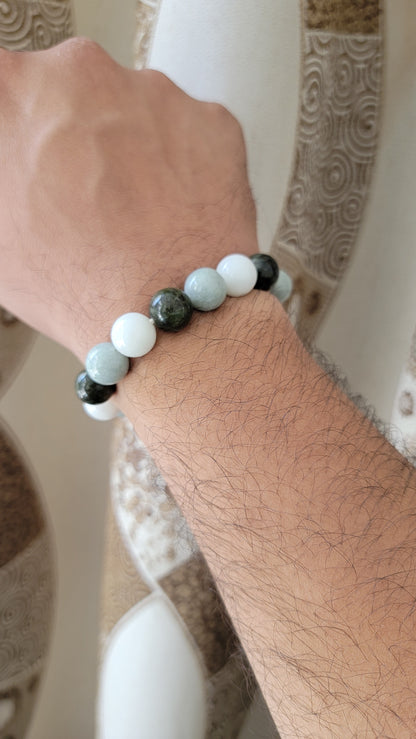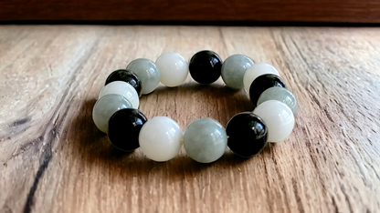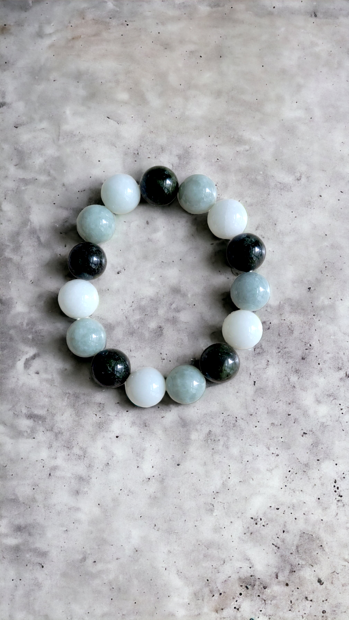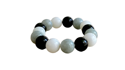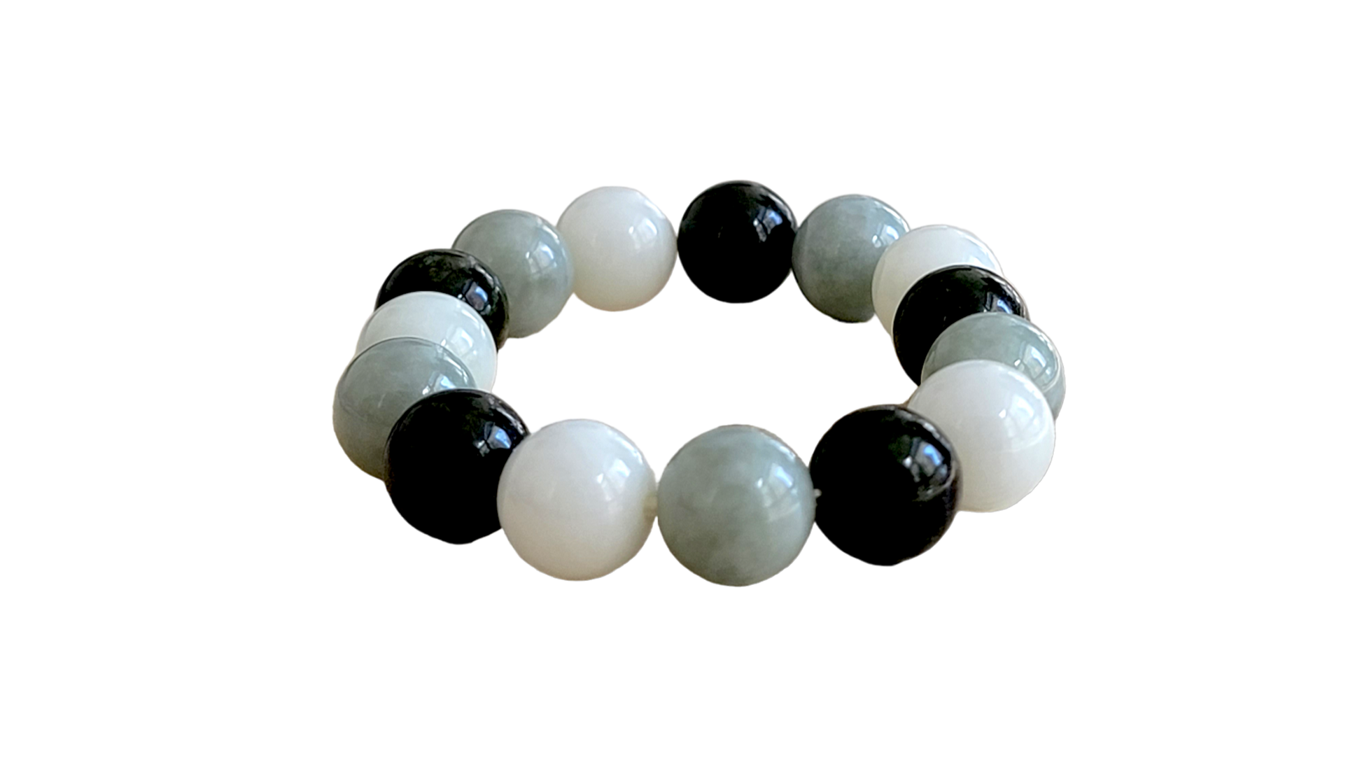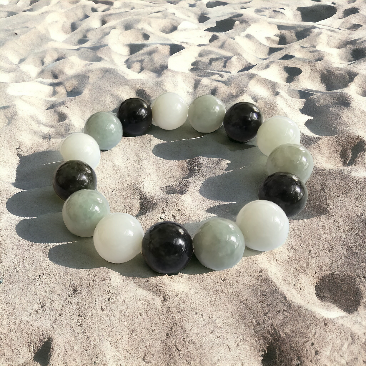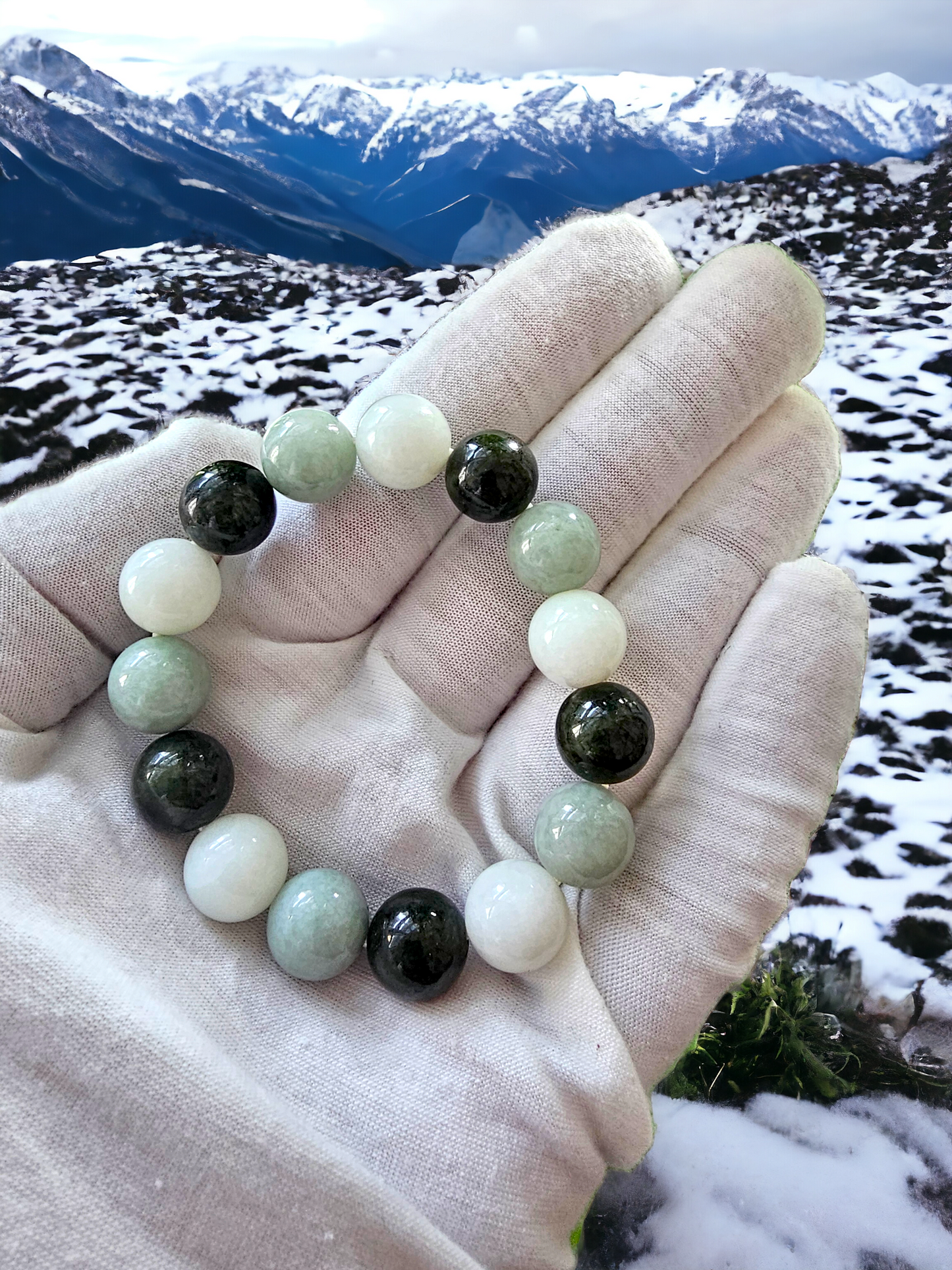 各 12 ~ 12.5 mm、完璧に調整された 15 個のジェダイト ビーズ。同じジェダイト原石から 3 つの独特なグリーンの色調を使用して、自然に発生する色調を対比させています。ジェダイトの中でも最も珍しい自然に発生する色調の 1 つであるこのビルマ産 A ジェダイト ビーズ ブレスレットは、豪華な外観に最適です。完全に未処理で 100% 天然のこのブレスレットは、フォーマルな場にもカジュアルな場にもぴったりです。ビーズ ブレスレットはどれも、ジェダイトの原石の自然な変化に基づいたユニークなものであり、それぞれが真にユニークで独自のストーリーを持っています。