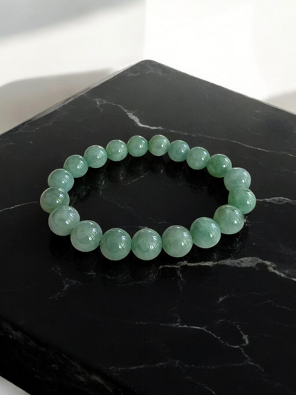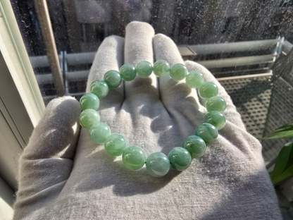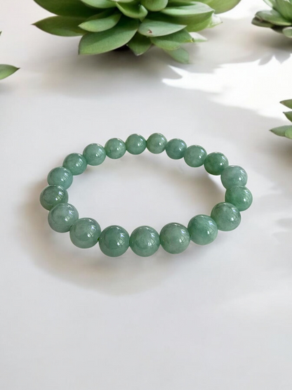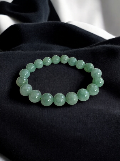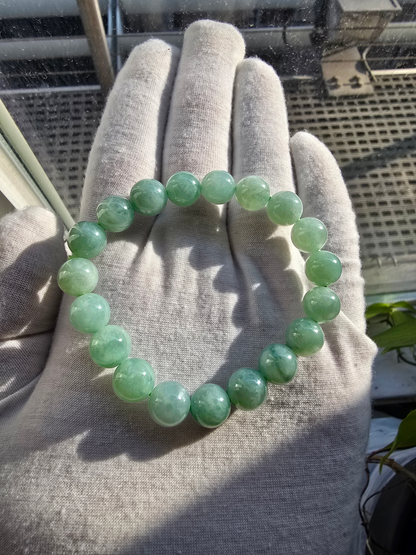Imperial Japanese Green Burmese A-Jade Beaded Bracelet (MADE IN JAPAN) (10.5mm Each x 19 beads) 05037