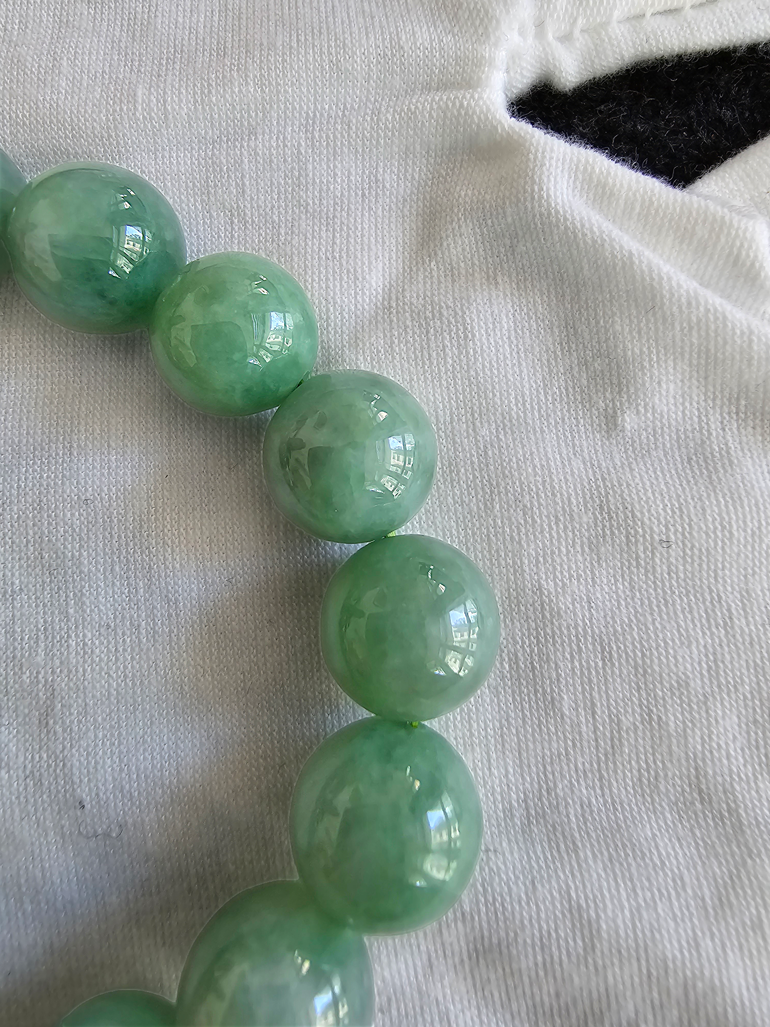 Imperial Japanese Green Burmese A-Jade Beaded Bracelet (MADE IN JAPAN) (12mm Each x 17 beads) 05016