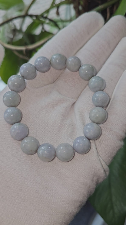 インペリアル ラベンダー ビルマ産 A ジェダイト 翡翠 ビーズ ブレスレット (各 11-12 mm x 17 ビーズ) 06007