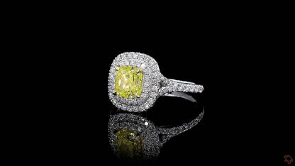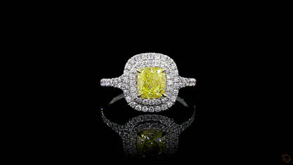 Kami Double Halo Ring with Natural Fancy Yellow Diamond (1.54cts) and White VVS Diamonds Halo and 18K White Gold - GIA Certified