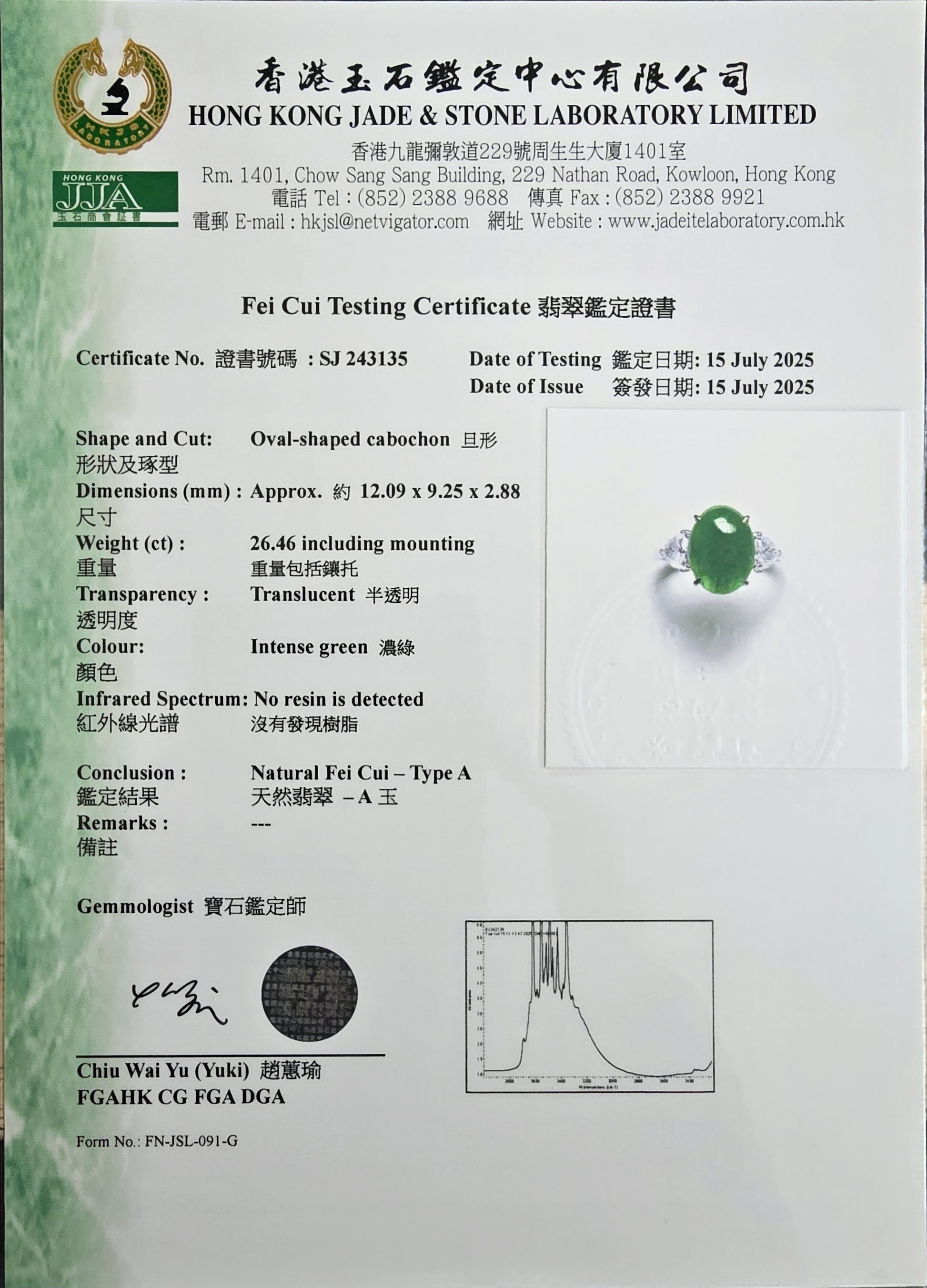 Komagome MADE IN JAPAN Burmese A Jade Statement Ring, with Natural White Diamonds, and Platinum 900 - HKJSL Certified