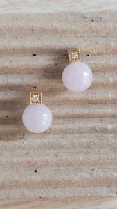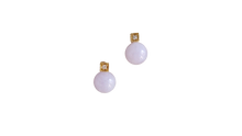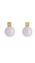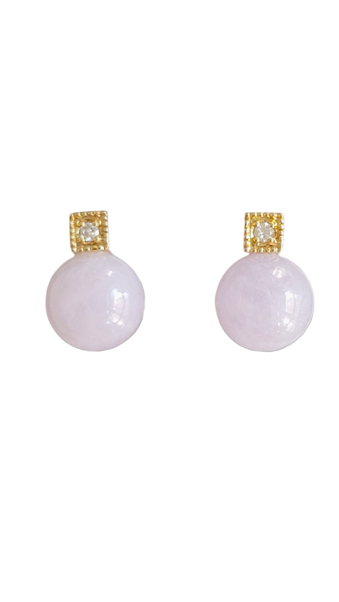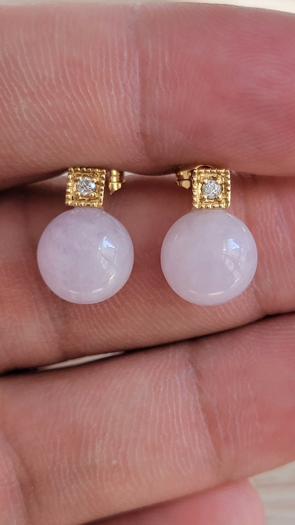 京都産ビルマ産ラベンダー翡翠球根イヤリング、14Kイエローゴールドとホワイトラウンドダイヤモンド付き