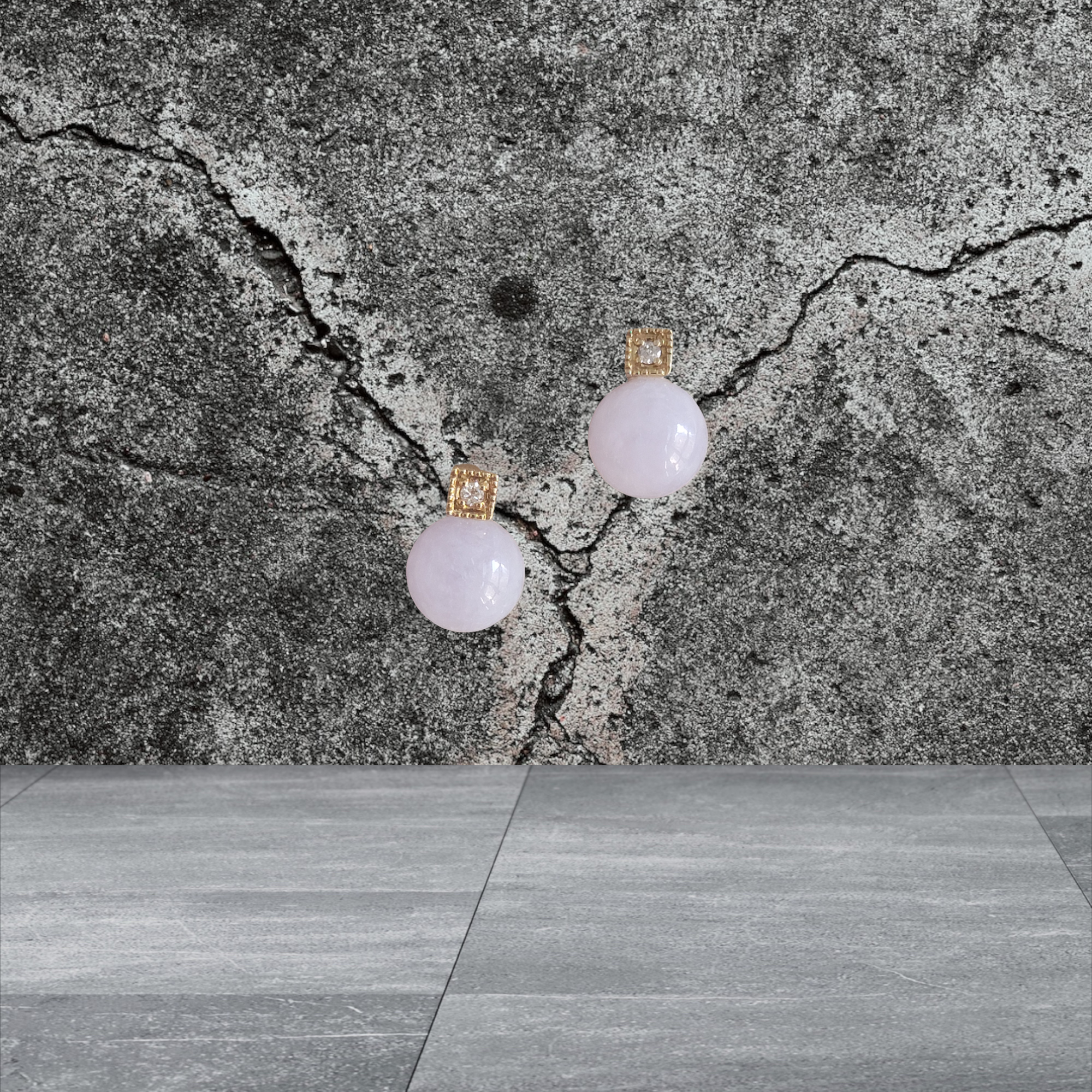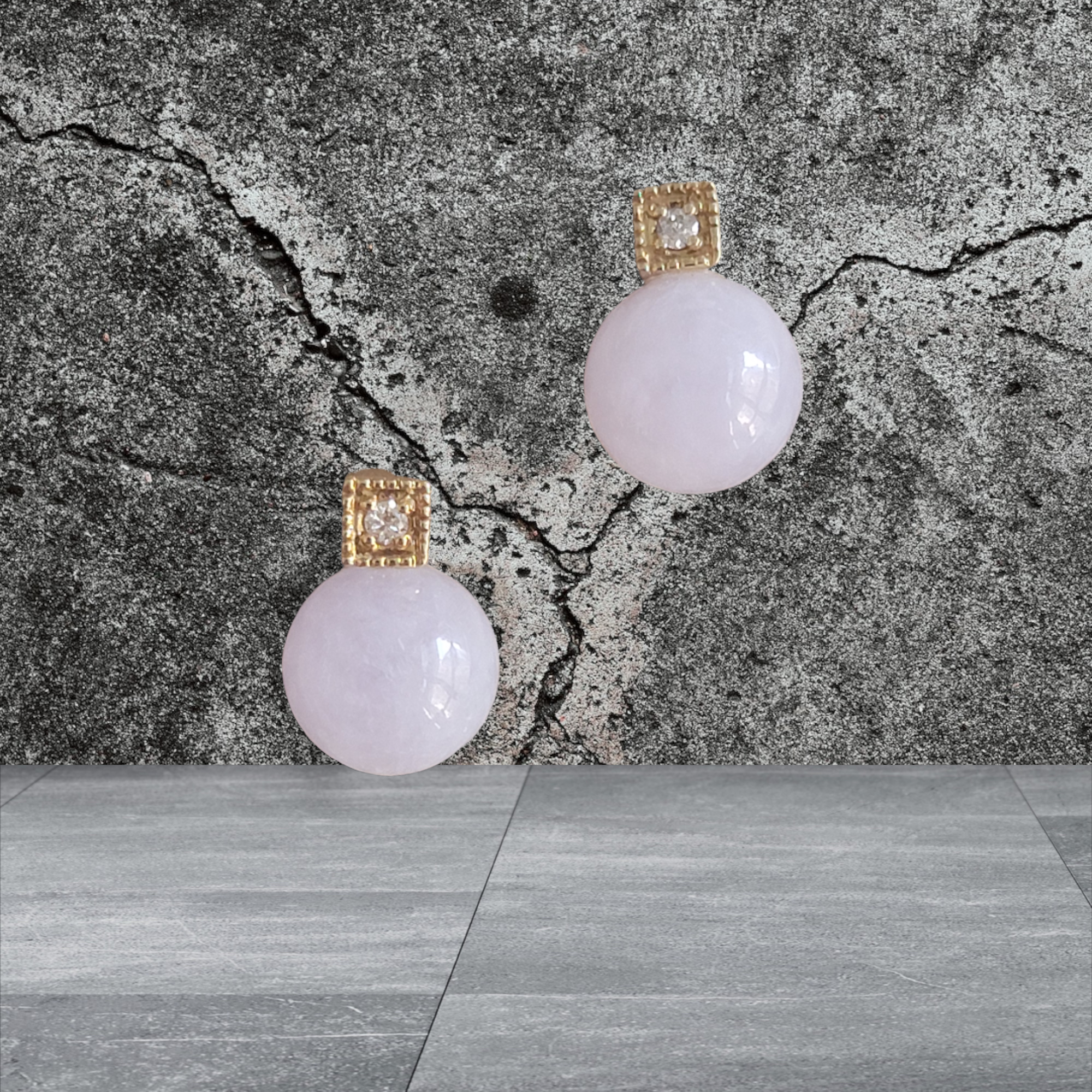 素材: 1.80g 14K ゴールド、0.10 カラットのホワイトラウンドダイヤモンド、3.60g ビルマ産ラベンダー A 翡翠