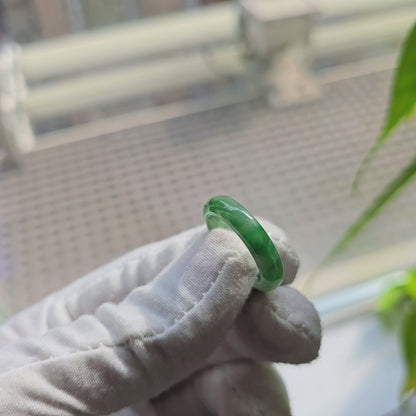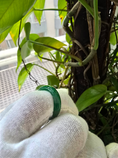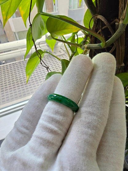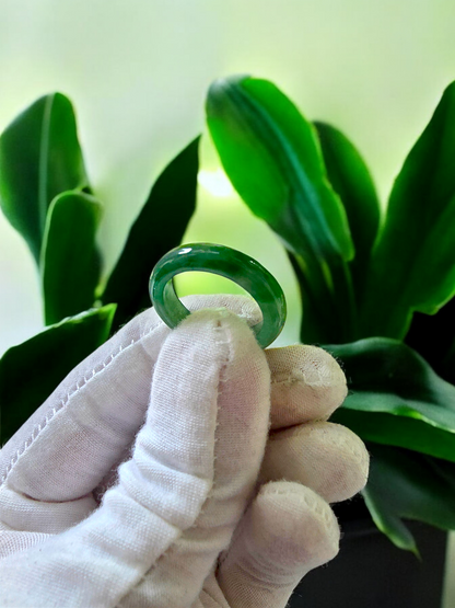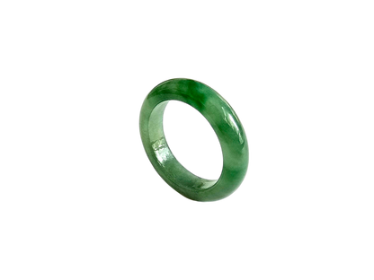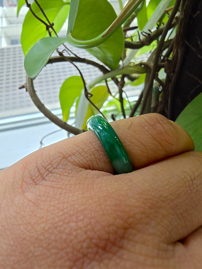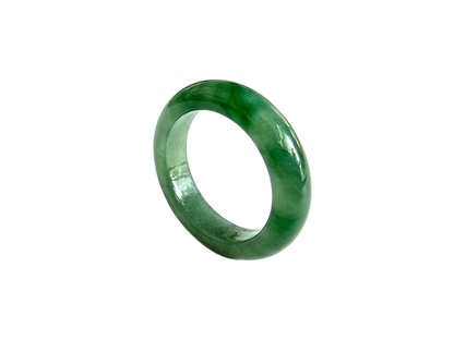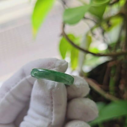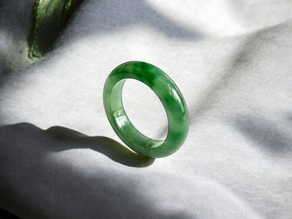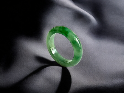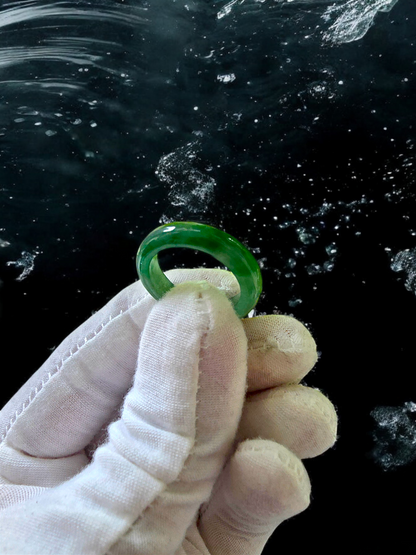 Each ring is unique and exclusively One-of One. With fibrous interwoven hues, this jadeite ring has a rich vibrant intense green tone with splashes and streaks of Imperial Jadeite. Perfect luster and light,excellent translucency and no cracks or blemishes on the ring.