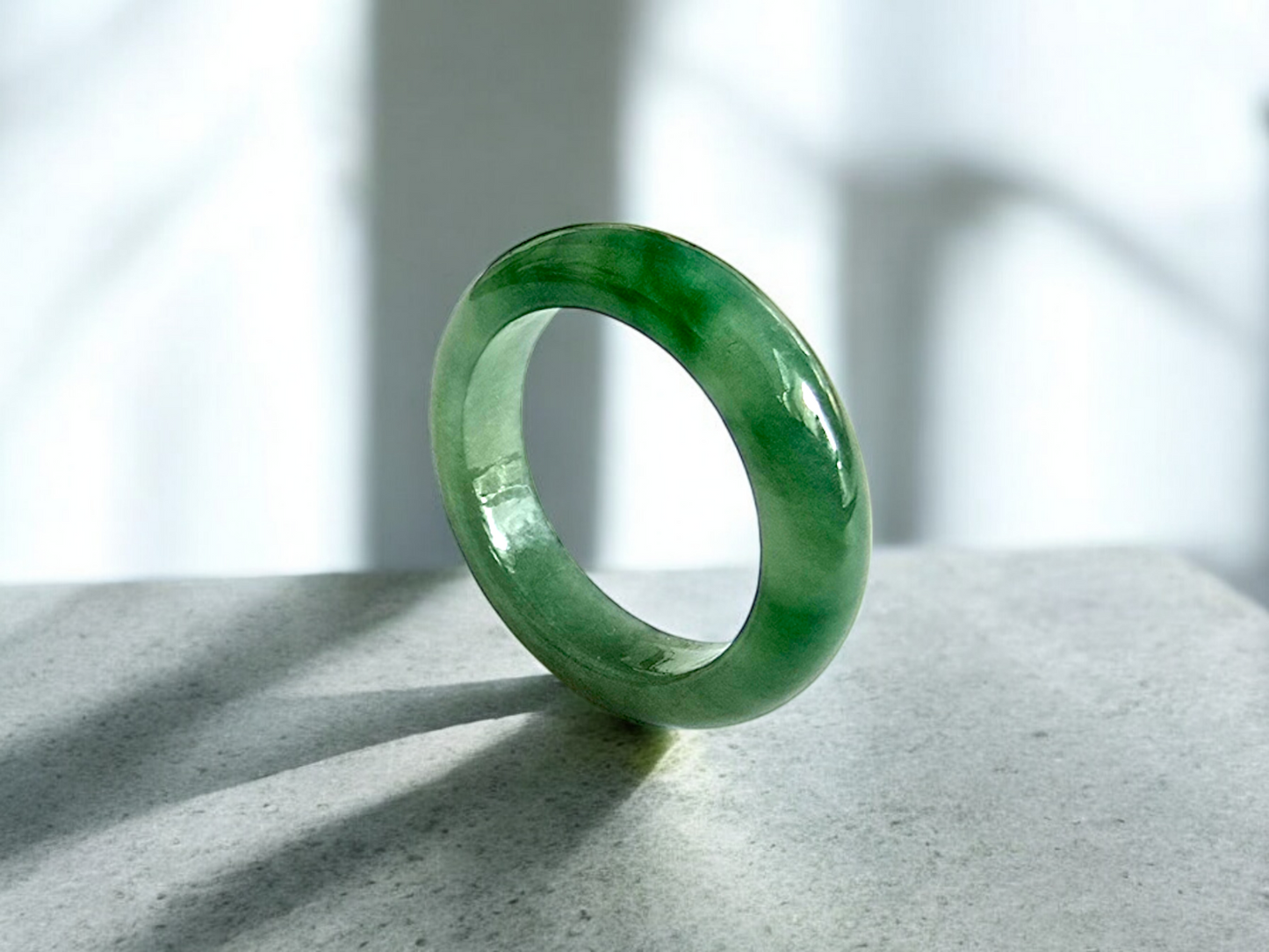 Our finest and most translucent series of Burmese A-Jadeite Infinity Band Rings. Our handpicked exclusive Jadeite is crafted into unique rings, each with the ideal optics and strength.