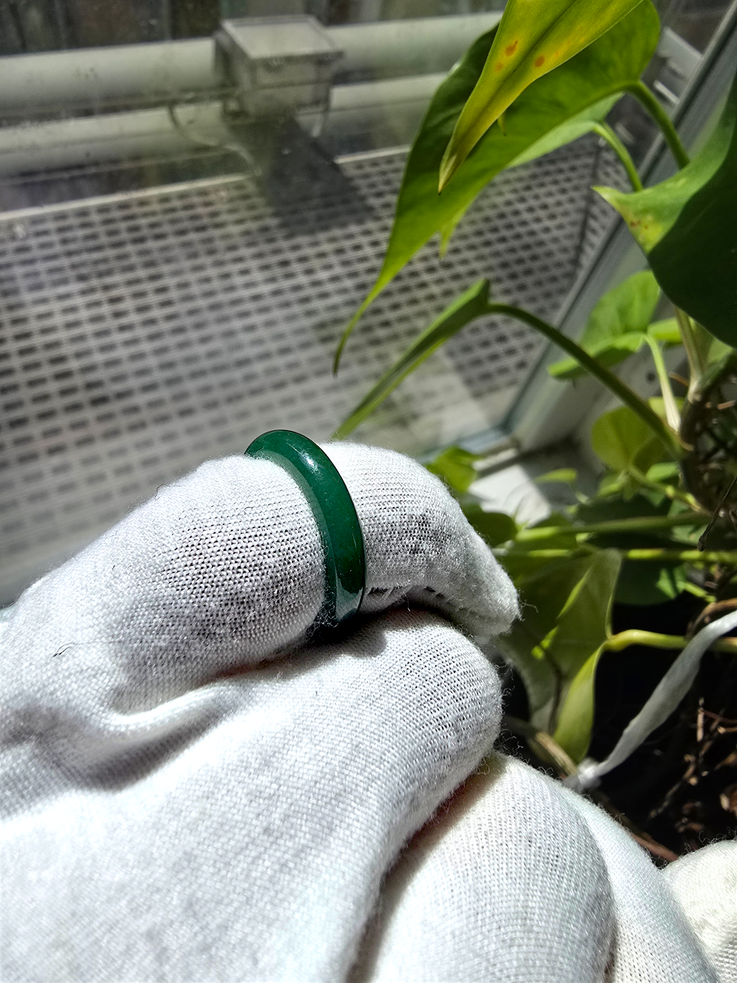 Each ring is unique and exclusively One-of One. With fibrous interwoven hues, this jadeite ring has a rich vibrant intense green tone with splashes and streaks of Imperial Jadeite. Perfect luster and light, excellent translucency and no cracks or blemishes on the ring.