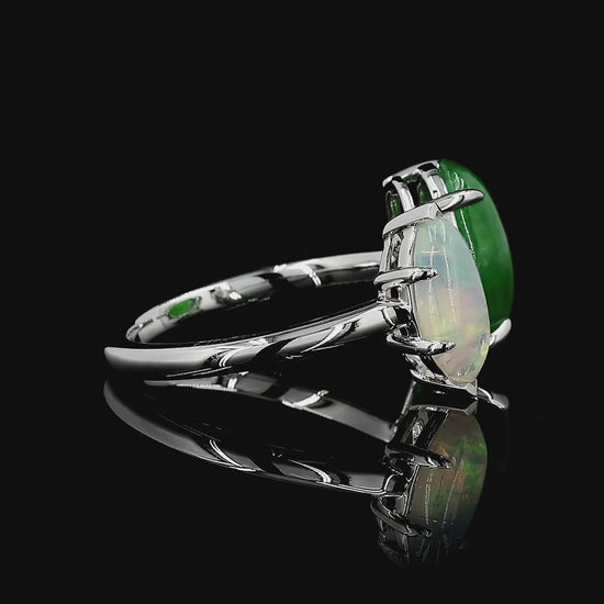 Opade Elegance Burmese A-Jadeite and Australian Opal Toi et Moi Ring Size US 7 with 14K White Gold - Certified V1
