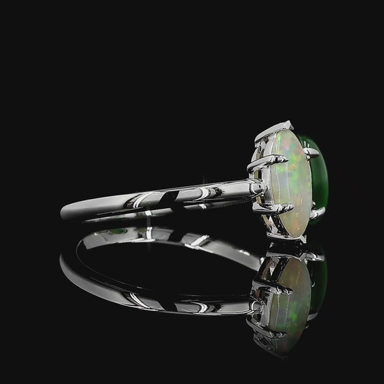 Opade Elegance Burmese A-Jadeite and Australian Opal Toi et Moi Ring Size US 8 with 14K White Gold - Certified V2