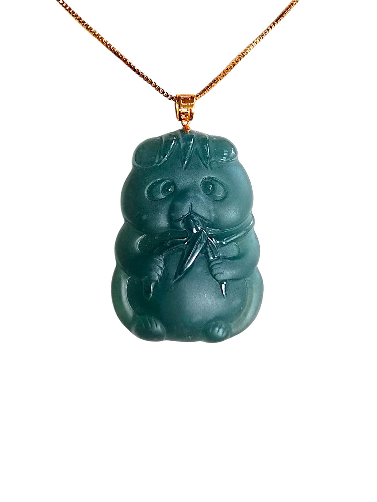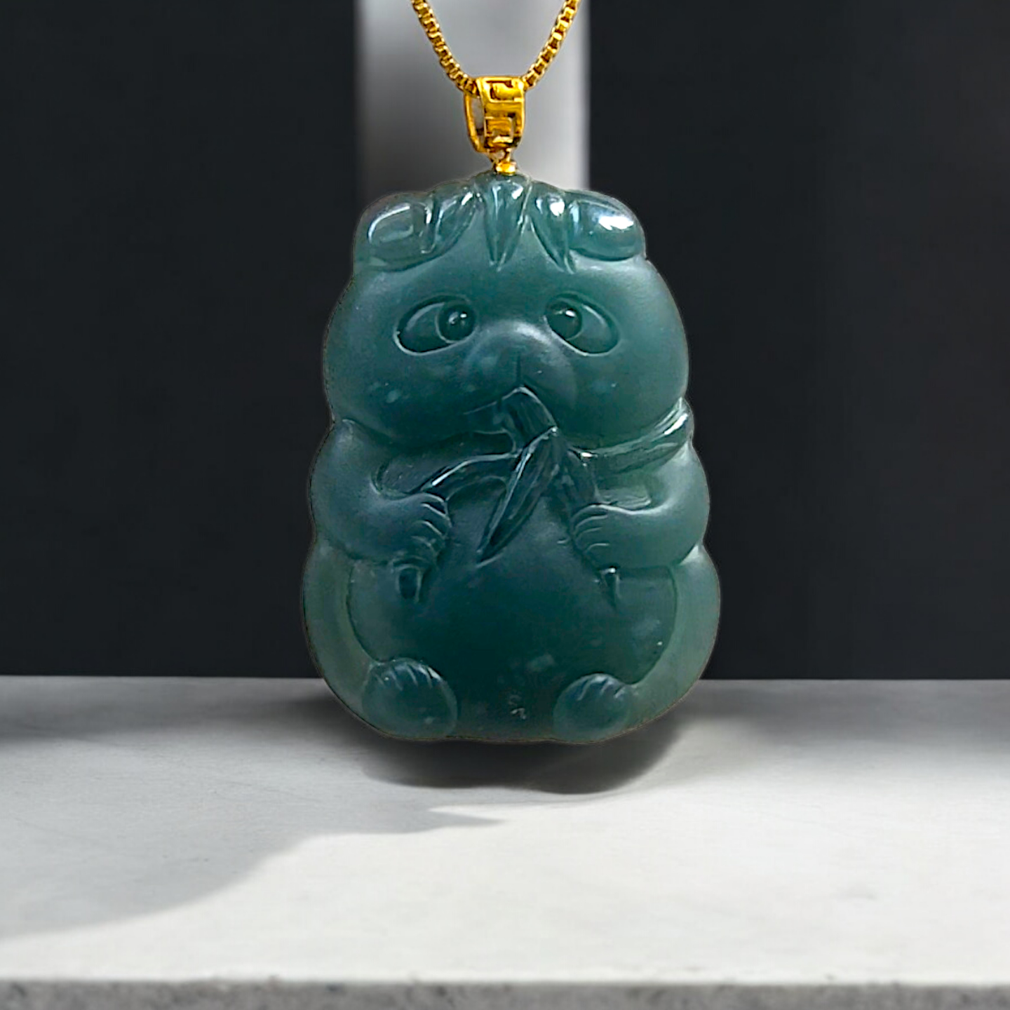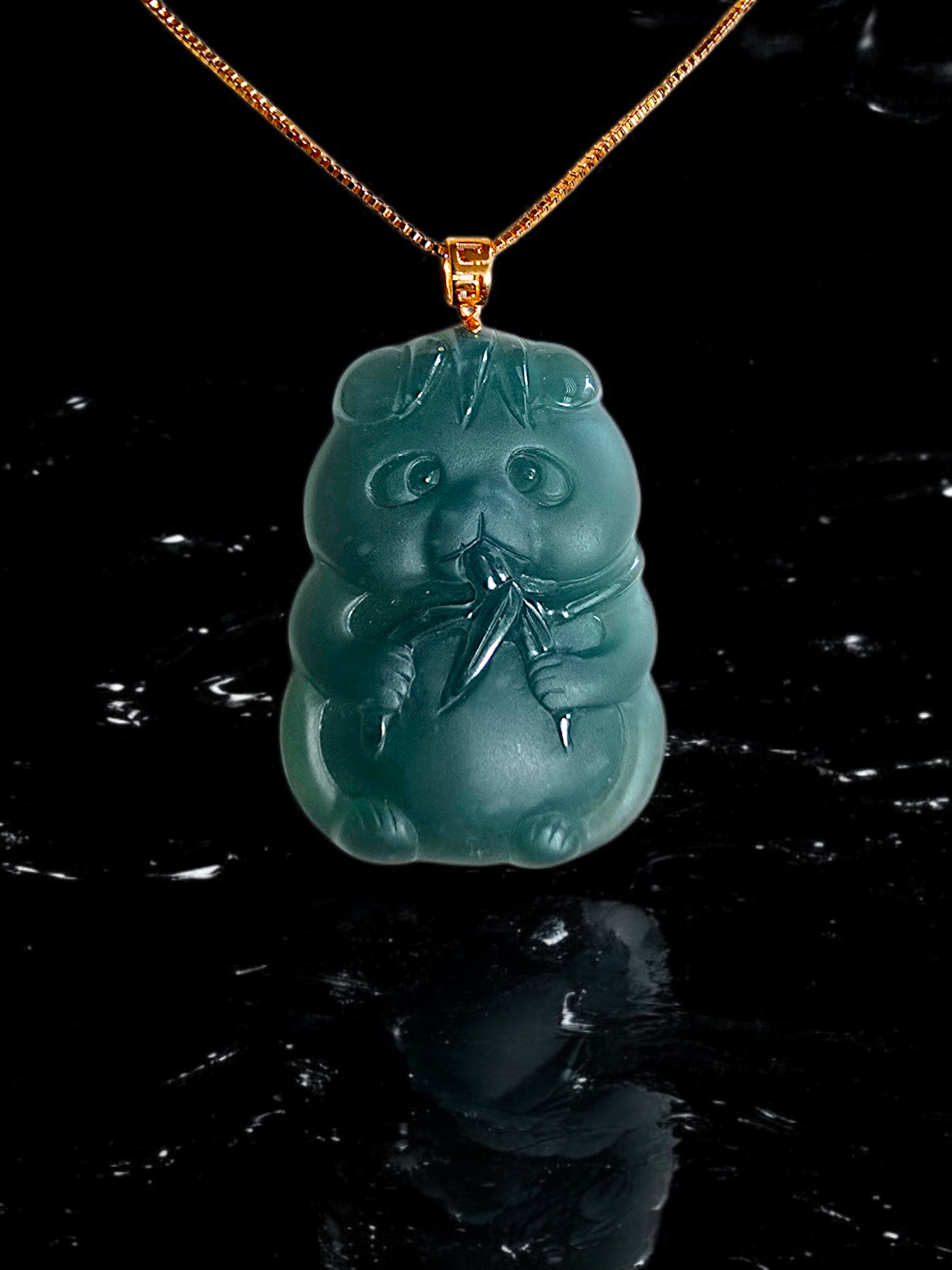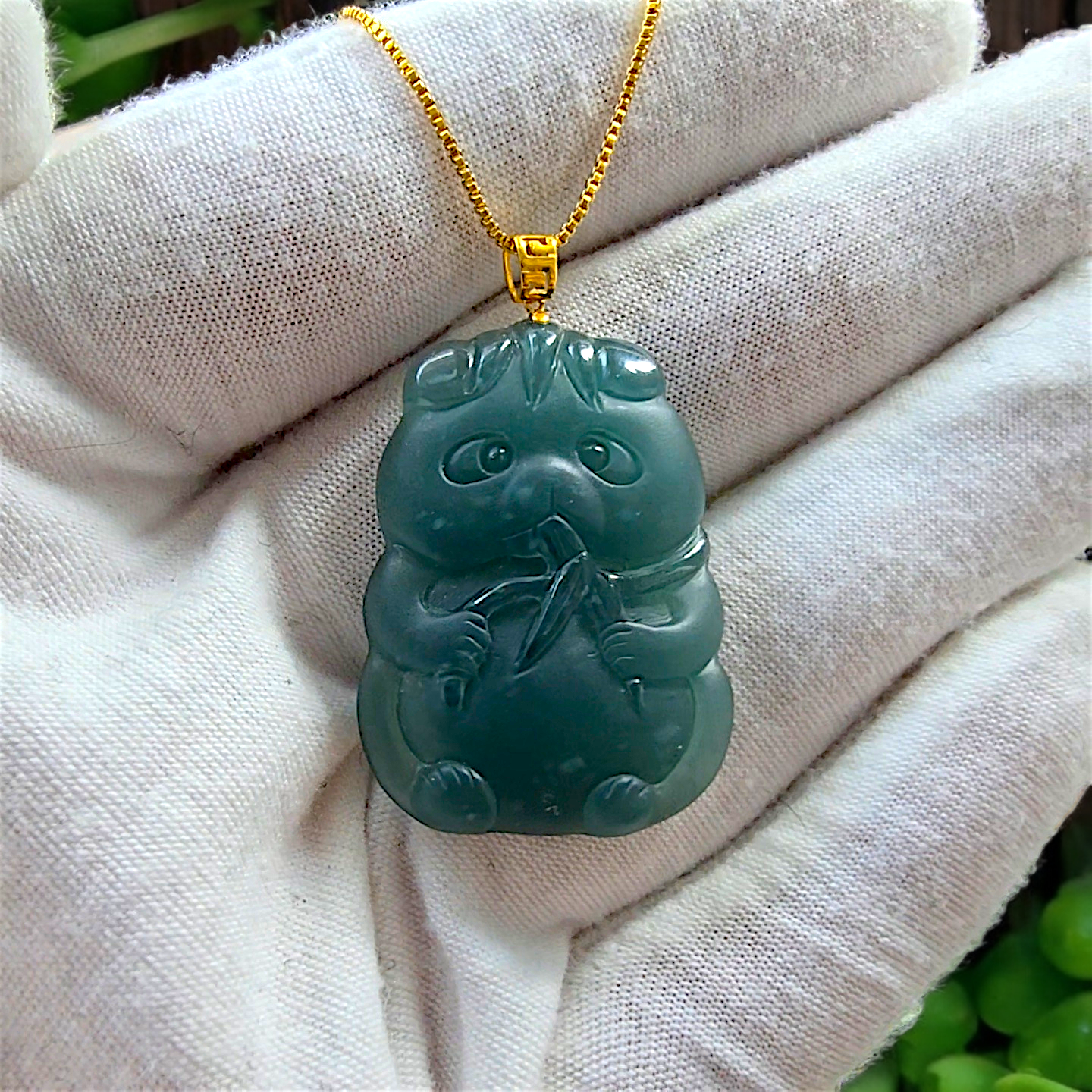 Baby Stu the Panda Burmese Blue-Green A-Jade Pendant with 18K Yellow Gold - Certified
