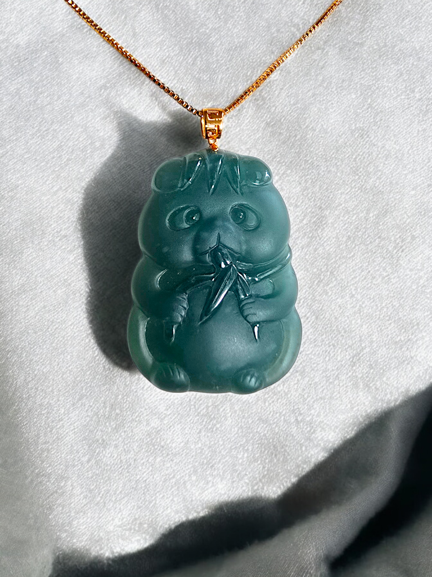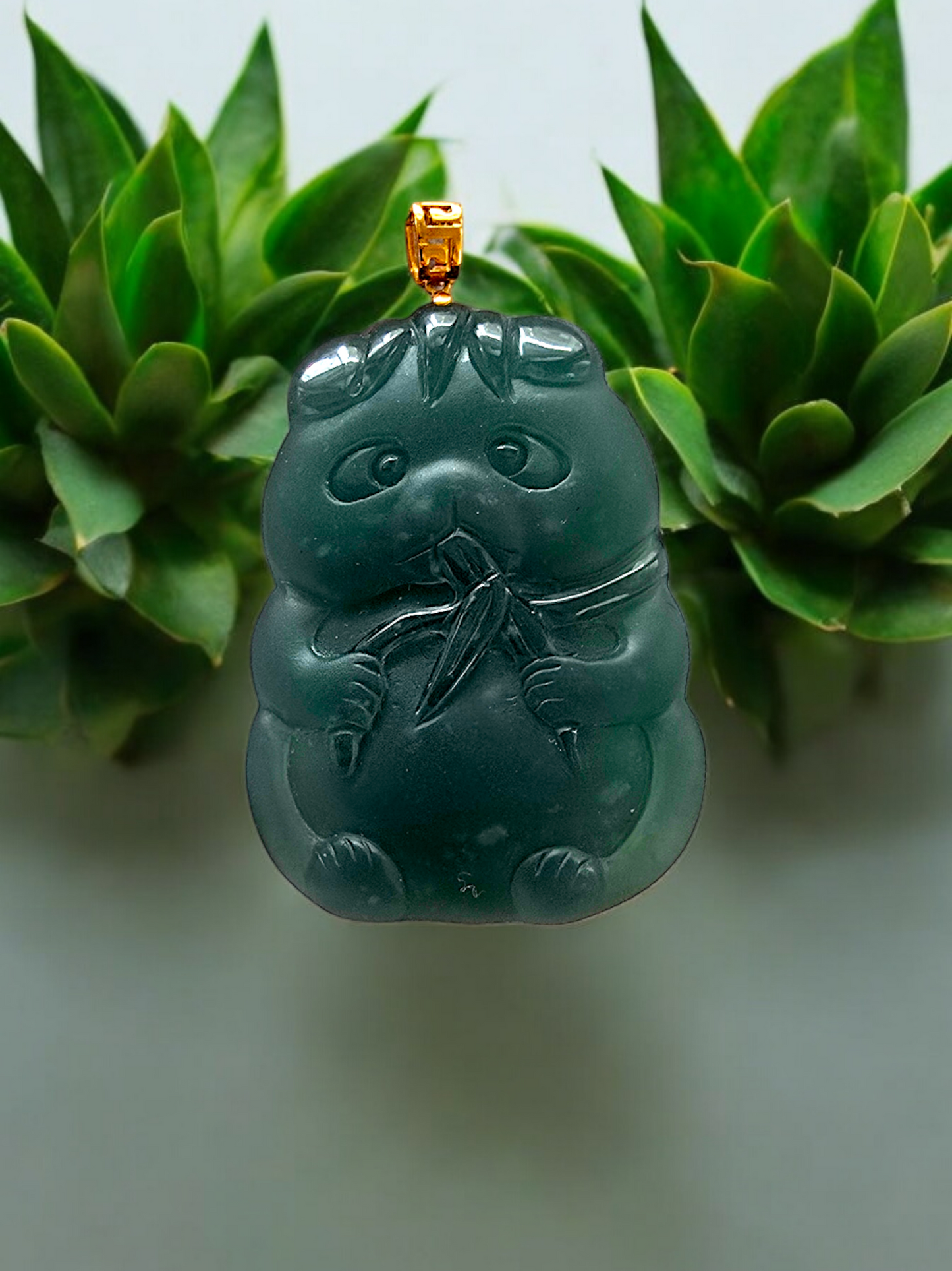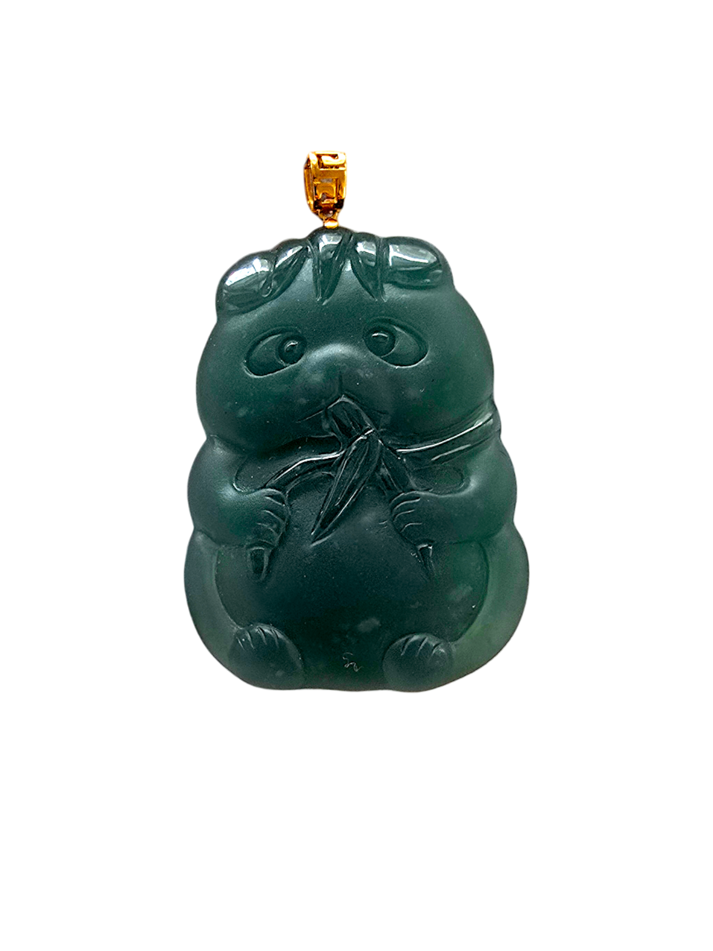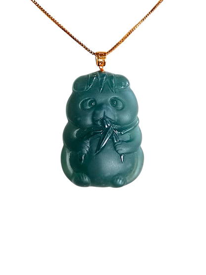Baby Stu the Panda Burmese Blue-Green A-Jade Pendant with 18K Yellow Gold - Certified