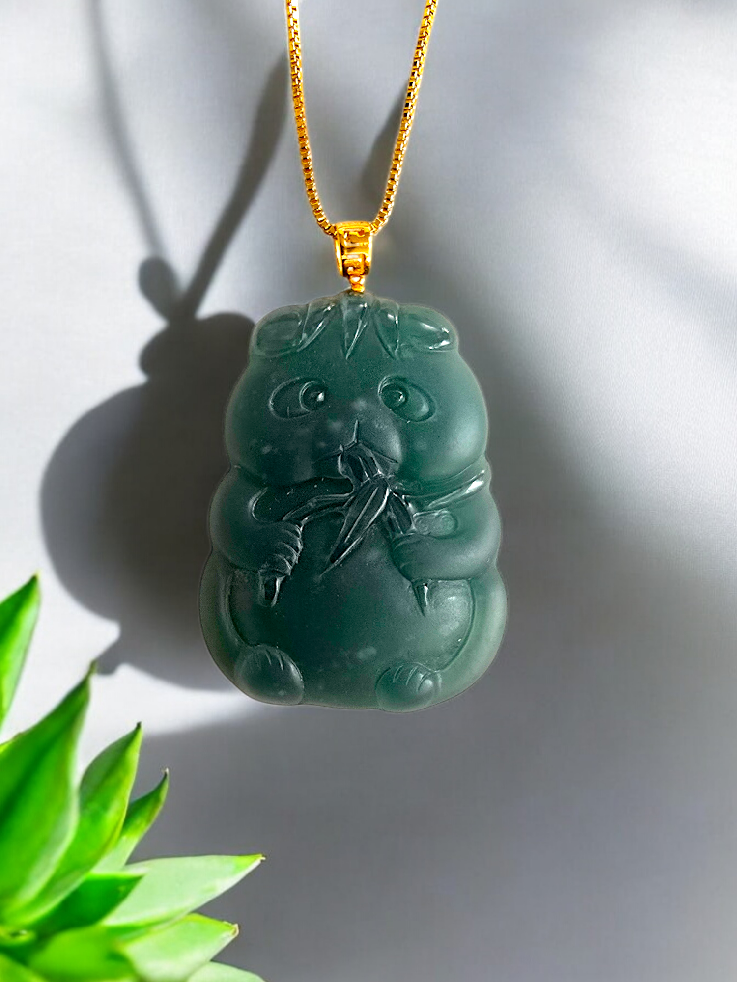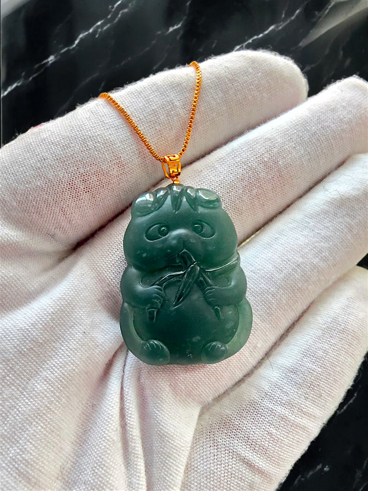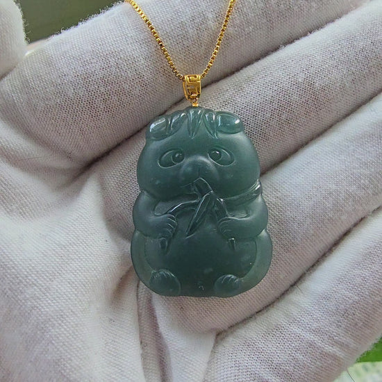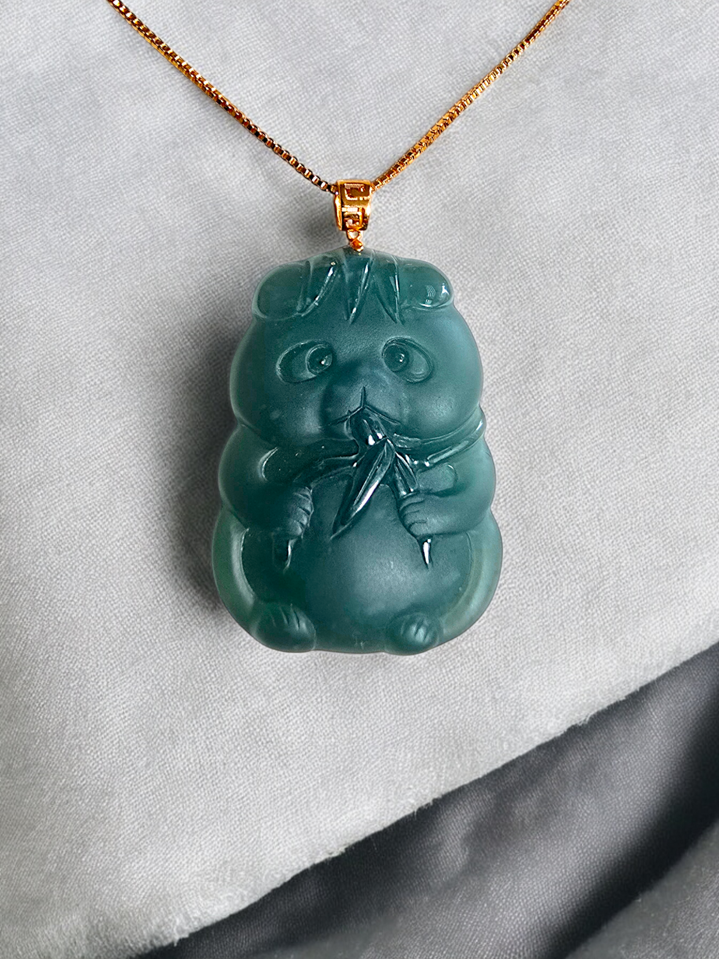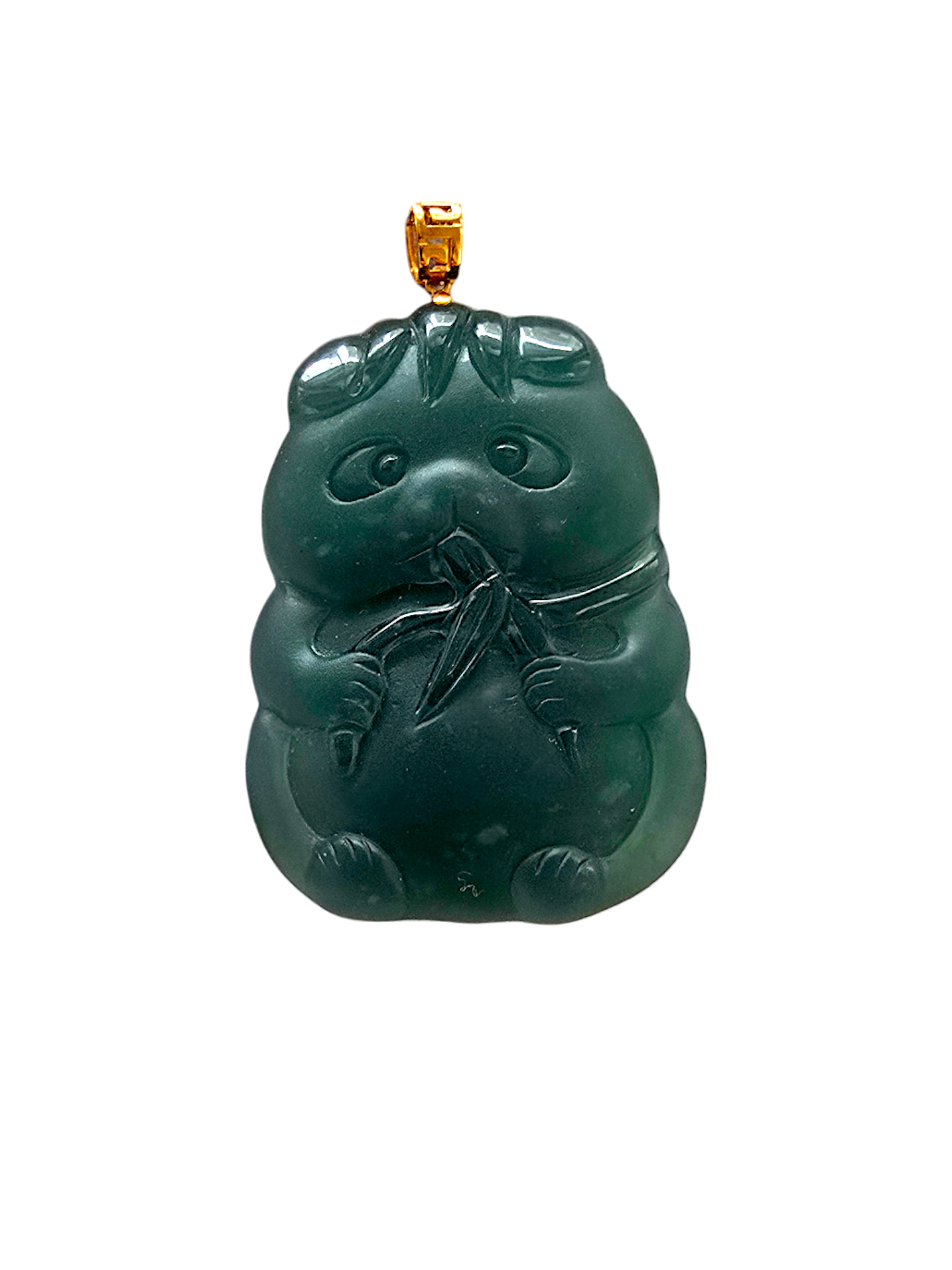 Baby Stu the Panda Burmese Blue-Green A-Jade Pendant with 18K Yellow Gold - Certified
