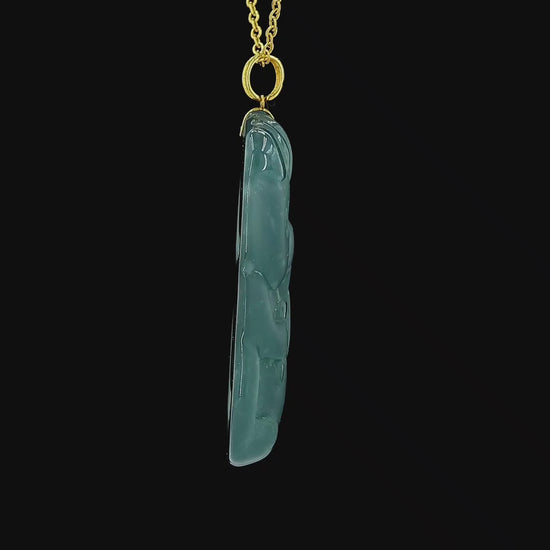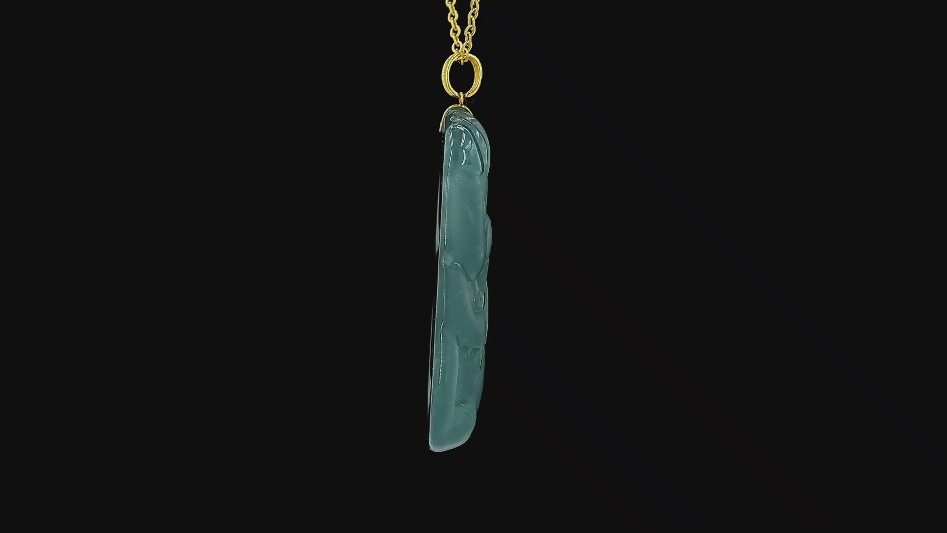 This pendant is made from handpicking the rarest Burmese A-Jadeite, with the optimal translucency, fiery imperial hues, tones and saturation of Blue-green. We use the natural and most desirable optics within the Jade to showcase the natural optical properties. We create a crown-esque clasp with 18K Yellow Gold.