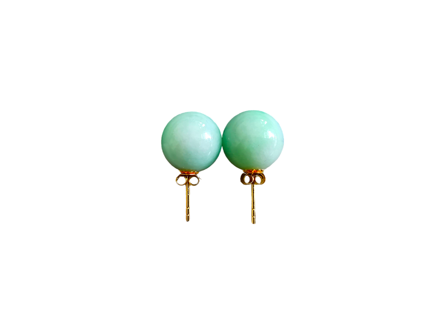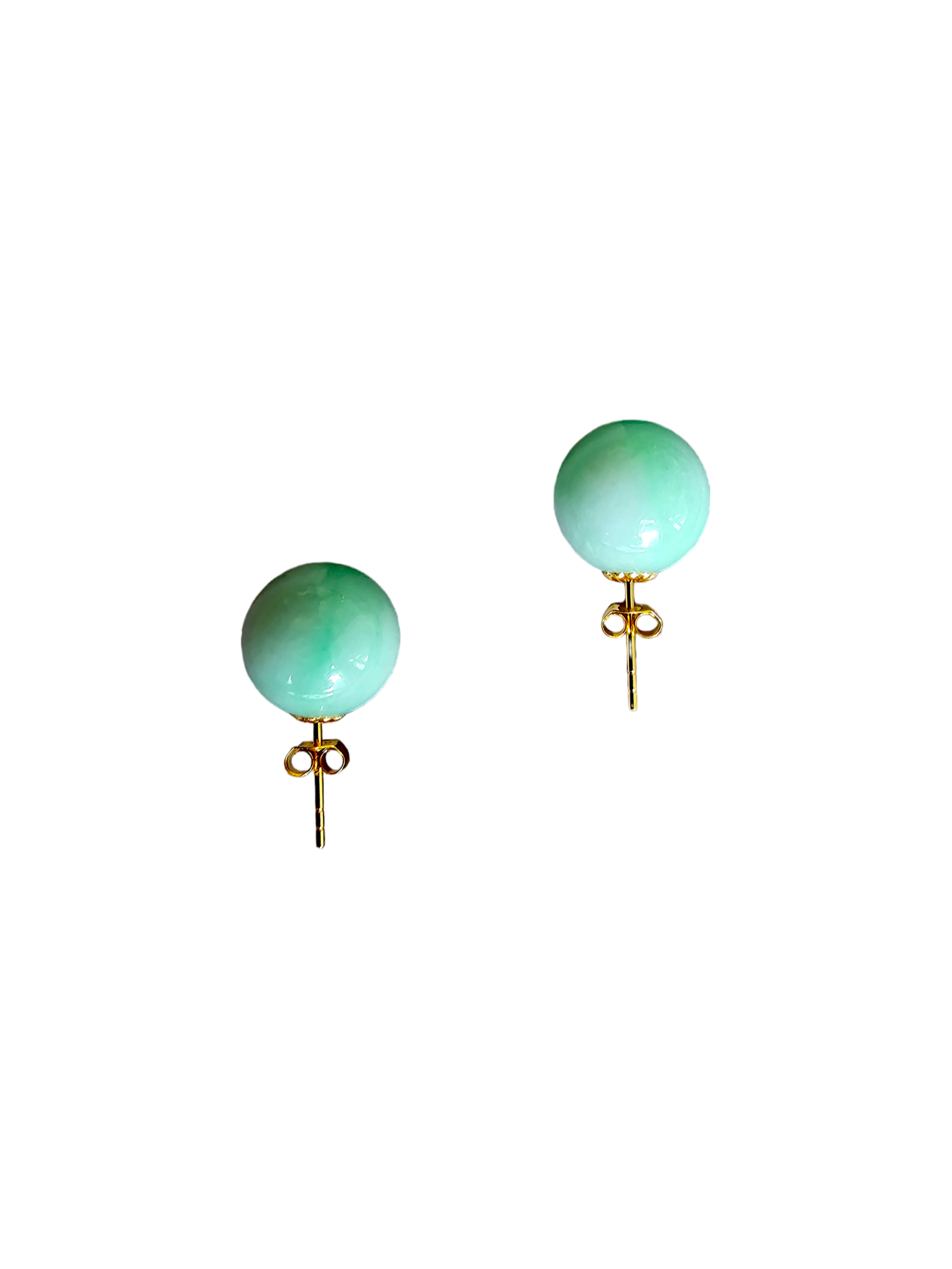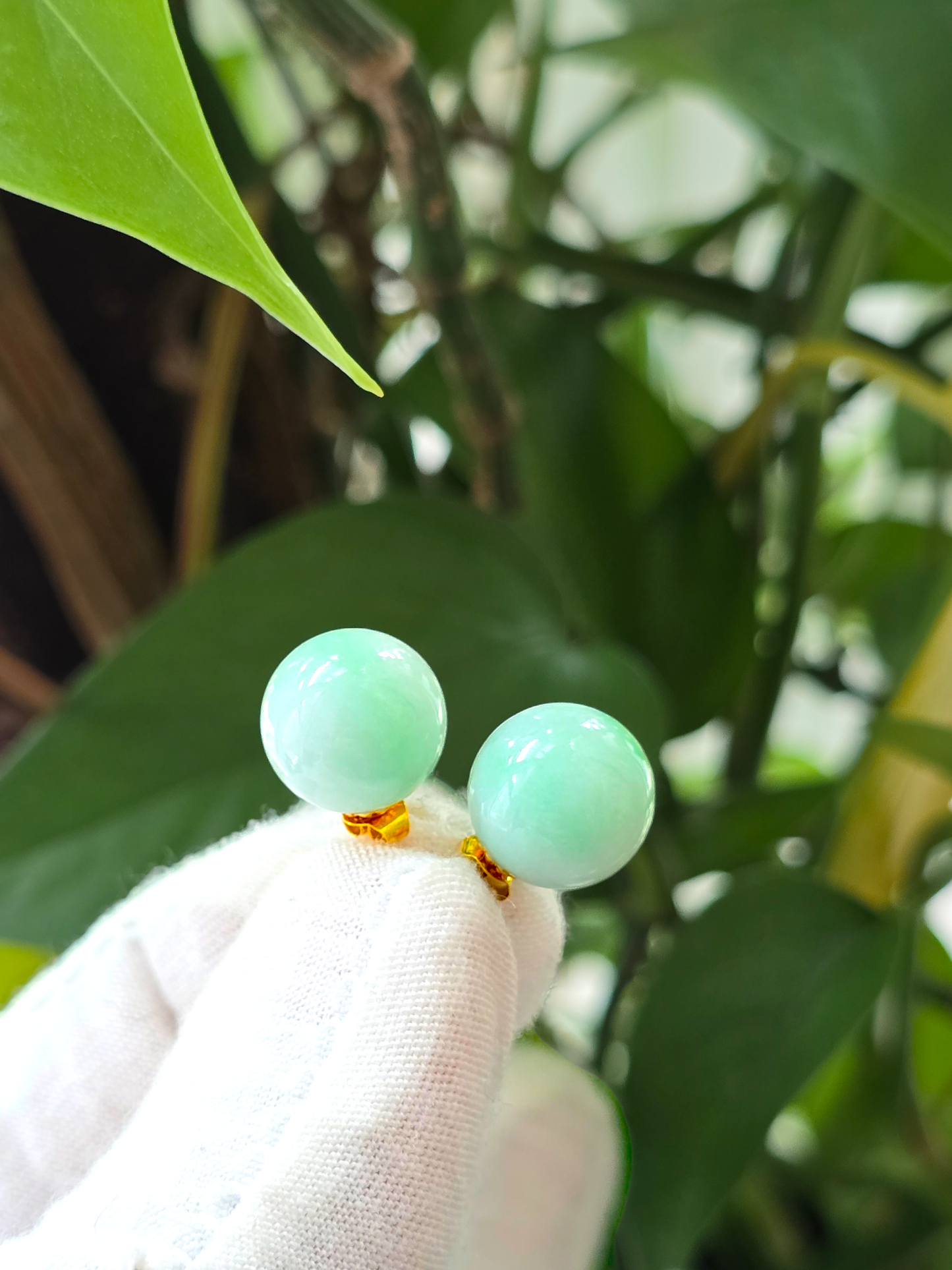 Beads of Eternity Burmese A-Jade Stud Earrings with 18K Yellow Gold 12mm 18002