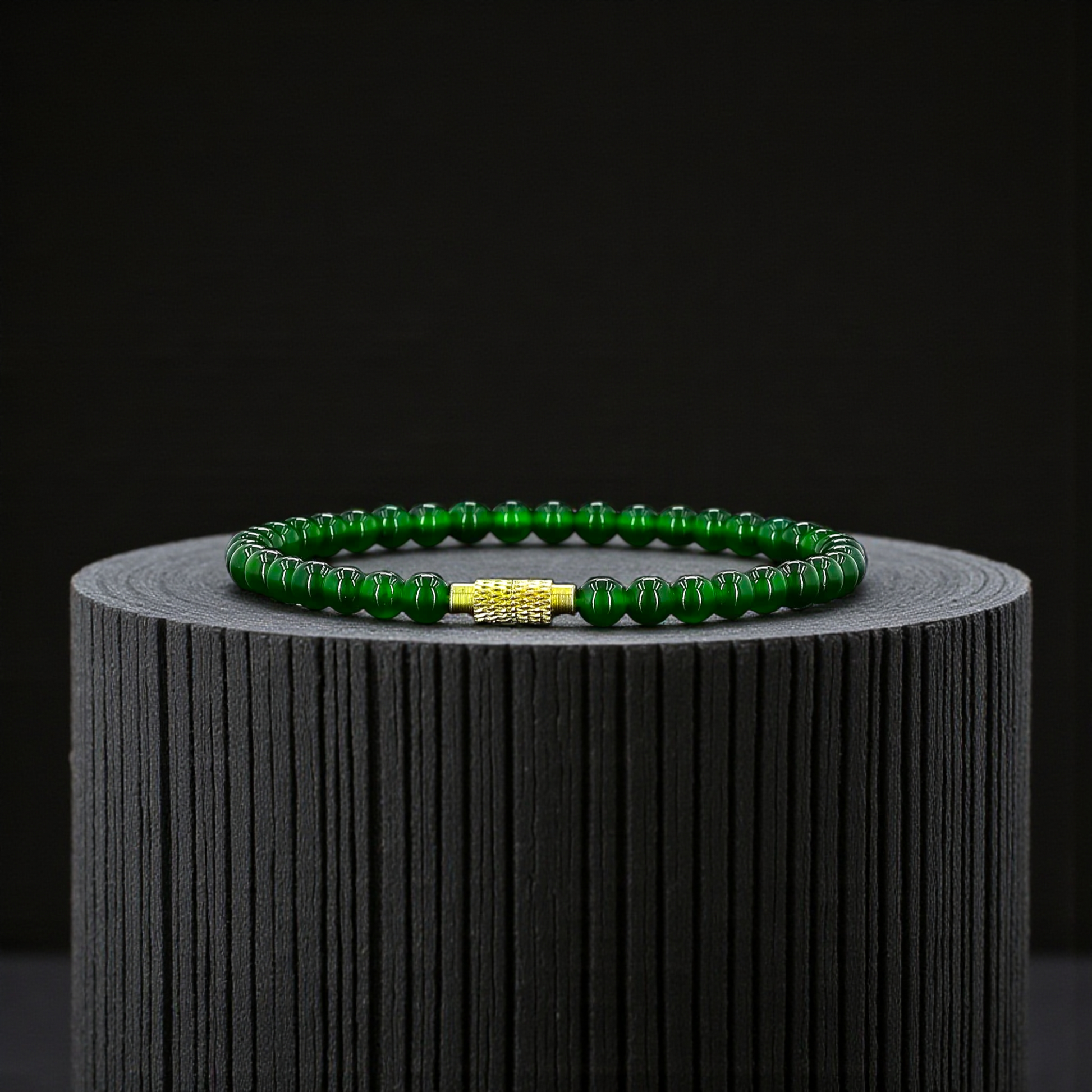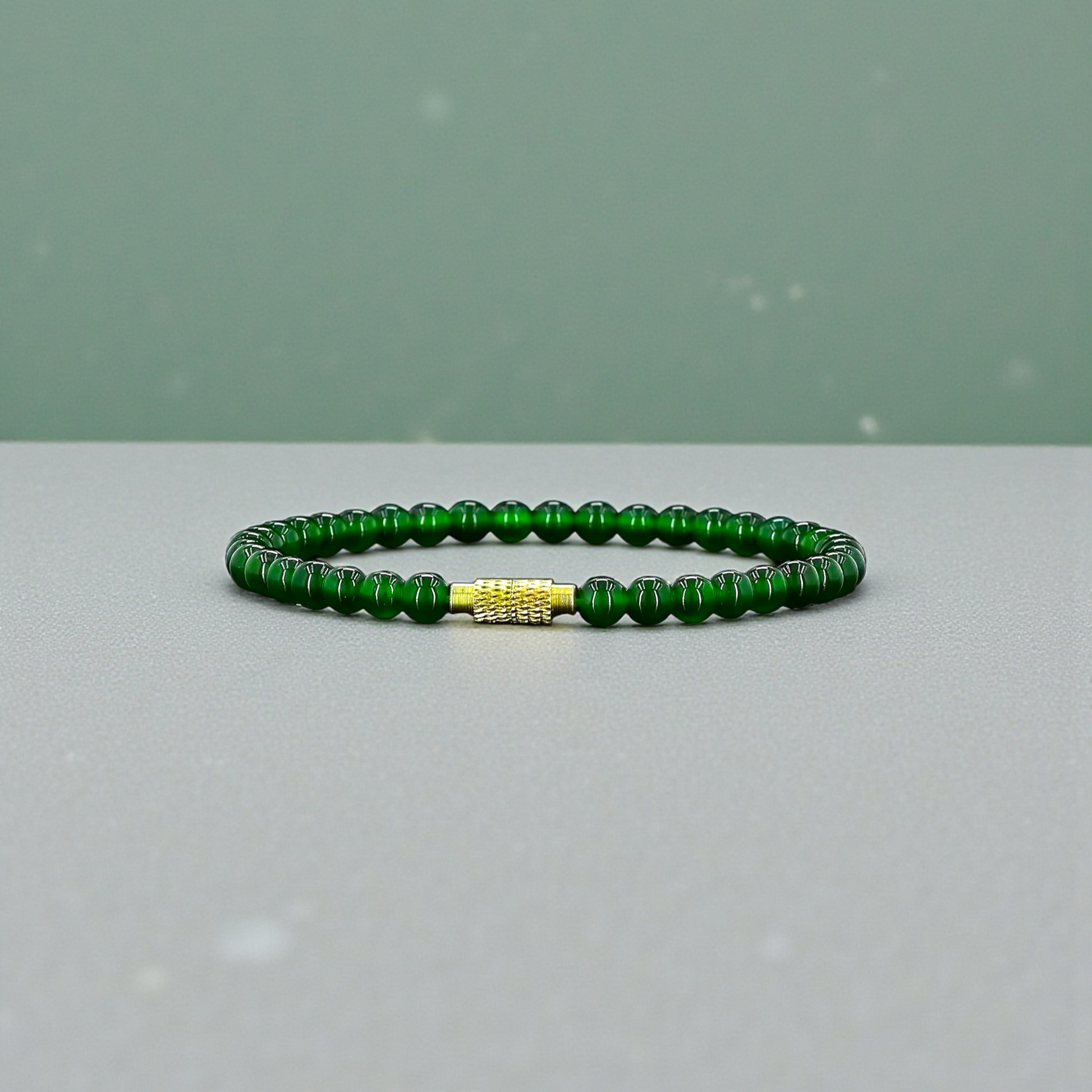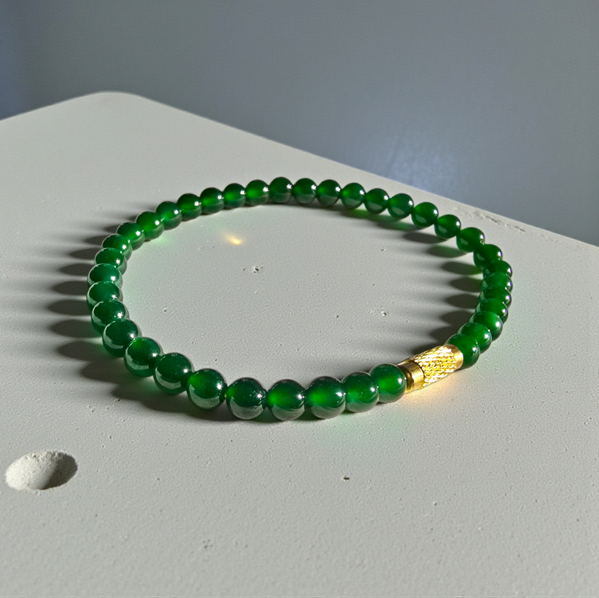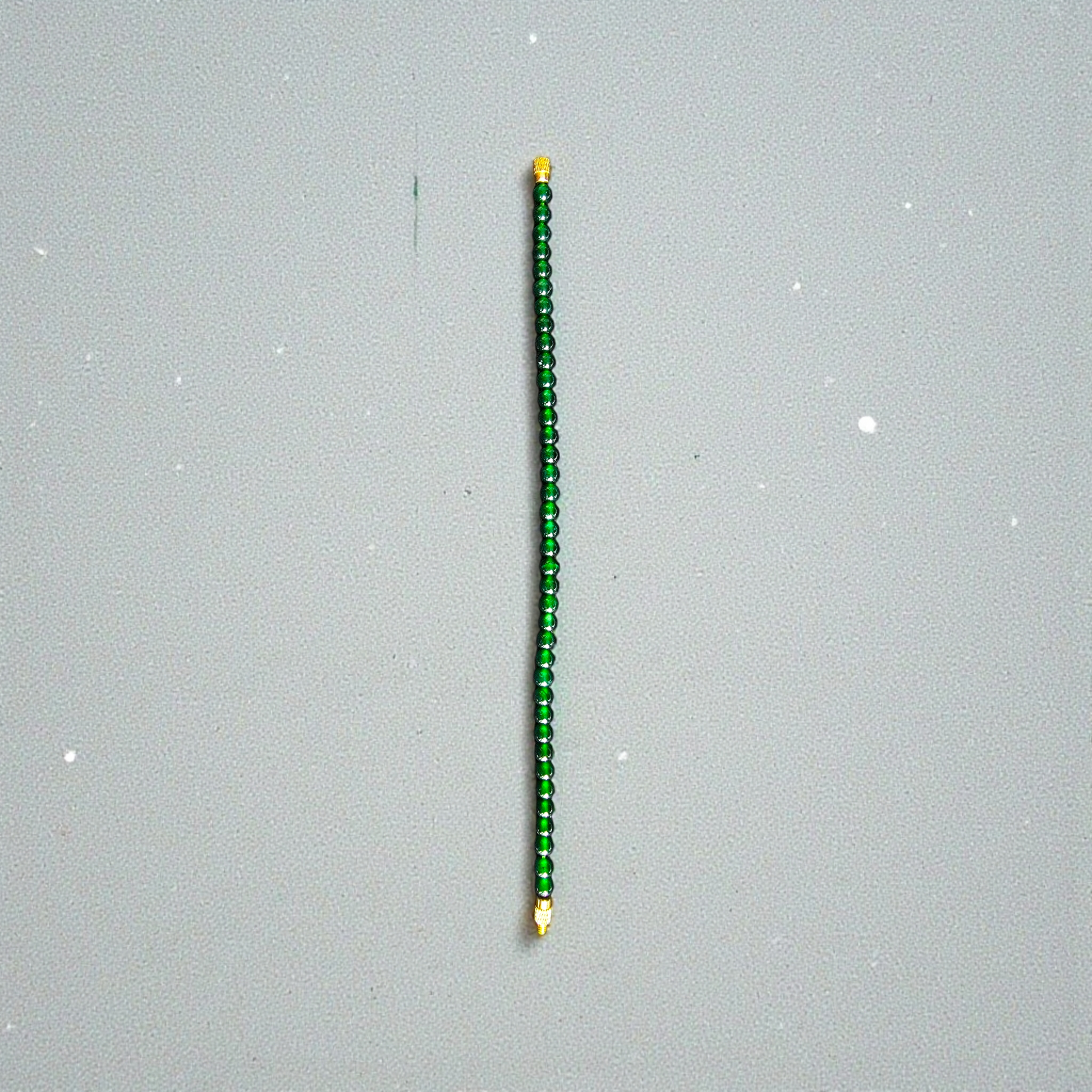 4.50 mm each, 38 perfectly calibrated Green Burmese A-Jadeite Beads. This unique beads bracelet is 100% cut, calibrated, strung, and MADE IN JAPAN. Some of the rarest naturally occurring hues of A-Jadeite, the calibrated Green beads create a visually stunning Bracelet. The Imperial Green color is consistent, with Vivid-Imperial, Bright and Intense Green streaks. With vibrant optics and translucency, the depth of each stone shines.