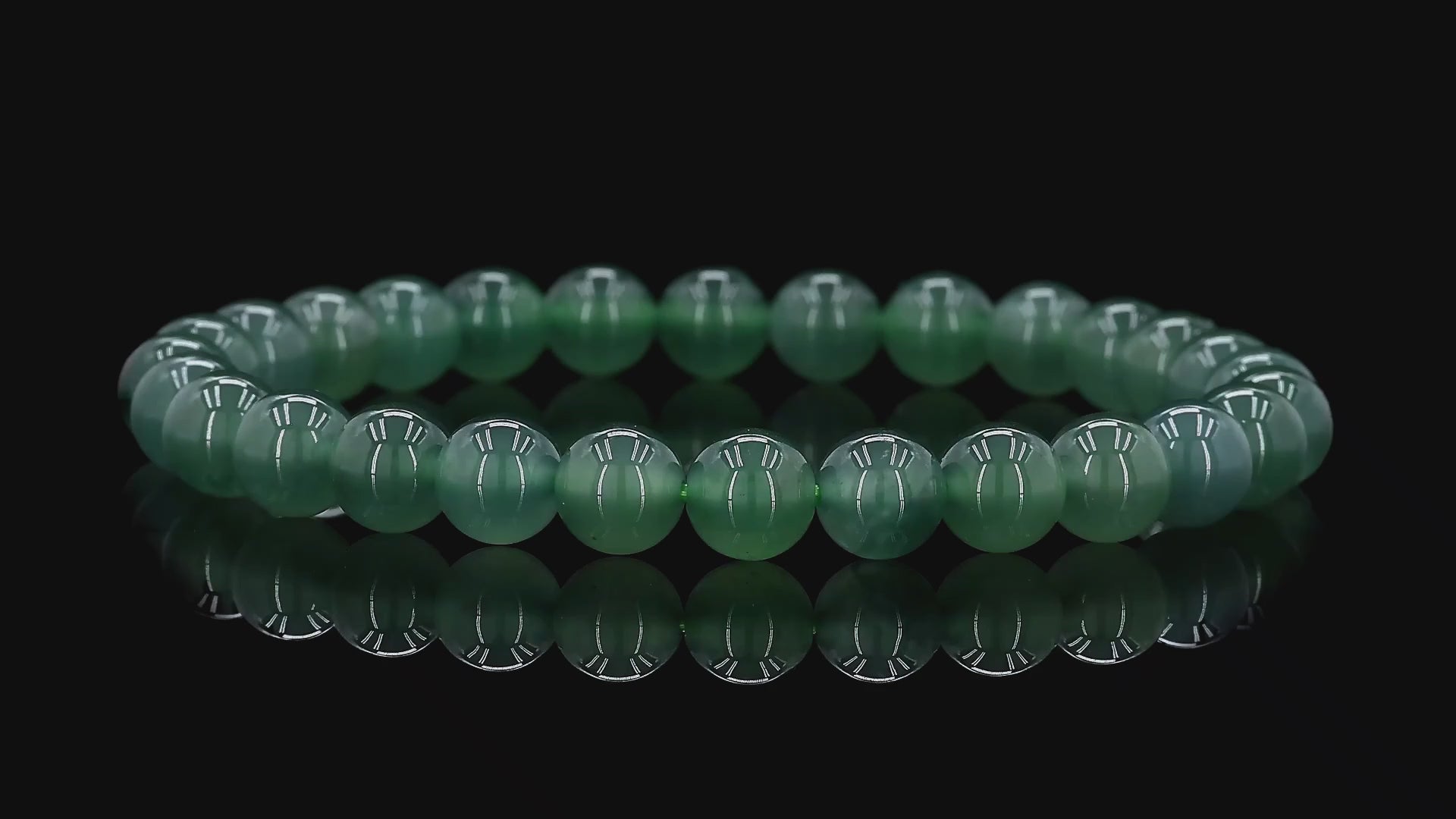 7mm each, 28 perfectly calibrated Bluish-Green Burmese A-Jadeite Beads. This unique beads bracelet is 100% cut, calibrated, strung, and MADE IN JAPAN. Some of the rarest naturally occurring hues of A-Jadeite, the calibrated Blue-Green beads create a visually stunning Bracelet. The Blue-Green color is consistent and clean. With vibrant optics and translucency, the depth of each stone shines