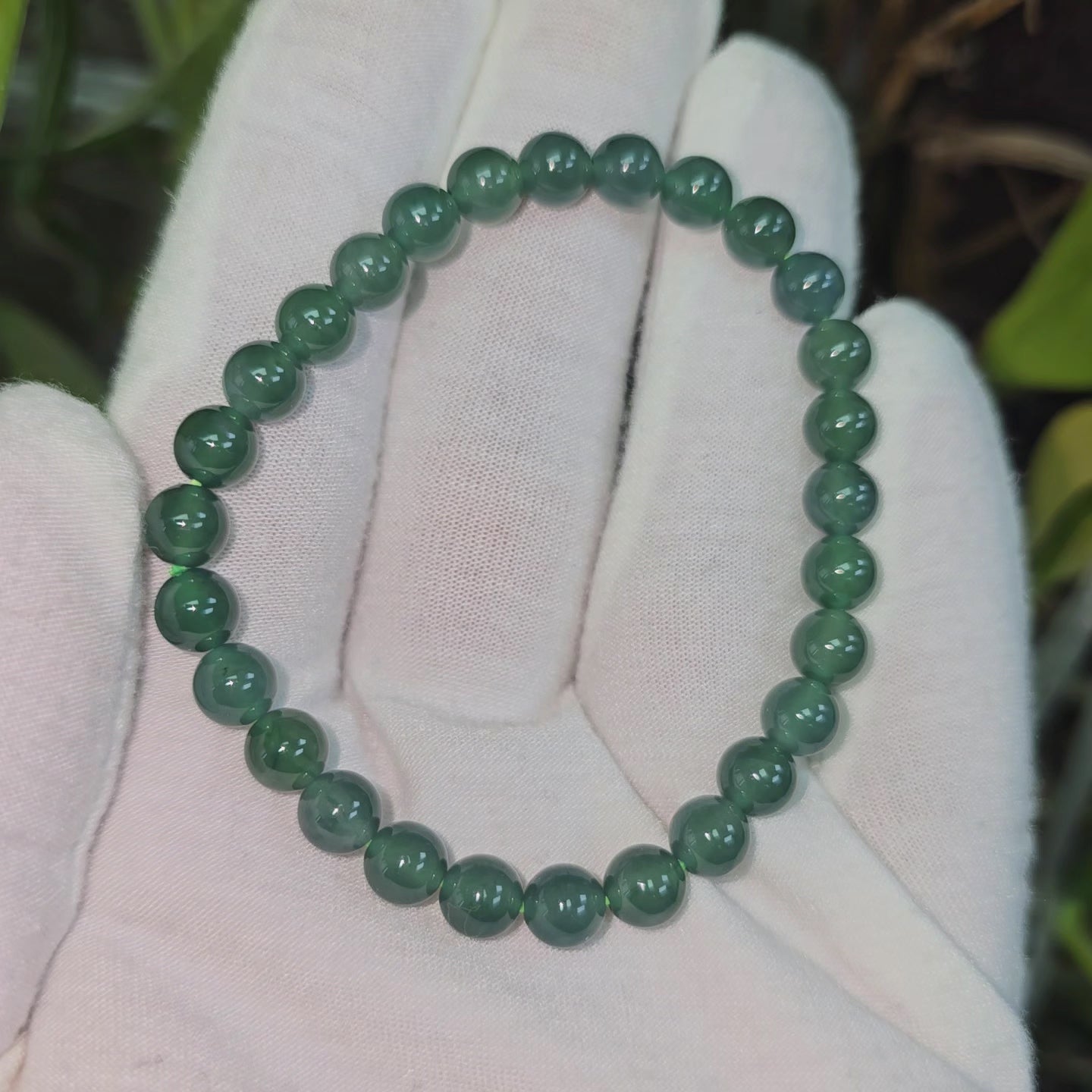 Certified Japanese Blue-Green Burmese A-Jade Beaded Bracelet (MADE IN JAPAN) (7 mm Each x 28 beads) 05044