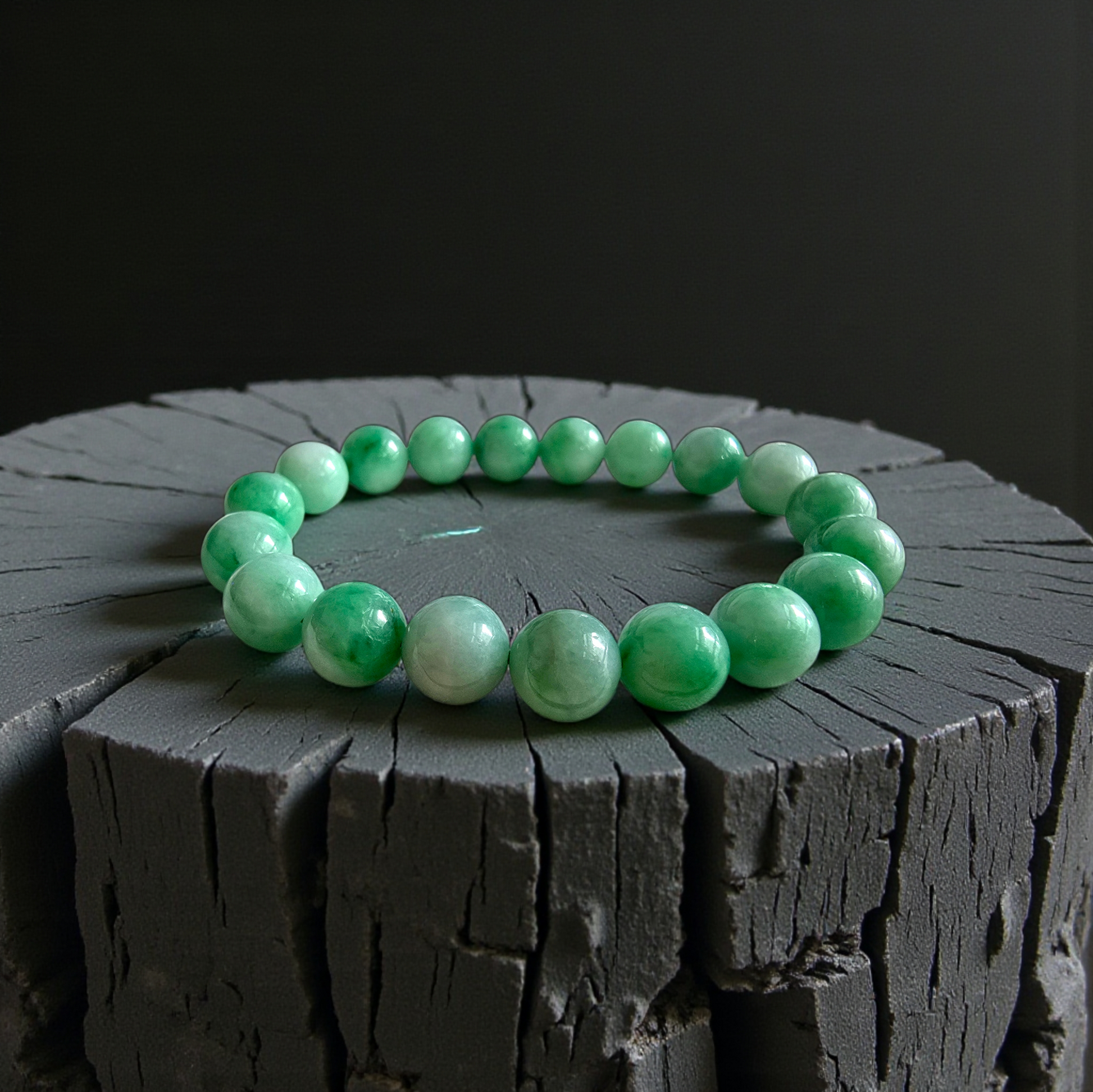 Completely untreated and 100% natural, this is a great accompaniment to formal and casual settings alike. Each beaded-bracelet is one-of-a-kind, based on the natural variances of the raw jadeite, ensuring each one is truly unique and has its own story.