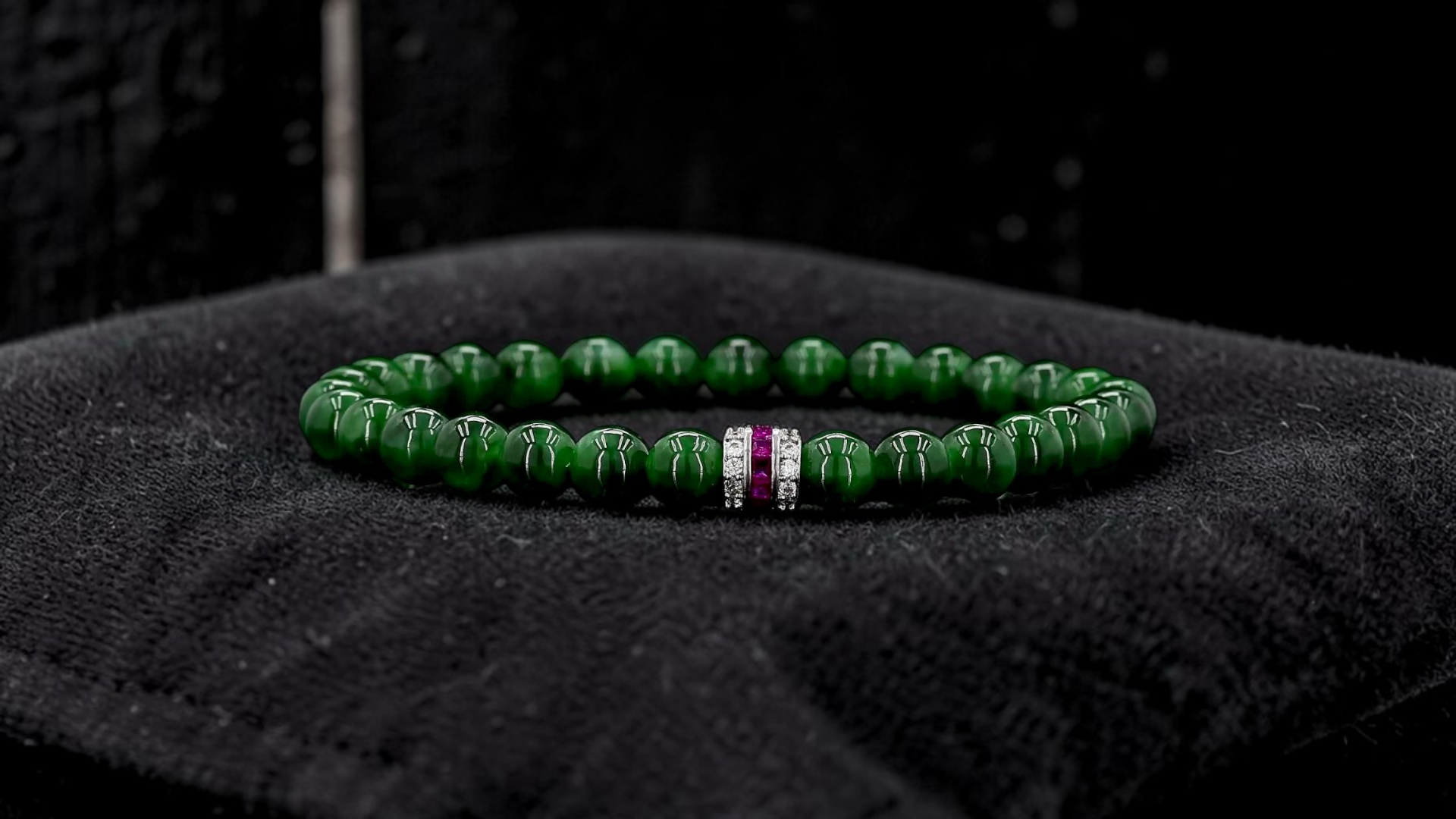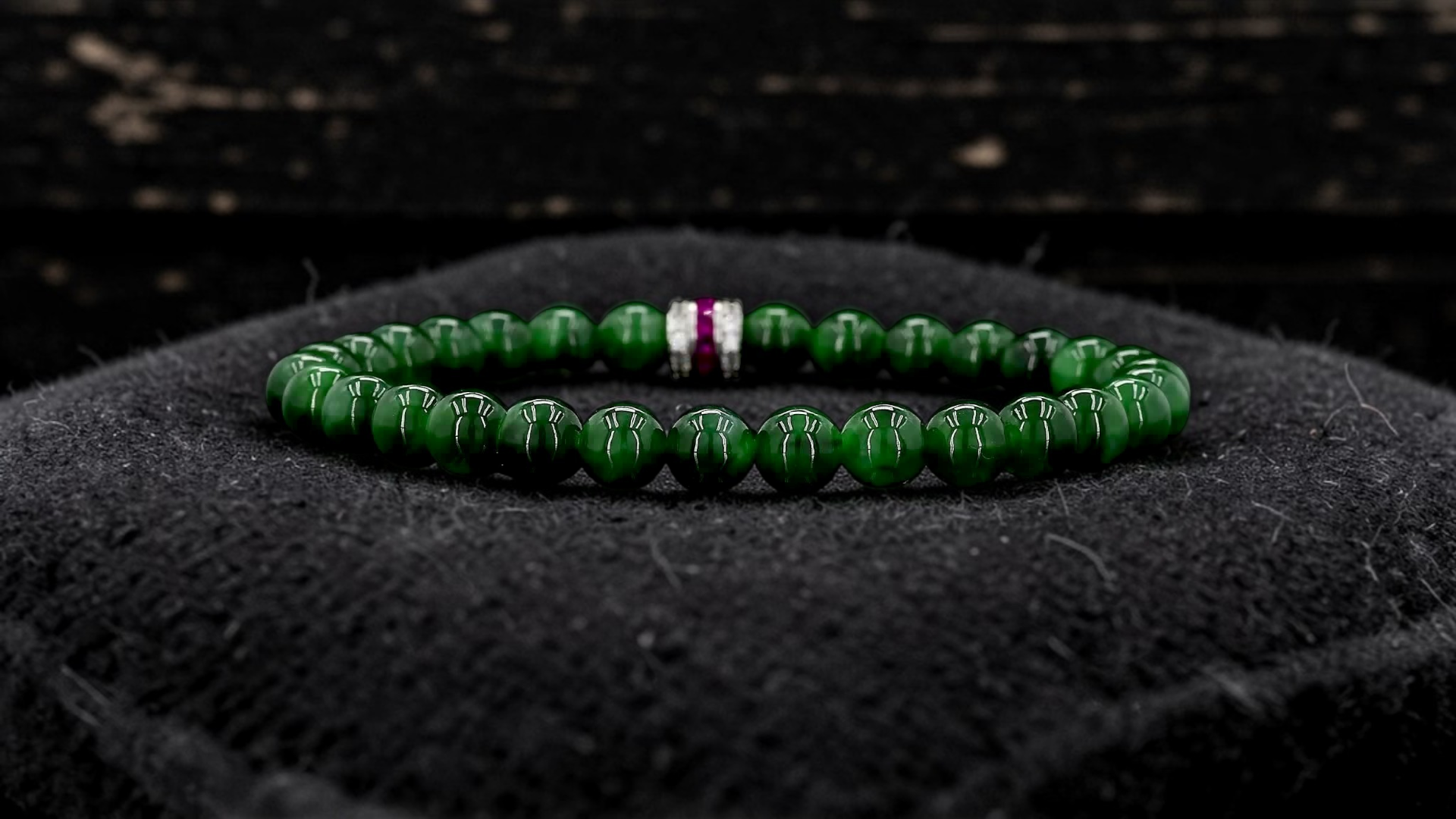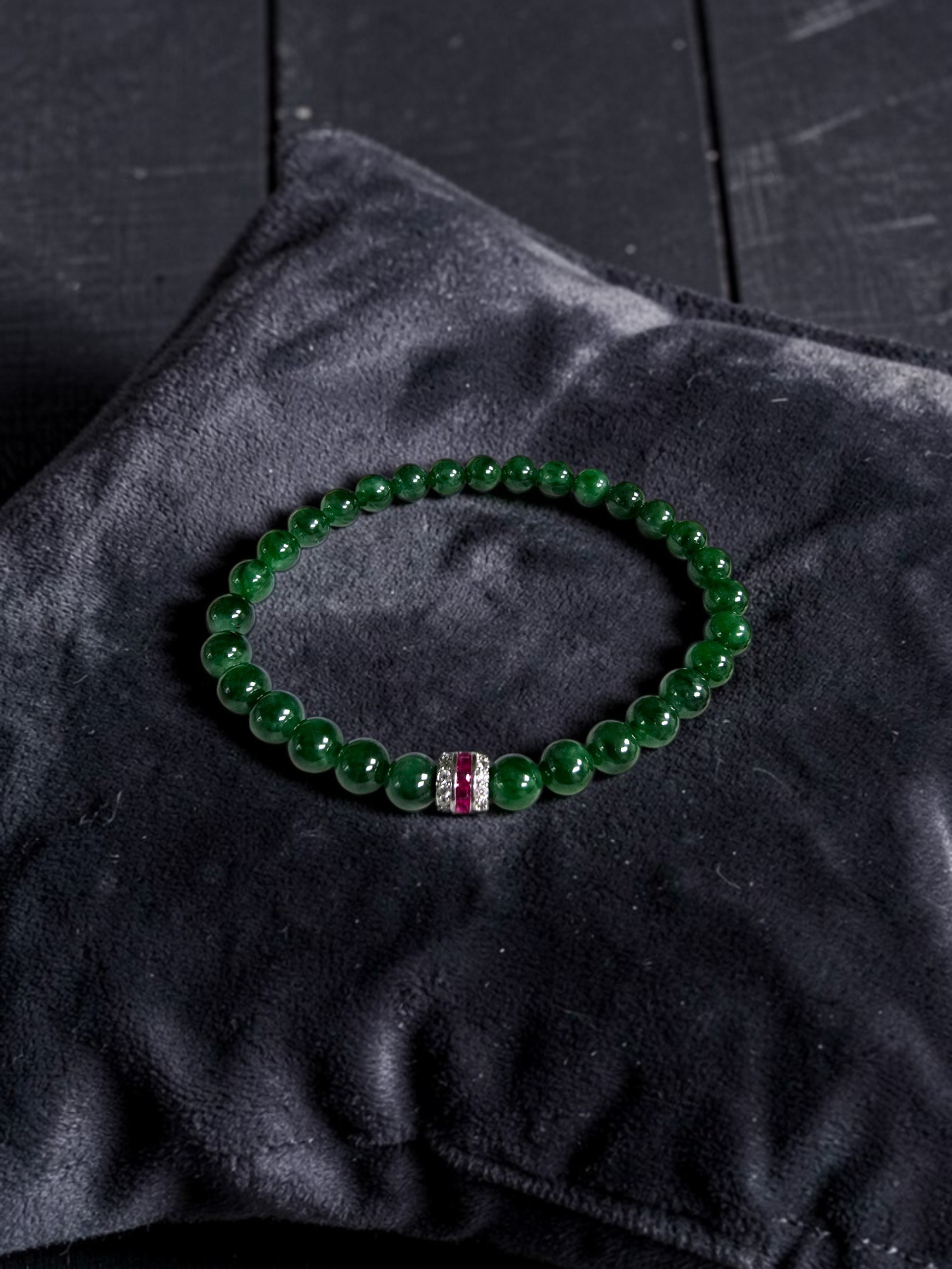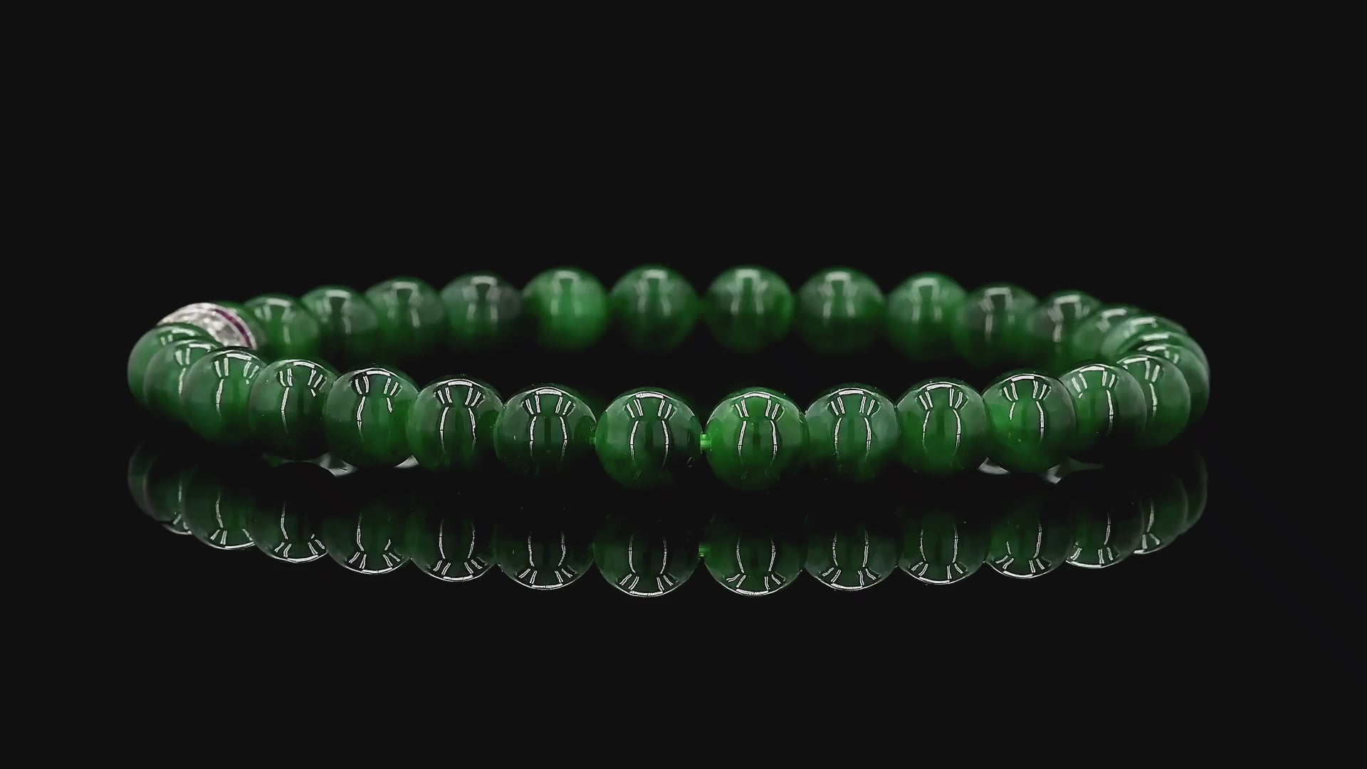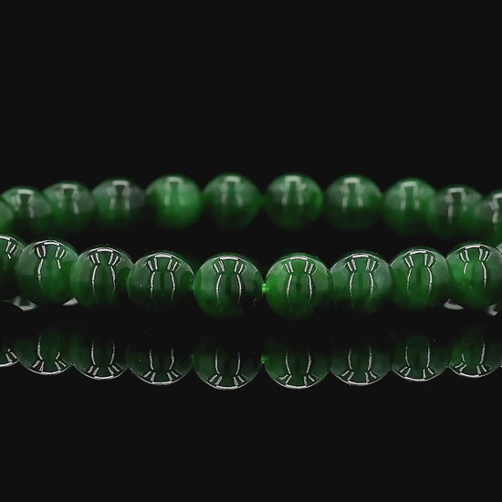 6mm each, 30 perfectly calibrated Deep Apple Green Burmese A-Jadeite Beads. This unique beads bracelet is 100% cut, calibrated, strung, and MADE IN JAPAN. Some of the rarest naturally occurring hues of A-Jadeite, the calibrated Green beads create a visually stunning Bracelet. The Deep Apple Green color is interlaced with Vivid-Imperial, Bright and Intense Green streaks. With vibrant optics and translucency, the depth of each stone shines