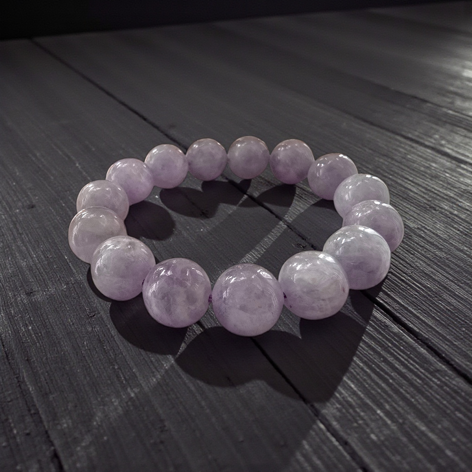 Certified Japanese Pale Purple Lavender Burmese A-Jade Beaded Bracelet (MADE IN JAPAN) (12.50 mm Each x 15 beads) 05045