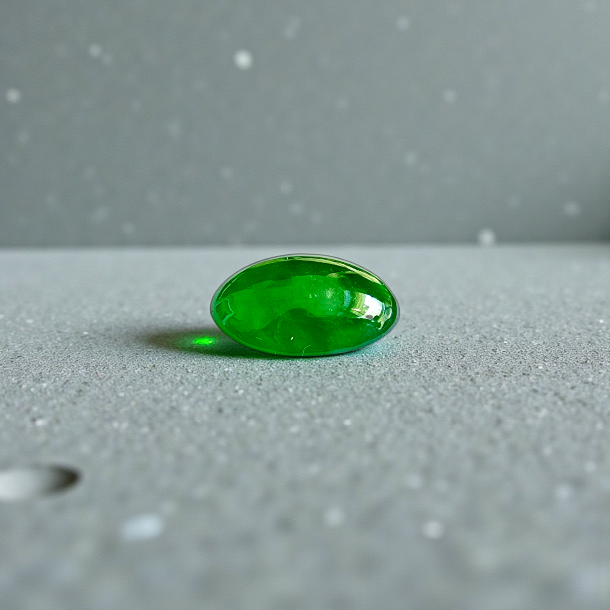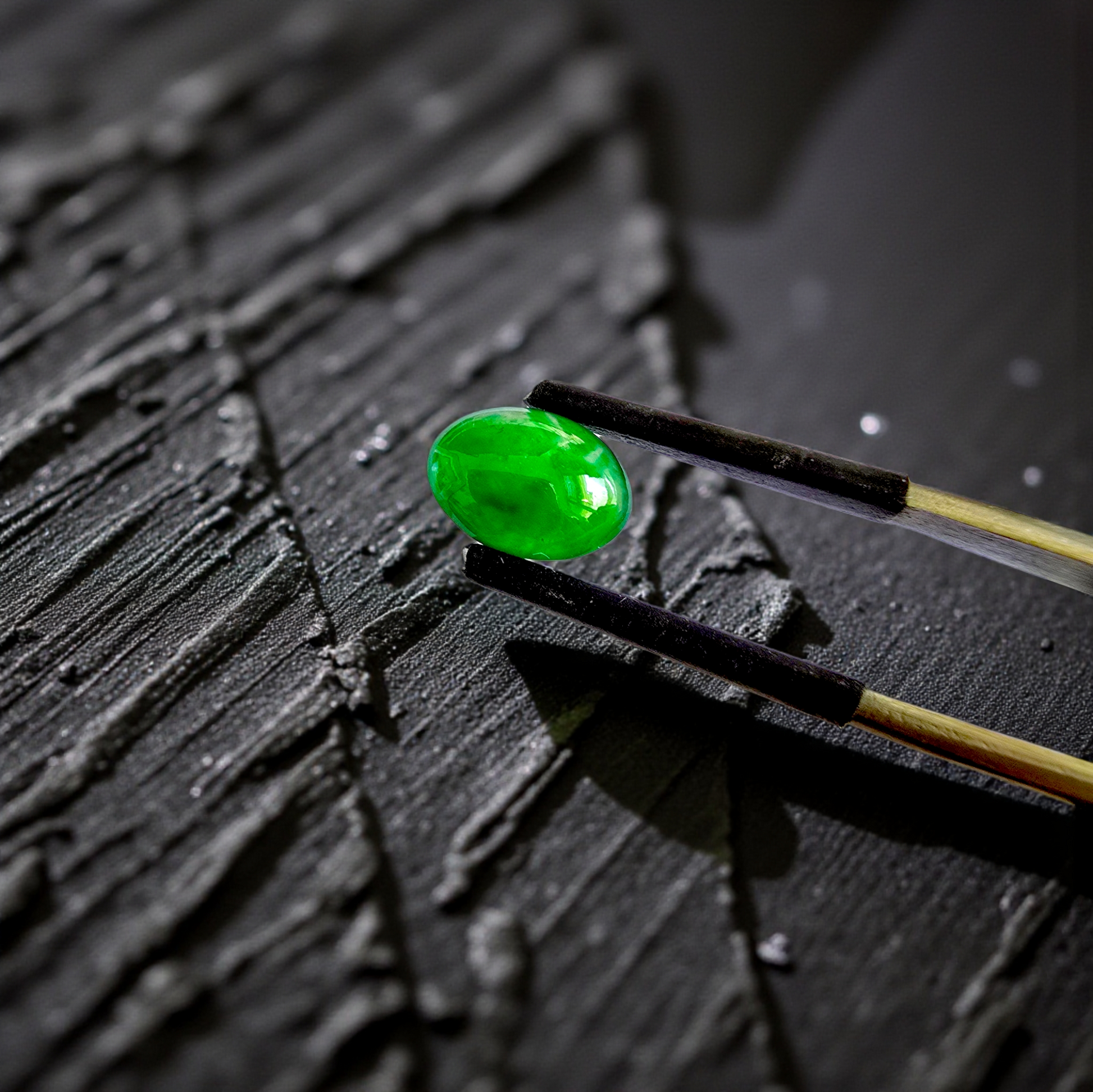 This Gem is a completely natural Burmese A-Jadeite, with no treatments or enhancements. We curate a single stone with high optical properties, Bright, Imperial and Intense Green Hues, Green veins, and excellent translucency where the depth of color and transparency are balanced. The glass-like, watery texture evokes a strong sense of depth and mystery.