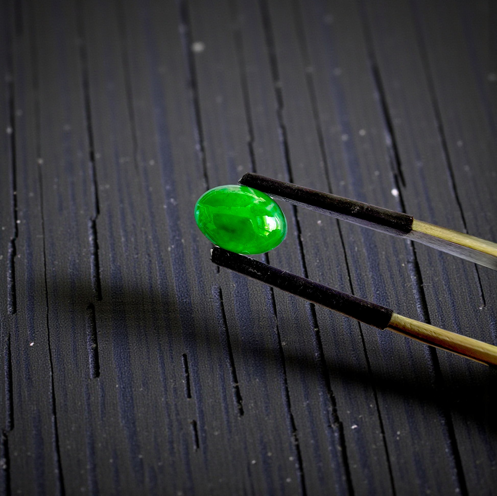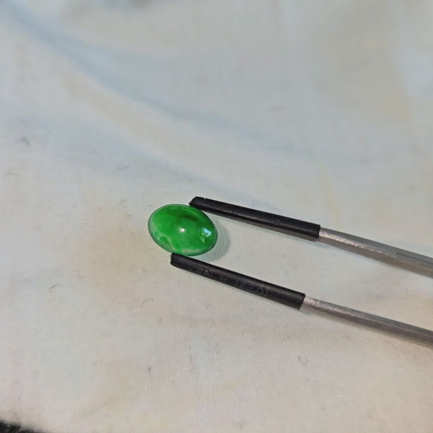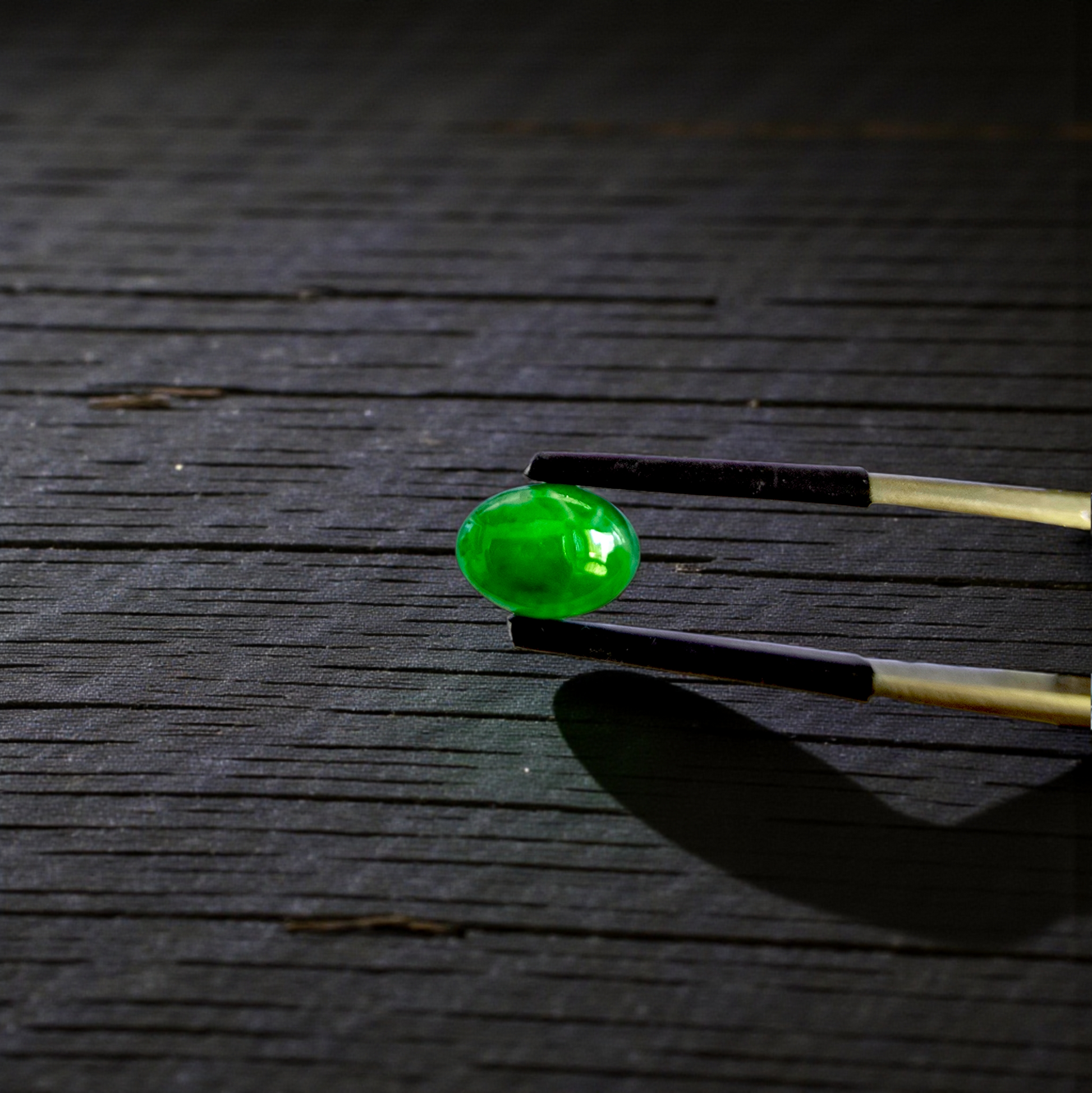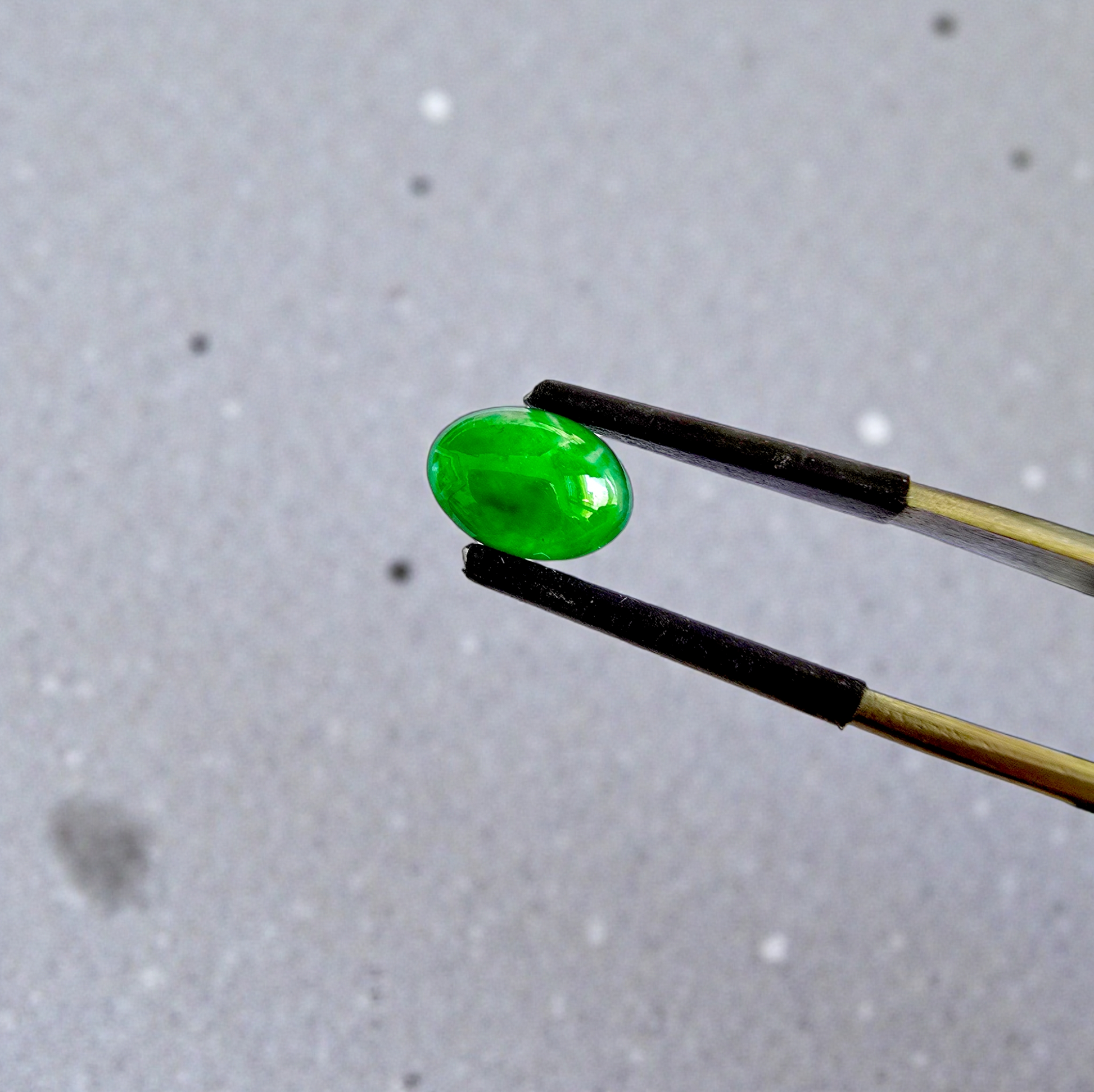 HKJSL Certified MADE IN JAPAN 2.192 cts. Bright Imperial Green Burmese A-Jadeite Oval Cabochon Loose Stone LS30