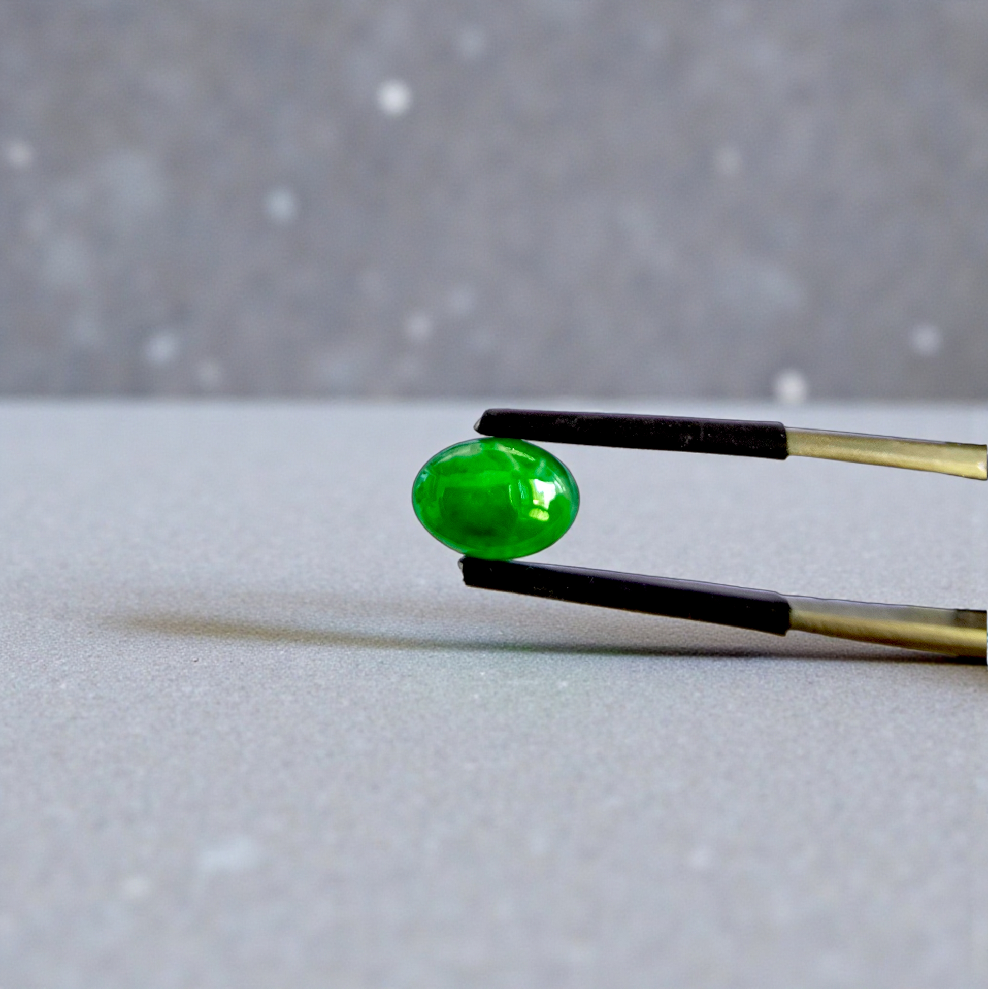 Certified MADE IN JAPAN 2.192 cts. Bright Imperial Green Burmese A-Jadeite Oval Cabochon Loose Stone LS30