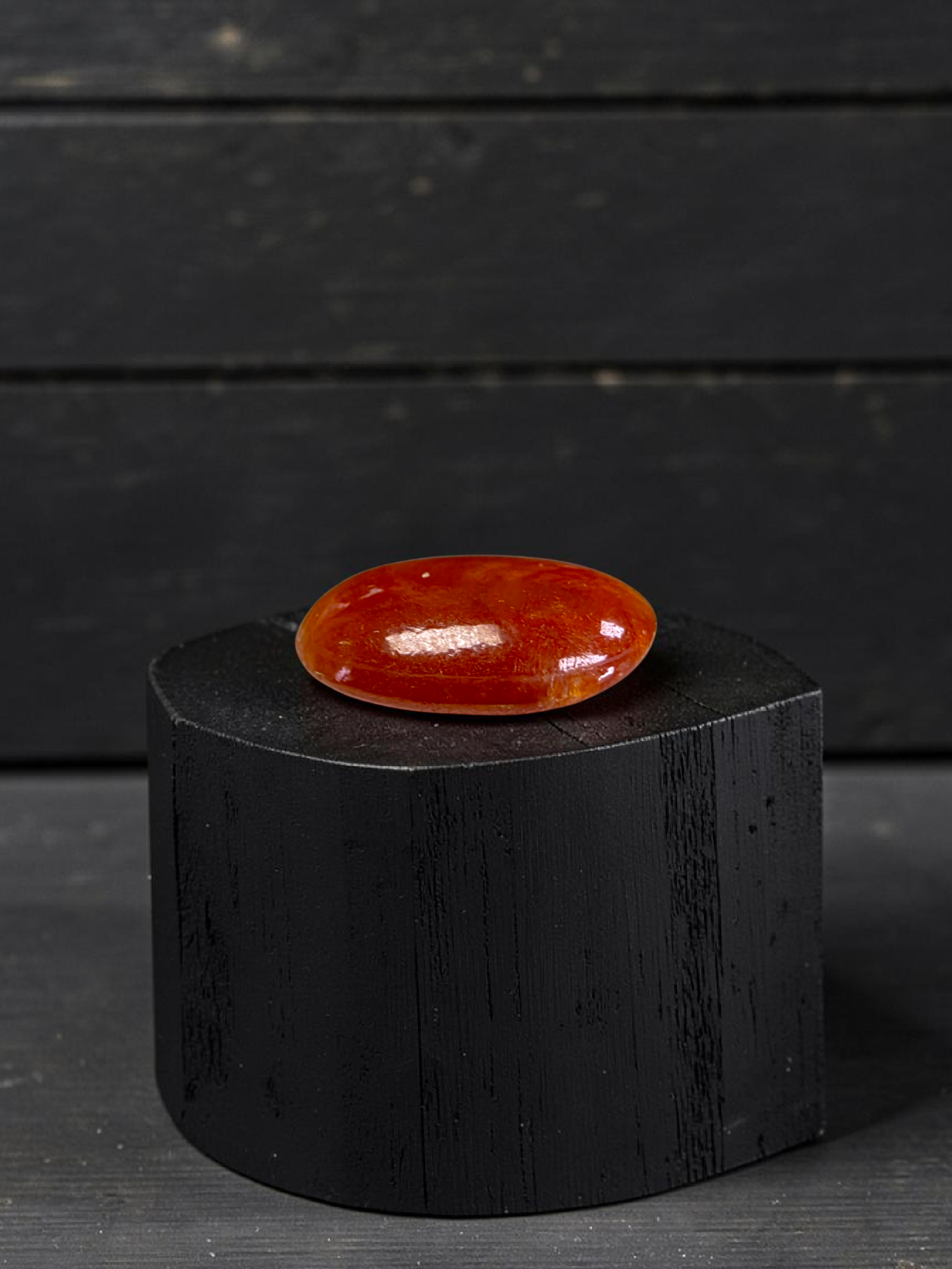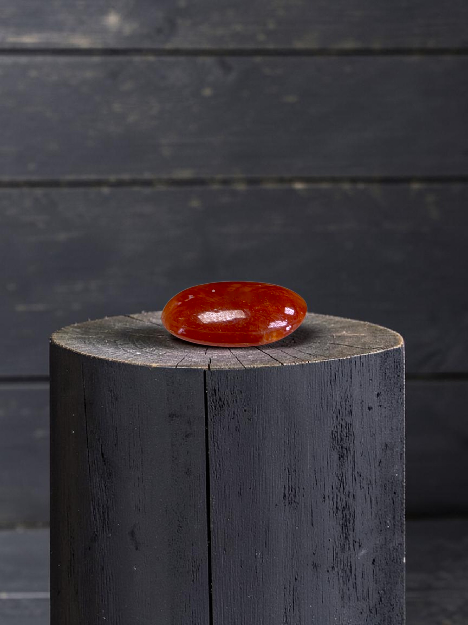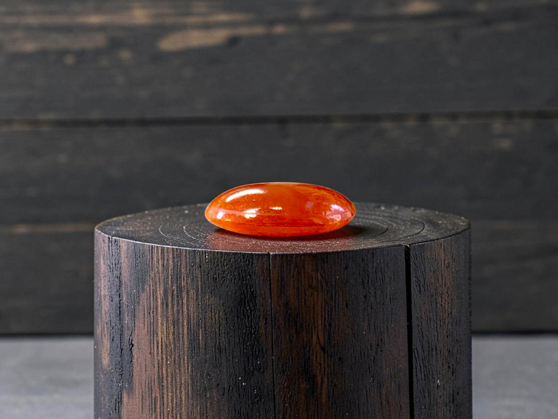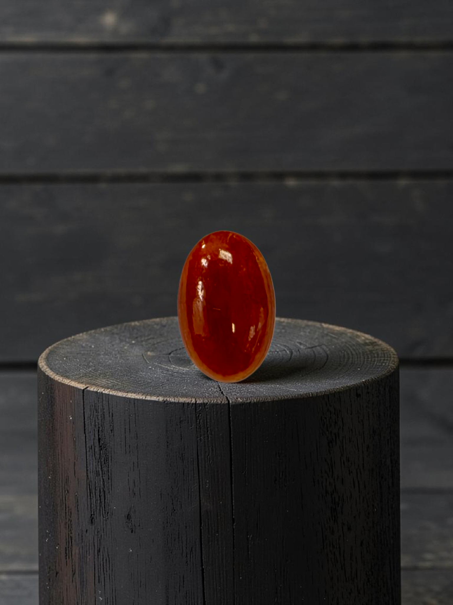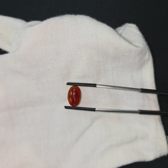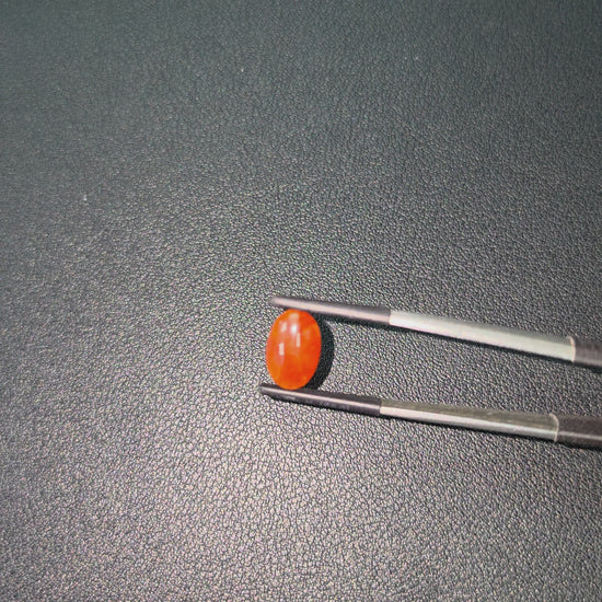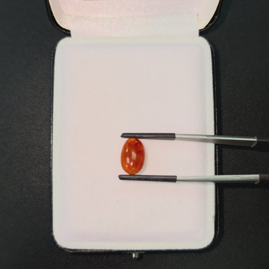 This Gem is a completely natural Burmese A-Jadeite, with no treatments or enhancements. We curate a single stone with high optical properties, Intense Crimson Red Hues, with Orange veins and patches, and Very Good translucency where the depth of color and transparency are balanced. The glass-like, watery texture evokes a strong sense of depth and mystery.