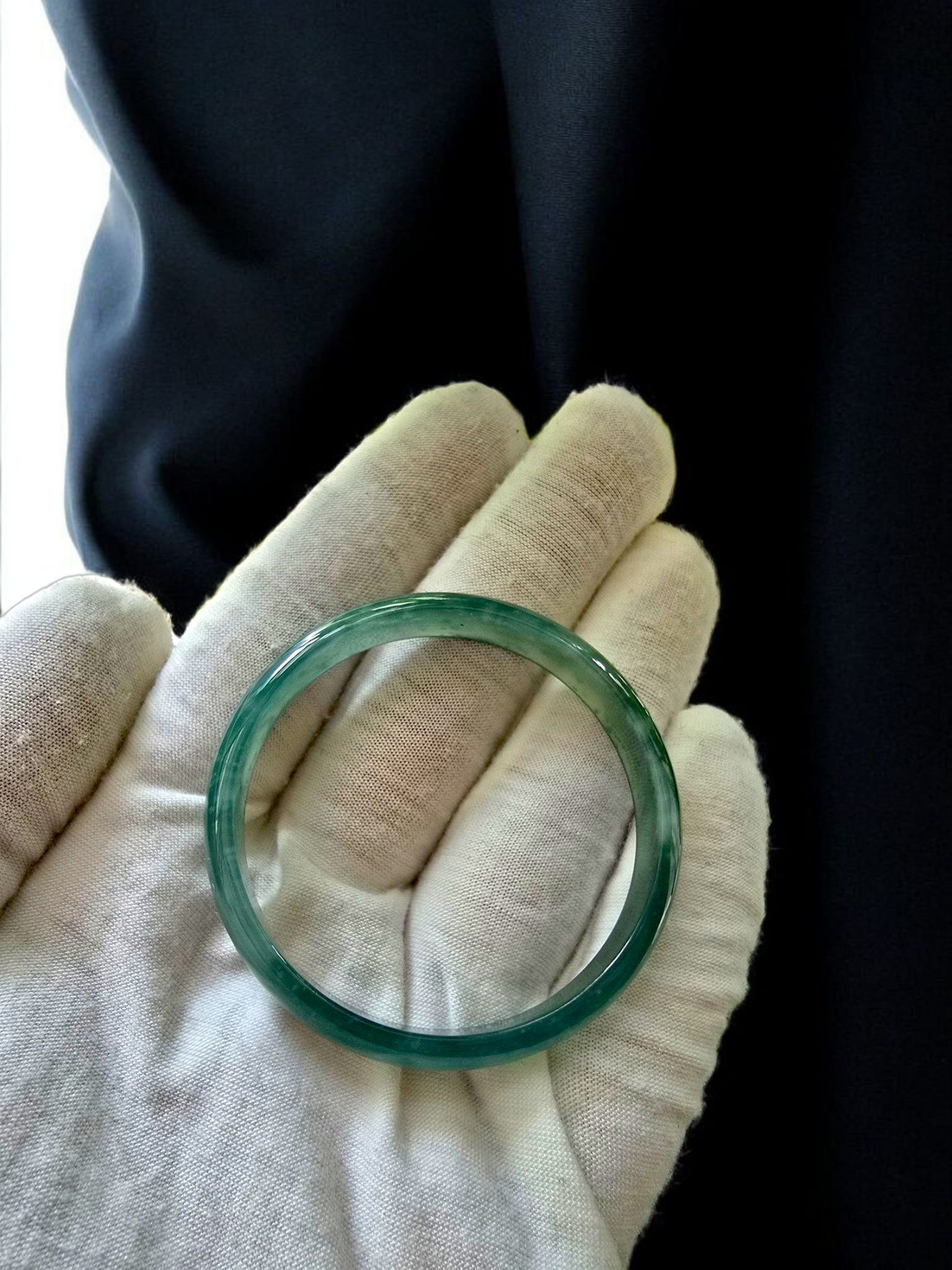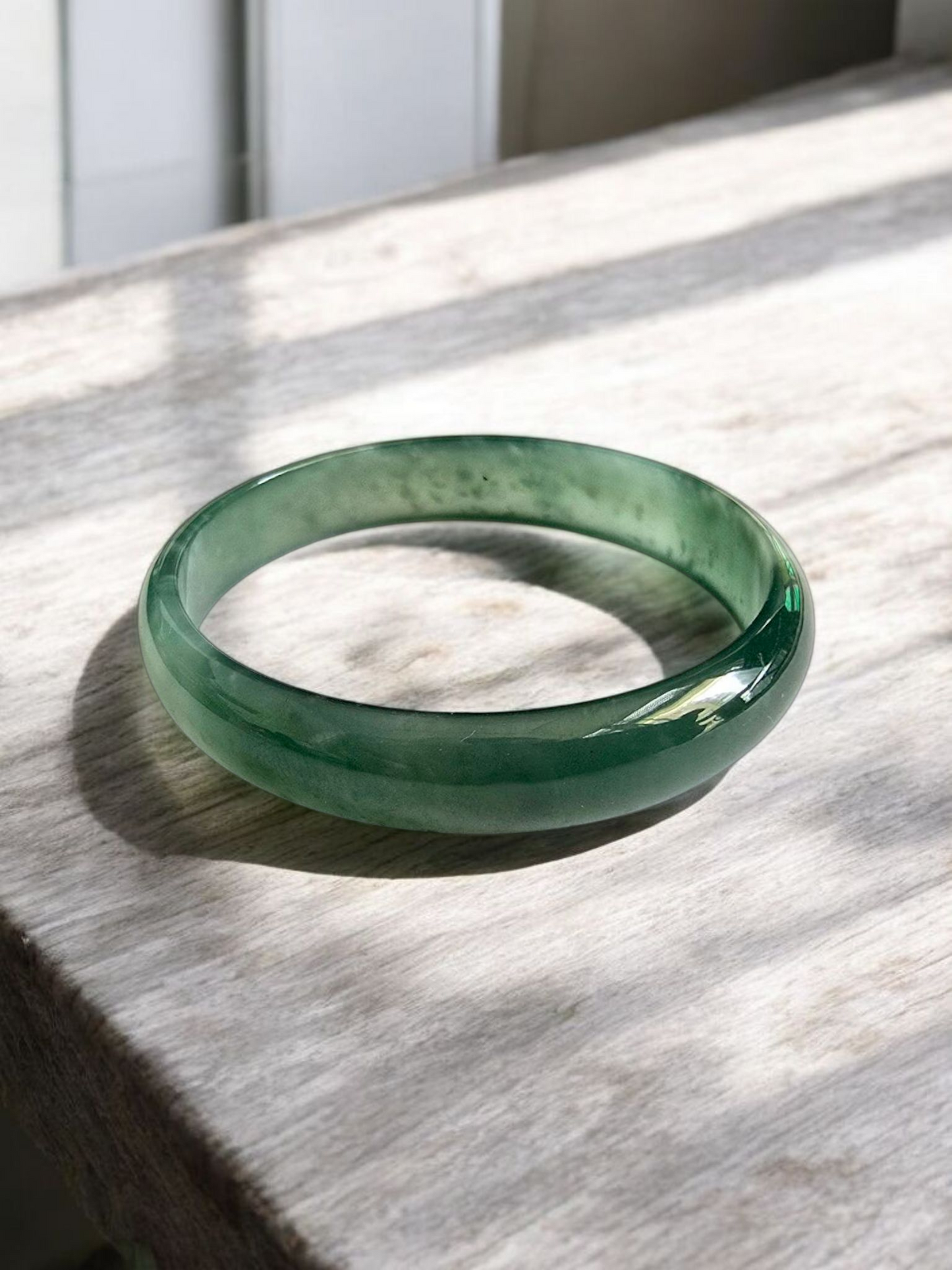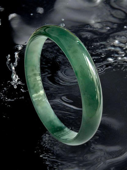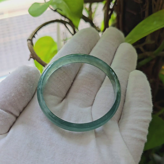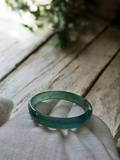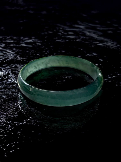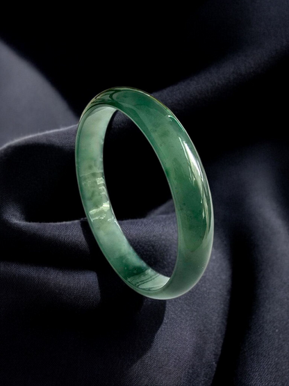Earth's Burmese Deep Bluish-Green A-Jade Jadeite Round Bangle Bracelet - Certified - 08818