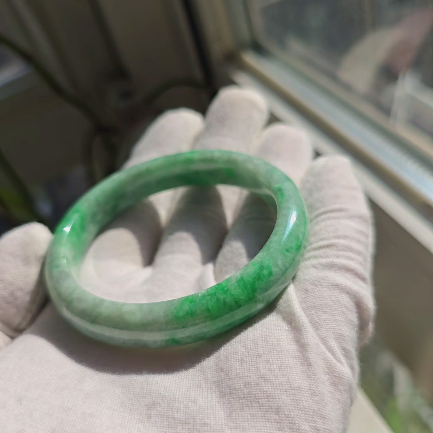 Earth's Burmese Green A-Jade Jadeite Round Bangle Bracelet - MADE IN JAPAN- Certified - 08835