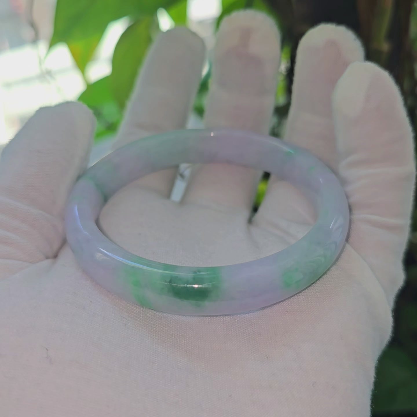 Earth's Burmese Green and Lavender A-Jade Jadeite Round Bangle Bracelet - MADE IN JAPAN- Certified - 08831