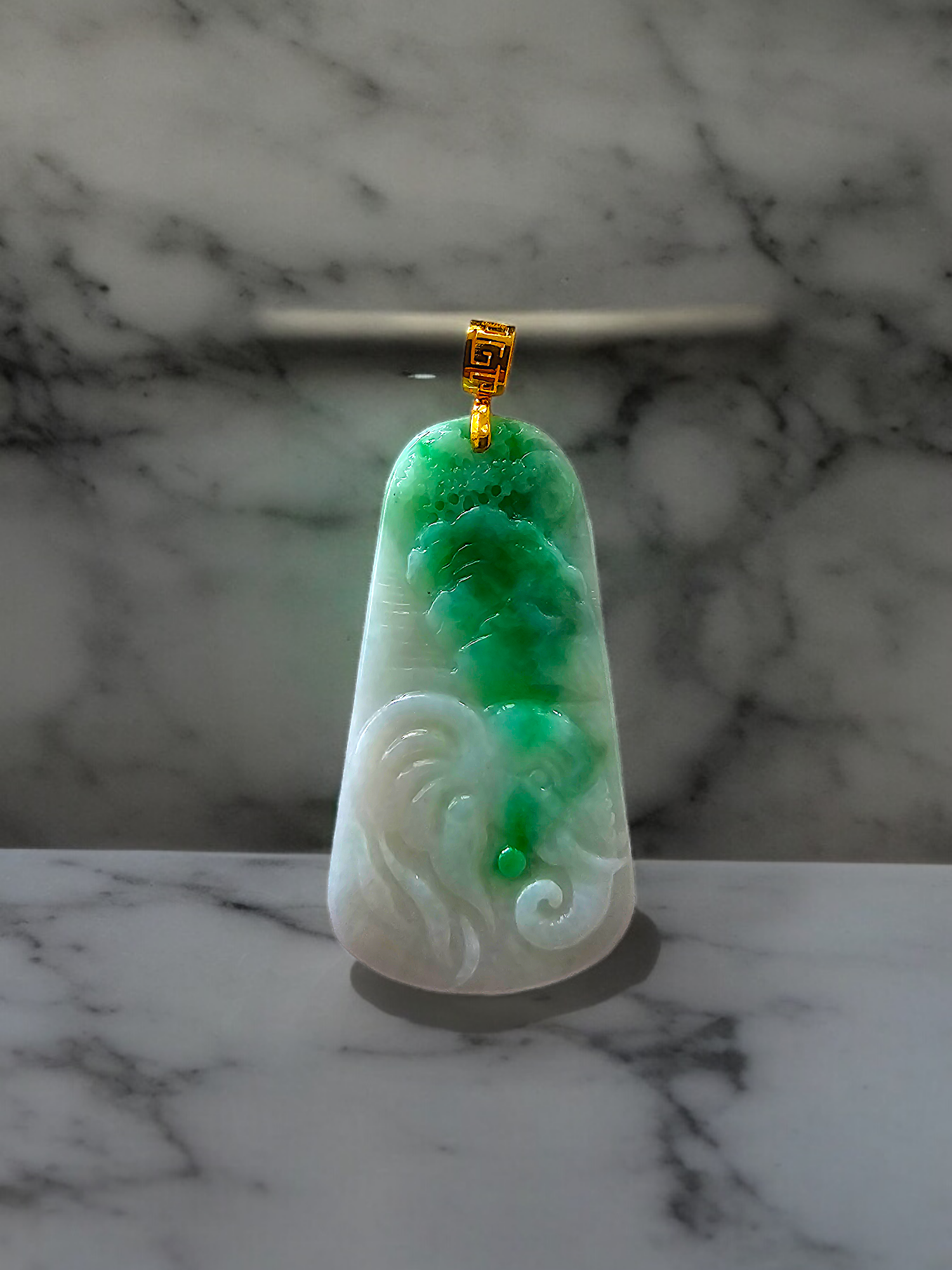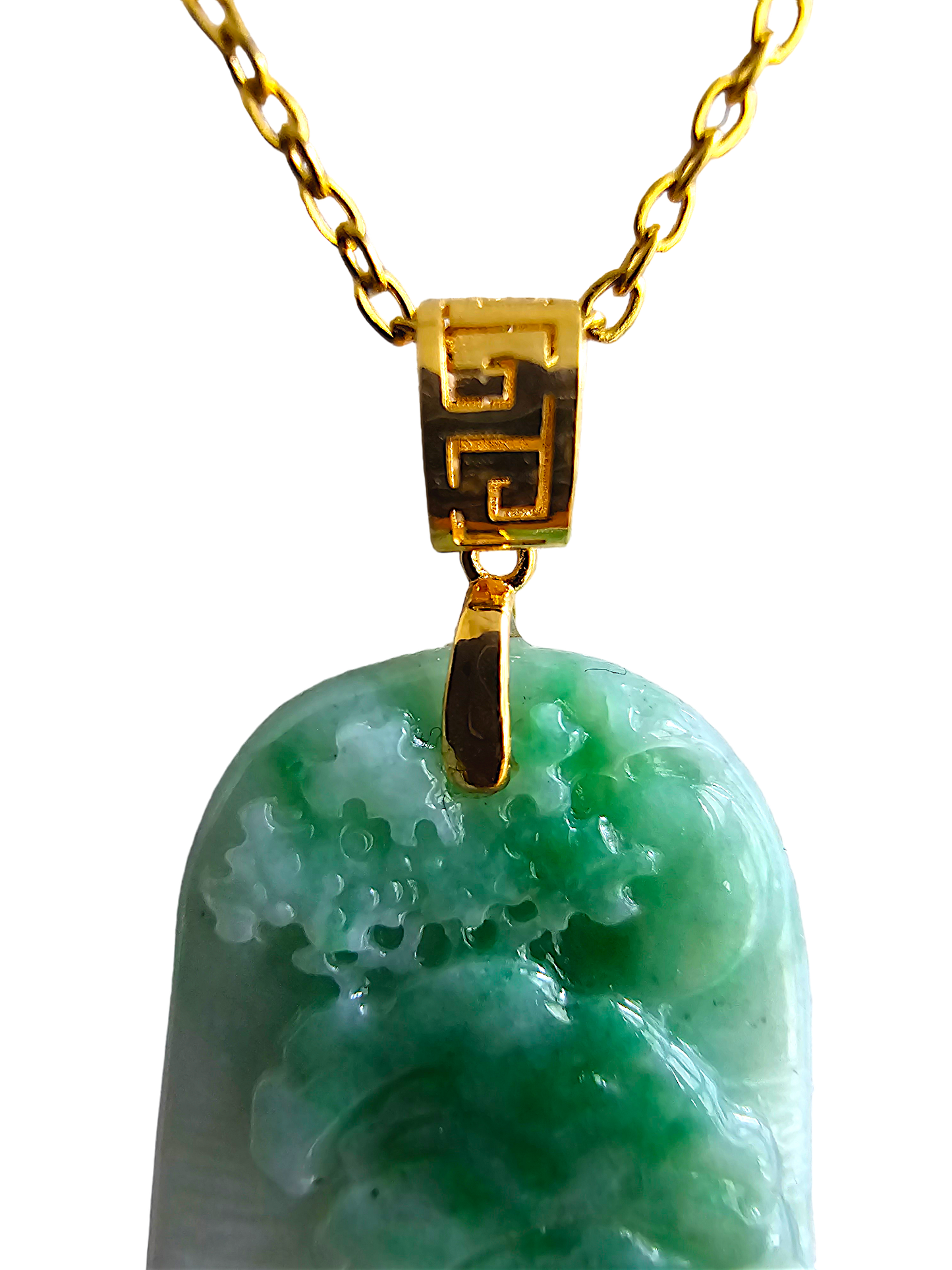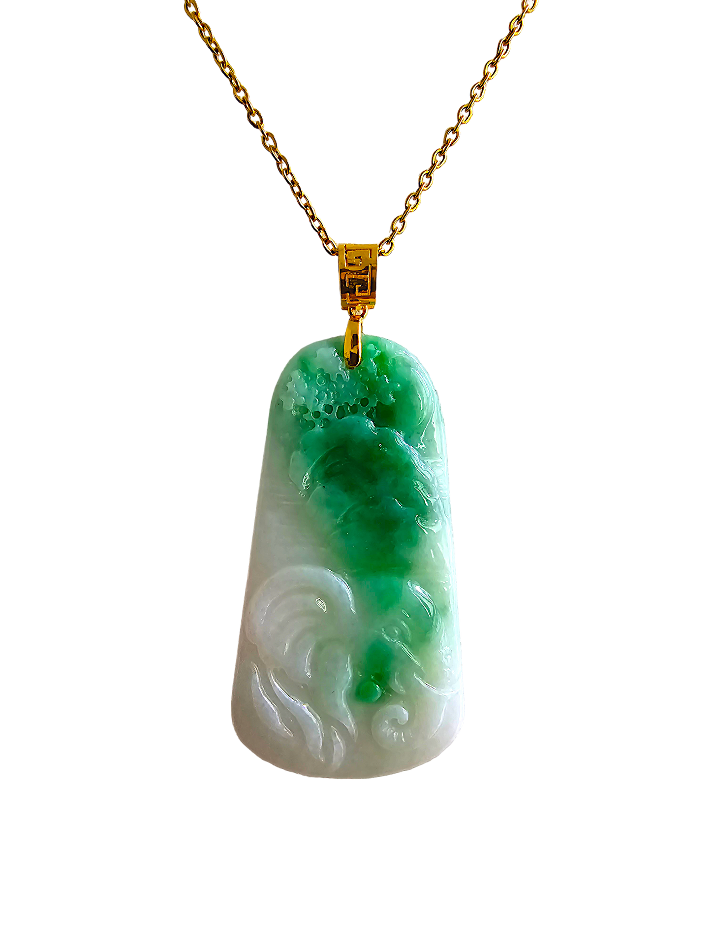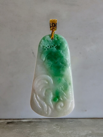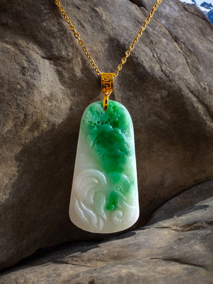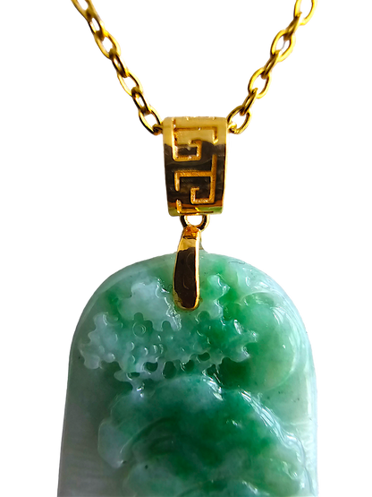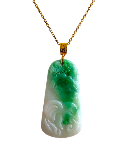 This pendant is made from handpicking the rarest Burmese A-Jadeite, with the best translucency, hues, tones and saturation of green. We use the natural and most desirable imperial green streaks within to create a stunning carved pendant.