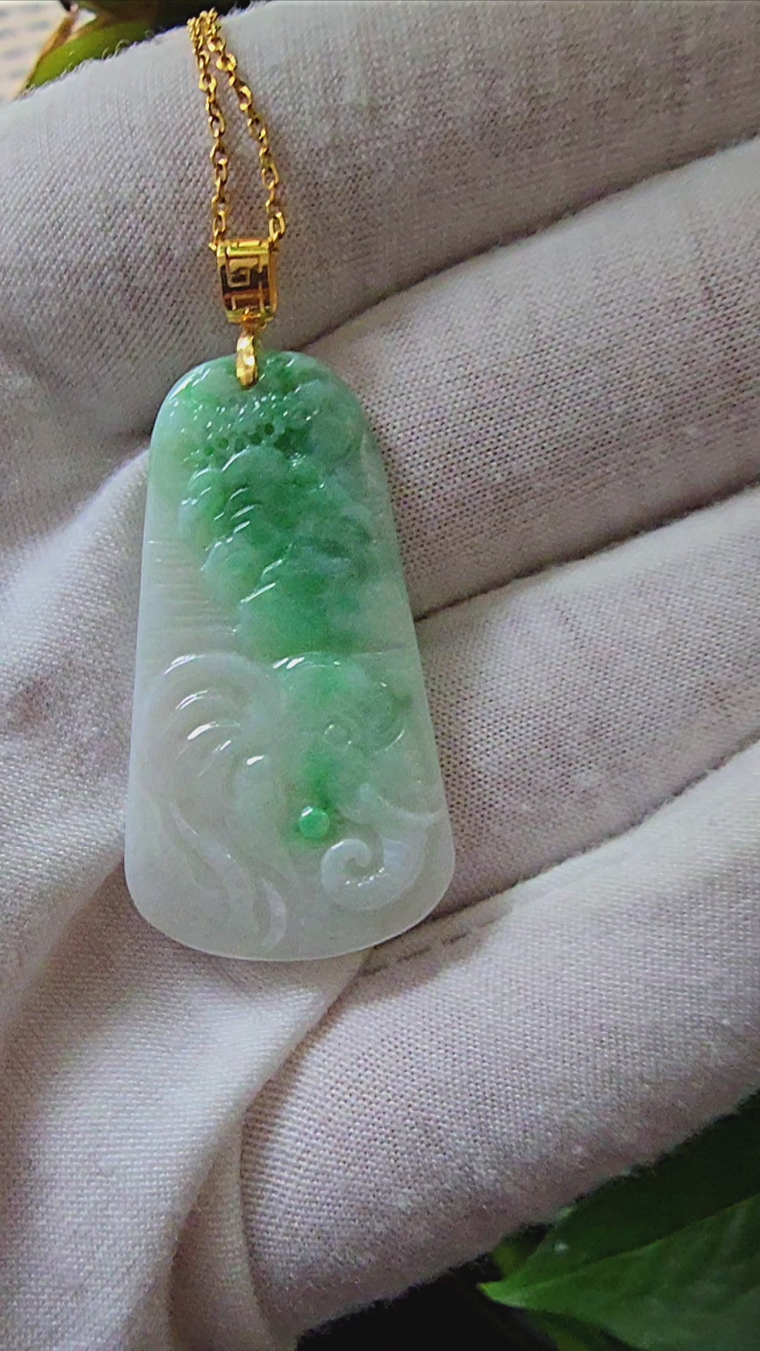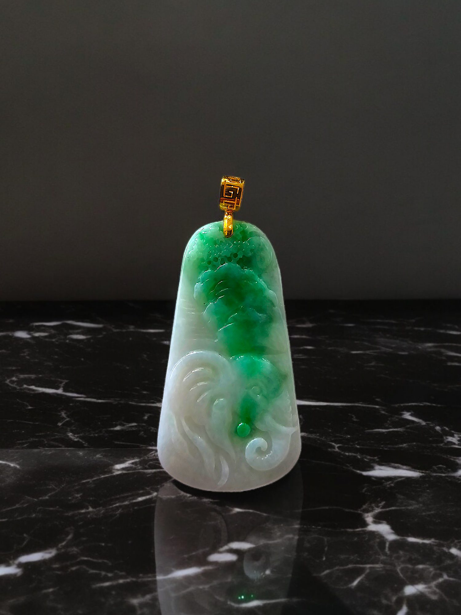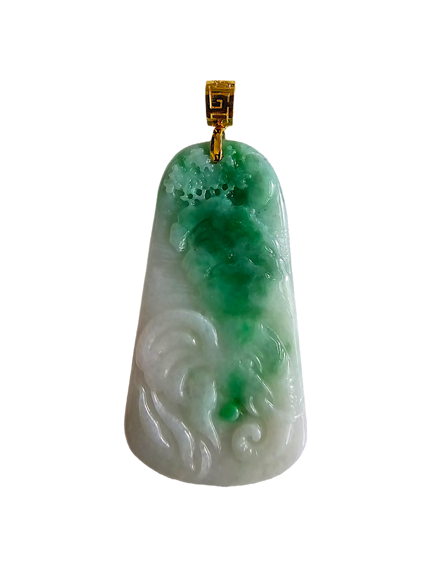 This pendant is made from handpicking the rarest Burmese A-Jadeite, with the best translucency, hues, tones and saturation of green. We use the natural and most desirable imperial green streaks within to create a stunning carved pendant.