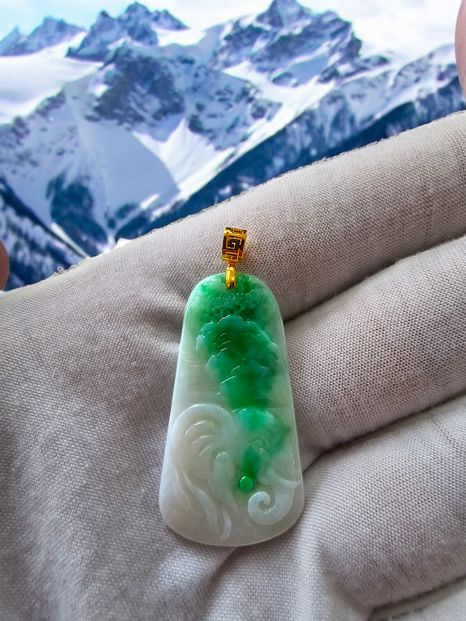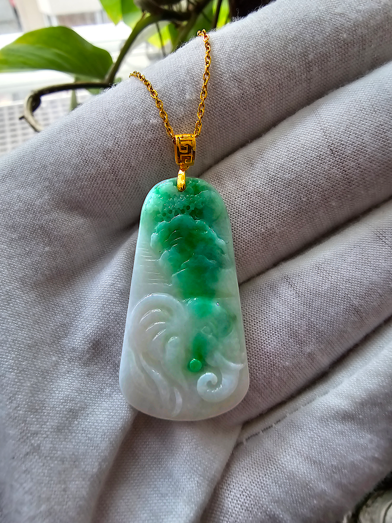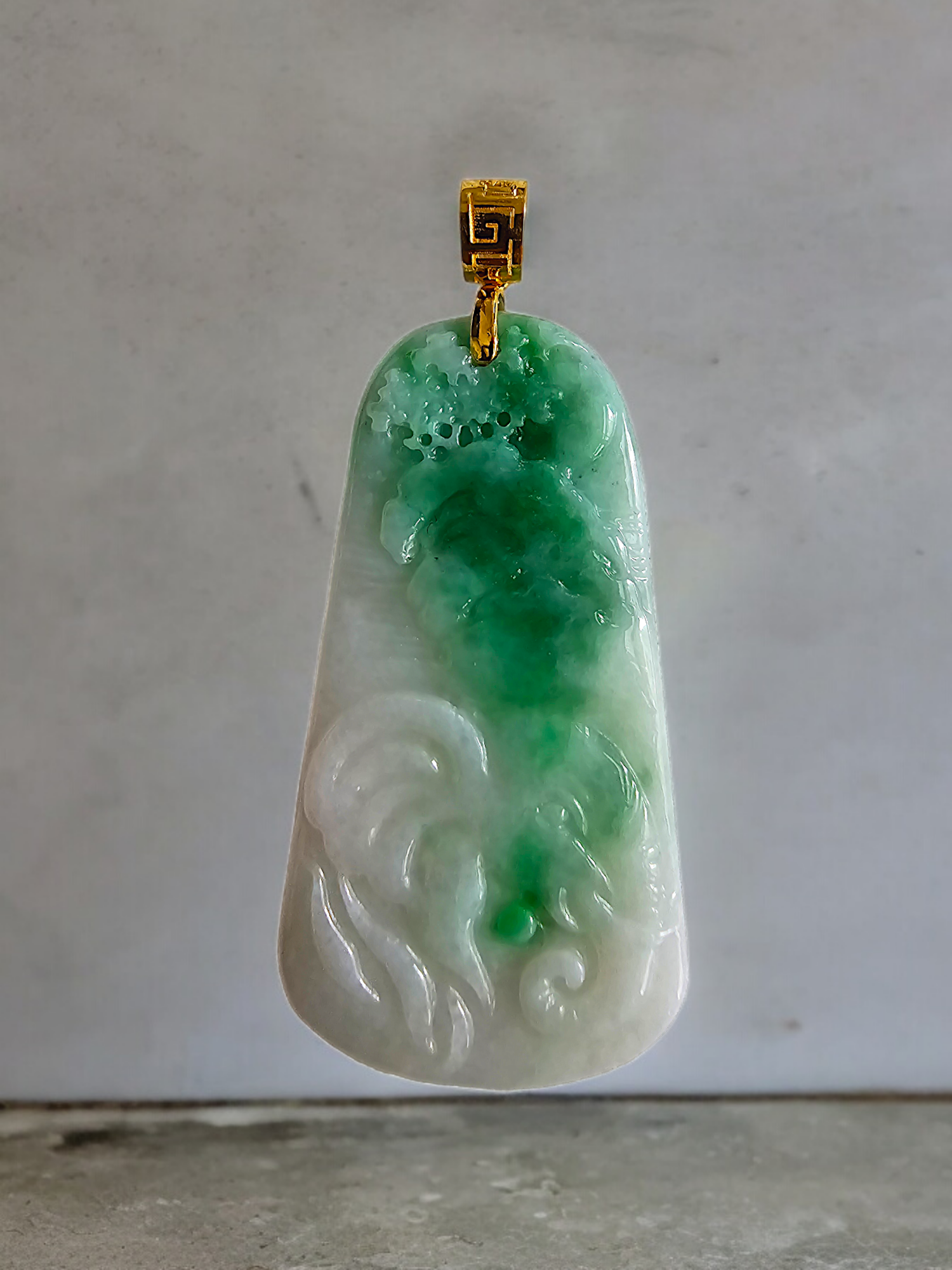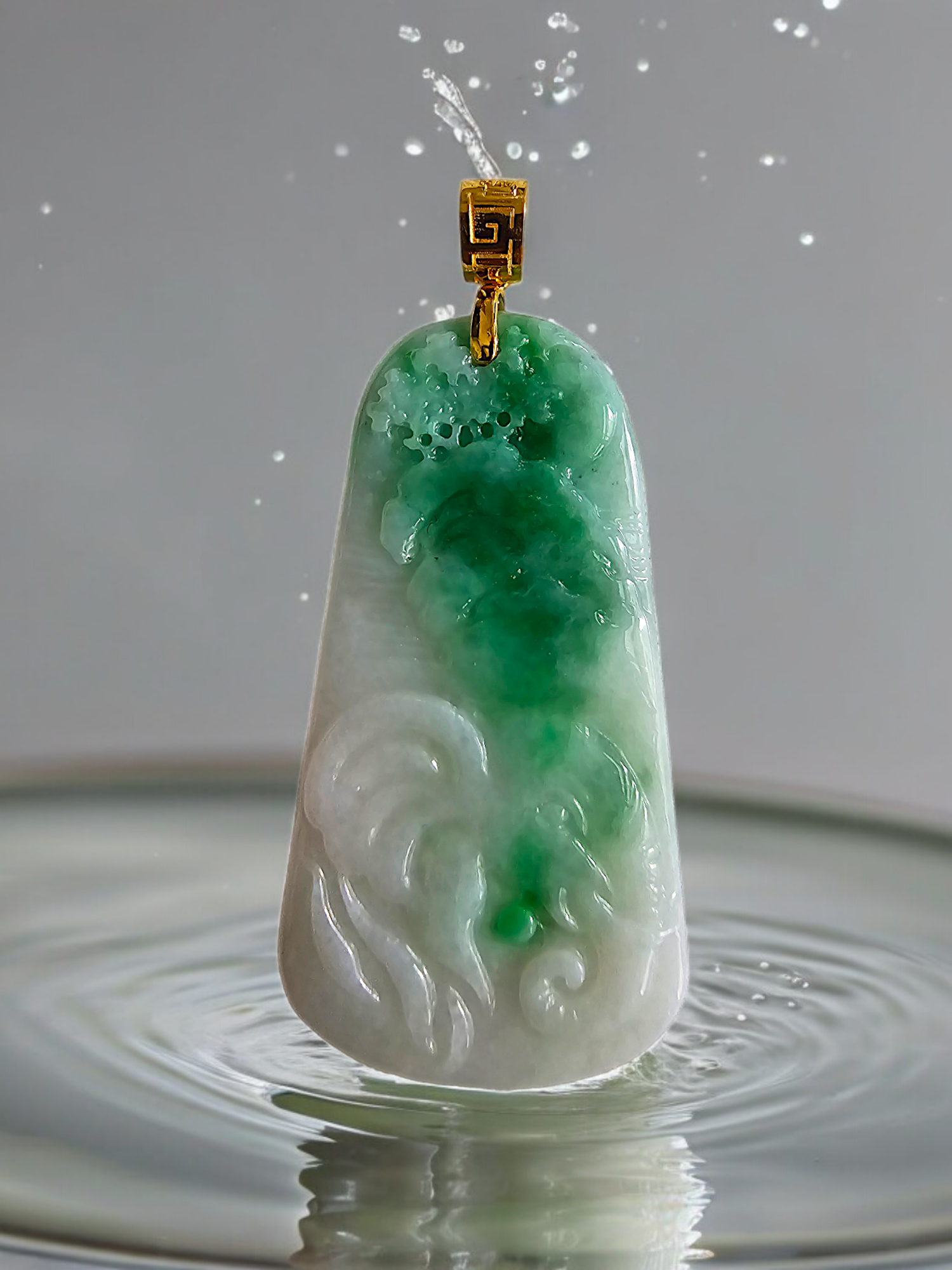 This pendant is made from handpicking the rarest Burmese A-Jadeite, with the best translucency, hues, tones and saturation of green. We use the natural and most desirable imperial green streaks within to create a stunning carved pendant.