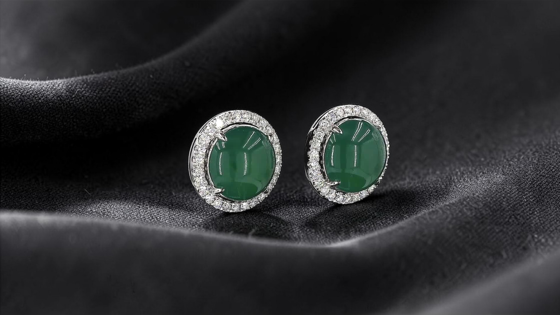 Measurements: Earrings: 16.88 x 16.74 x 19.43 mm (Each), Jade Cabochons: 12.60 x 12.28 x 5.65 mm (Each)