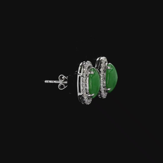 Eternal Sunshine Green Burmese A-Jade Stud Earrings with Natural White VVS Diamonds Halo and 18K White Gold - Certified - V4