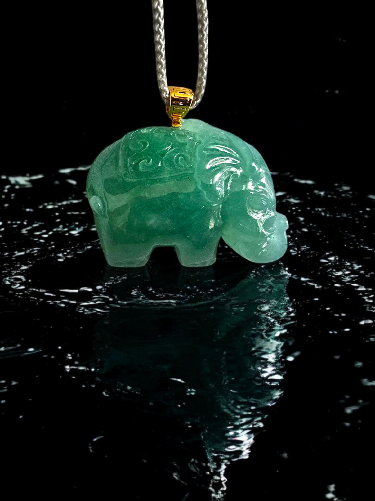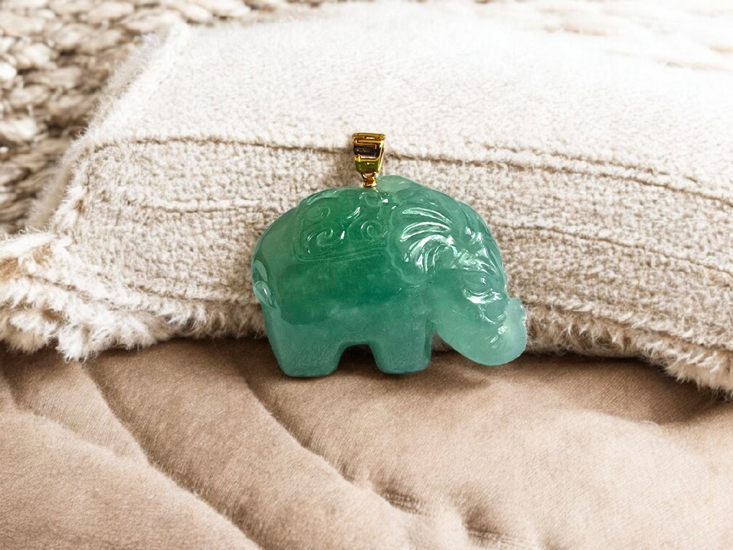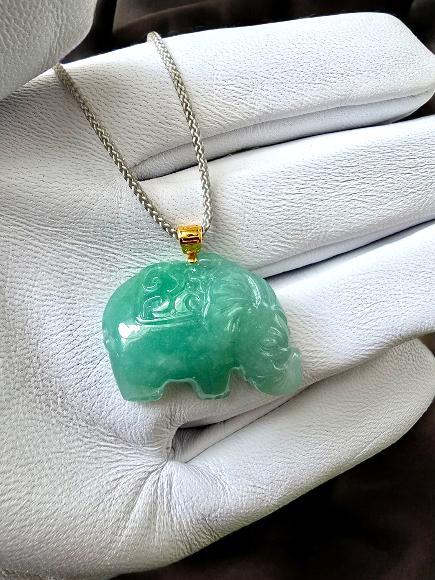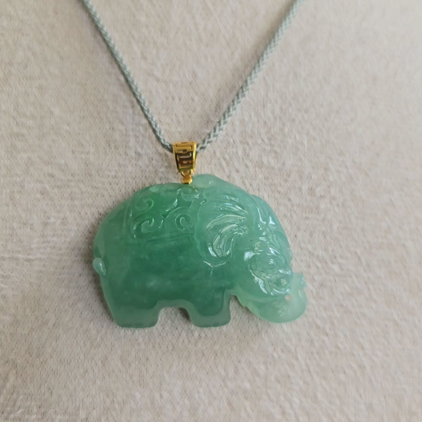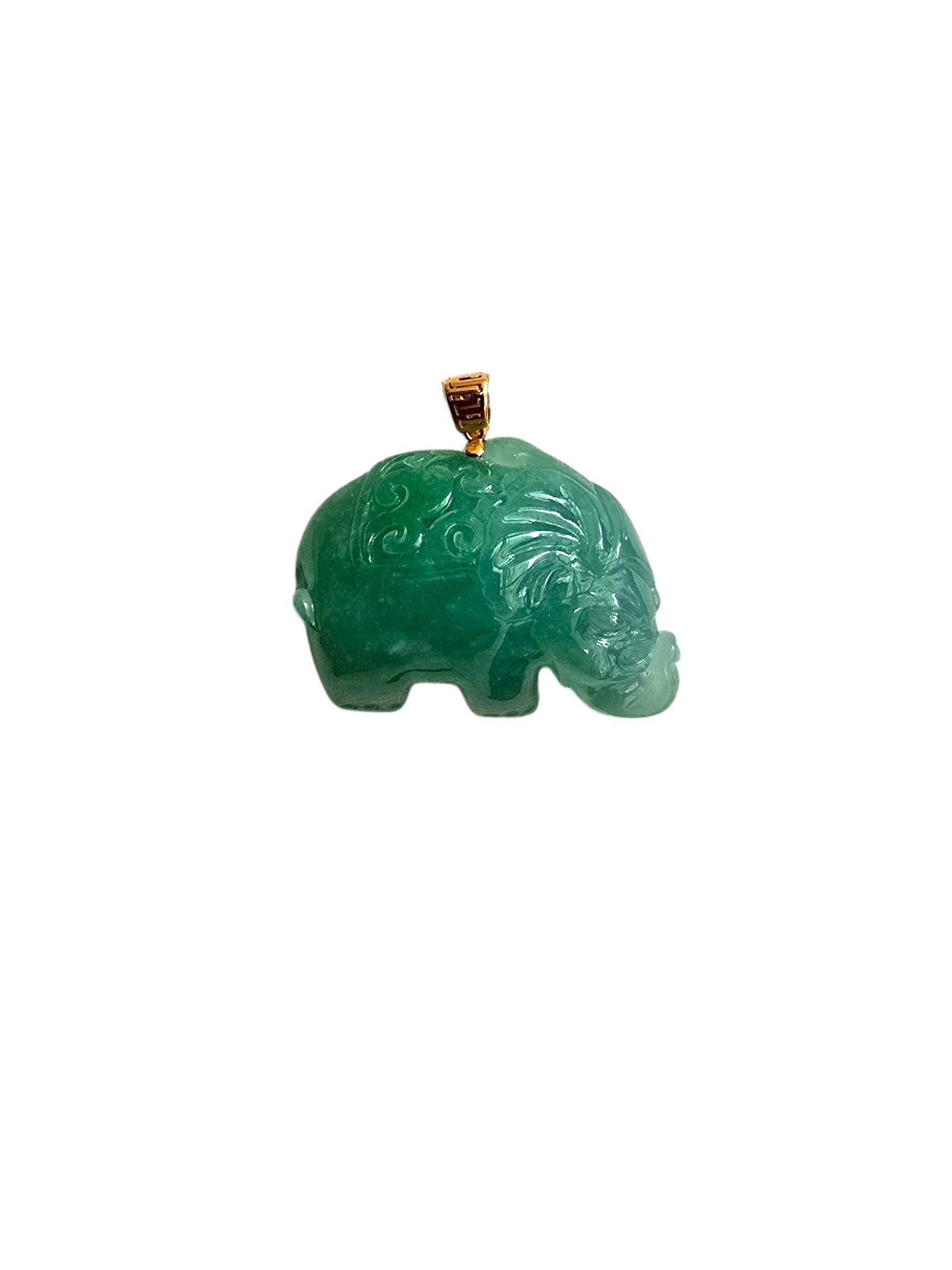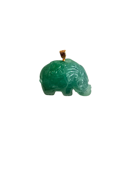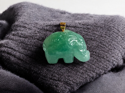 Hanako the Elephant Burmese Green A-Jadeite Jade Pendant with solid 18K Yellow Gold - Certified
