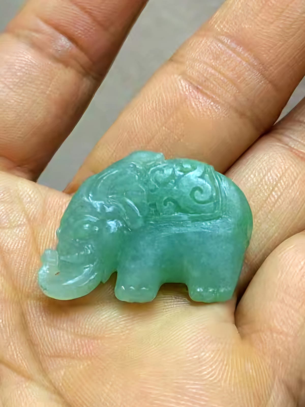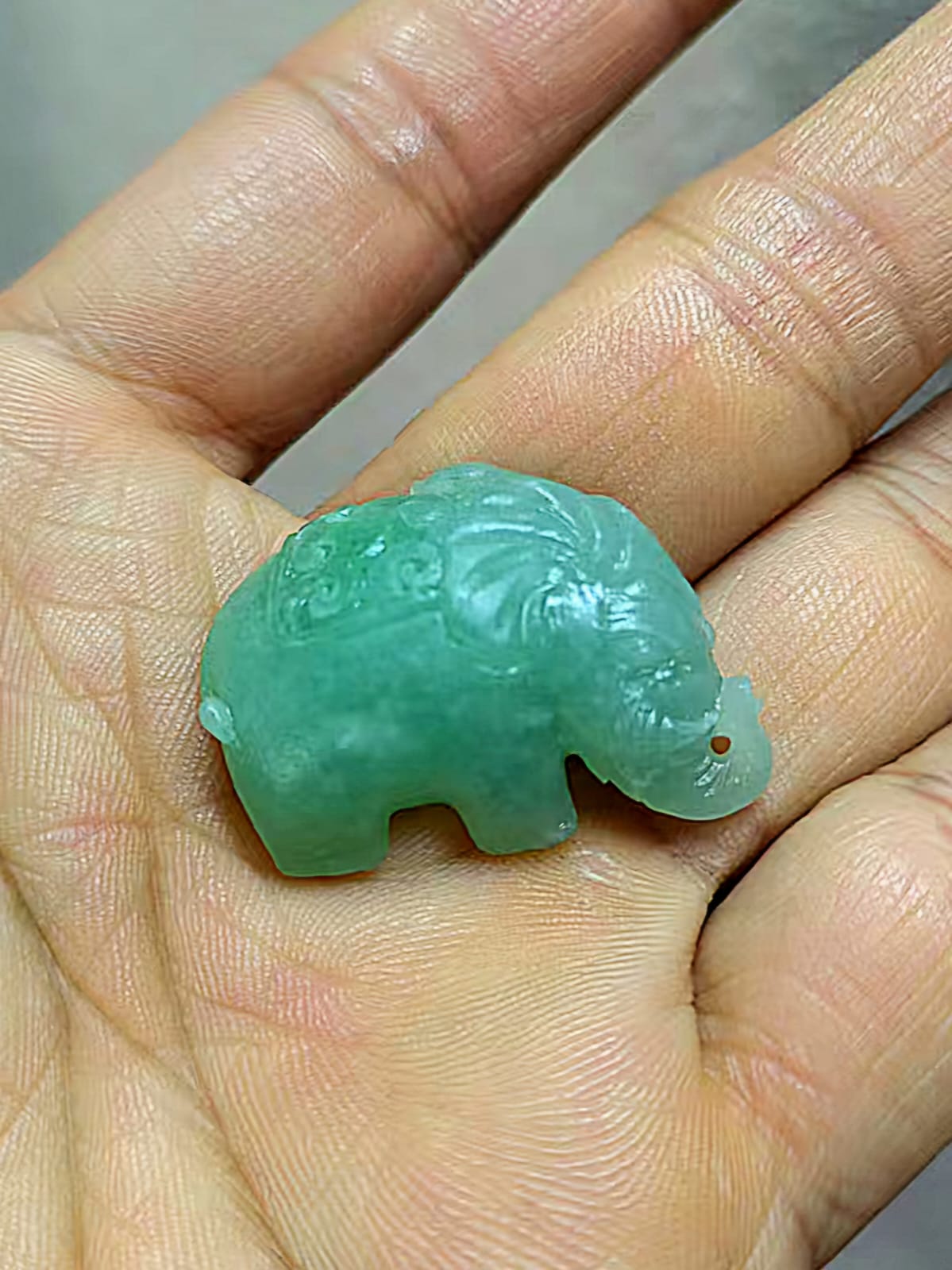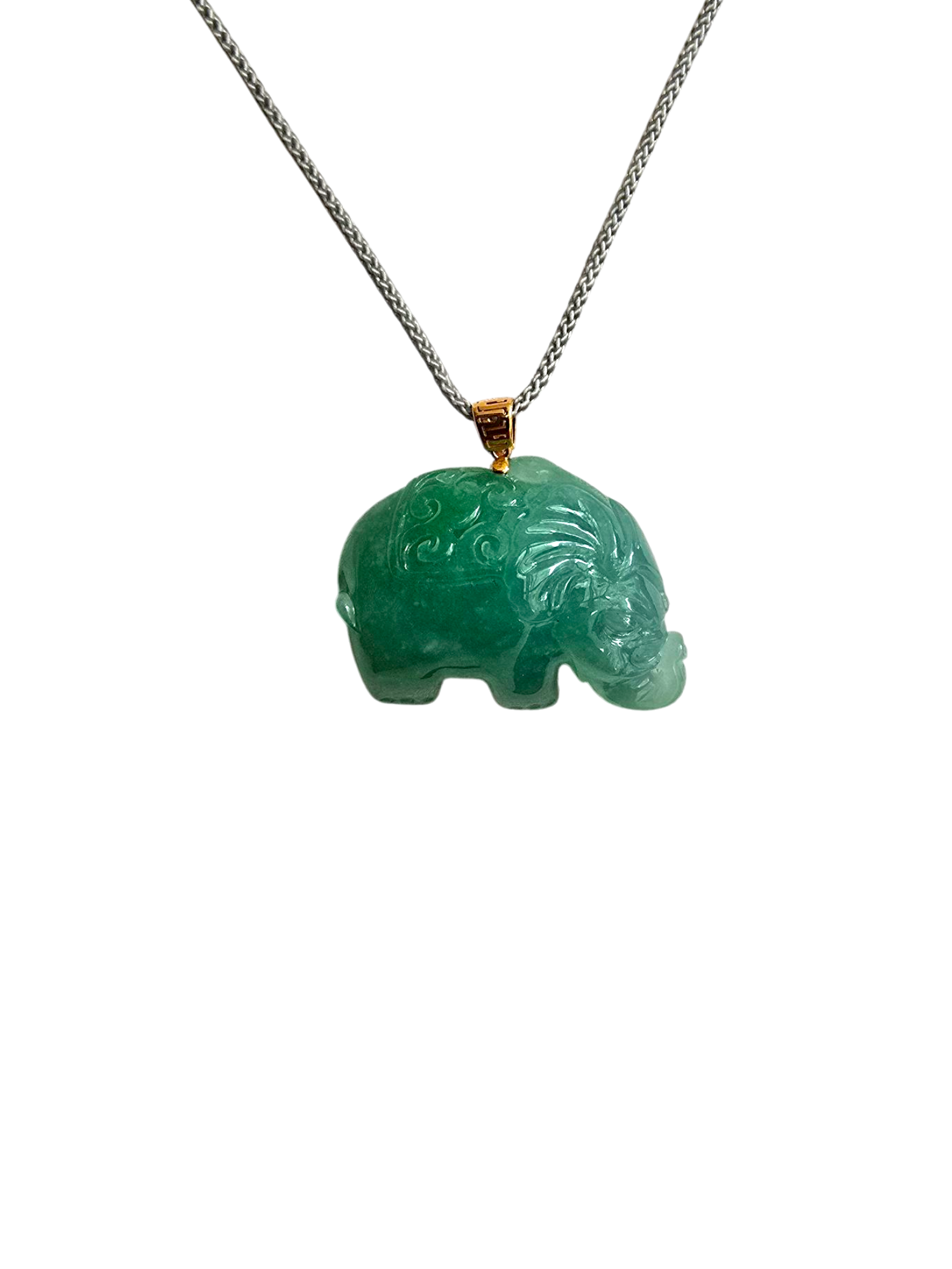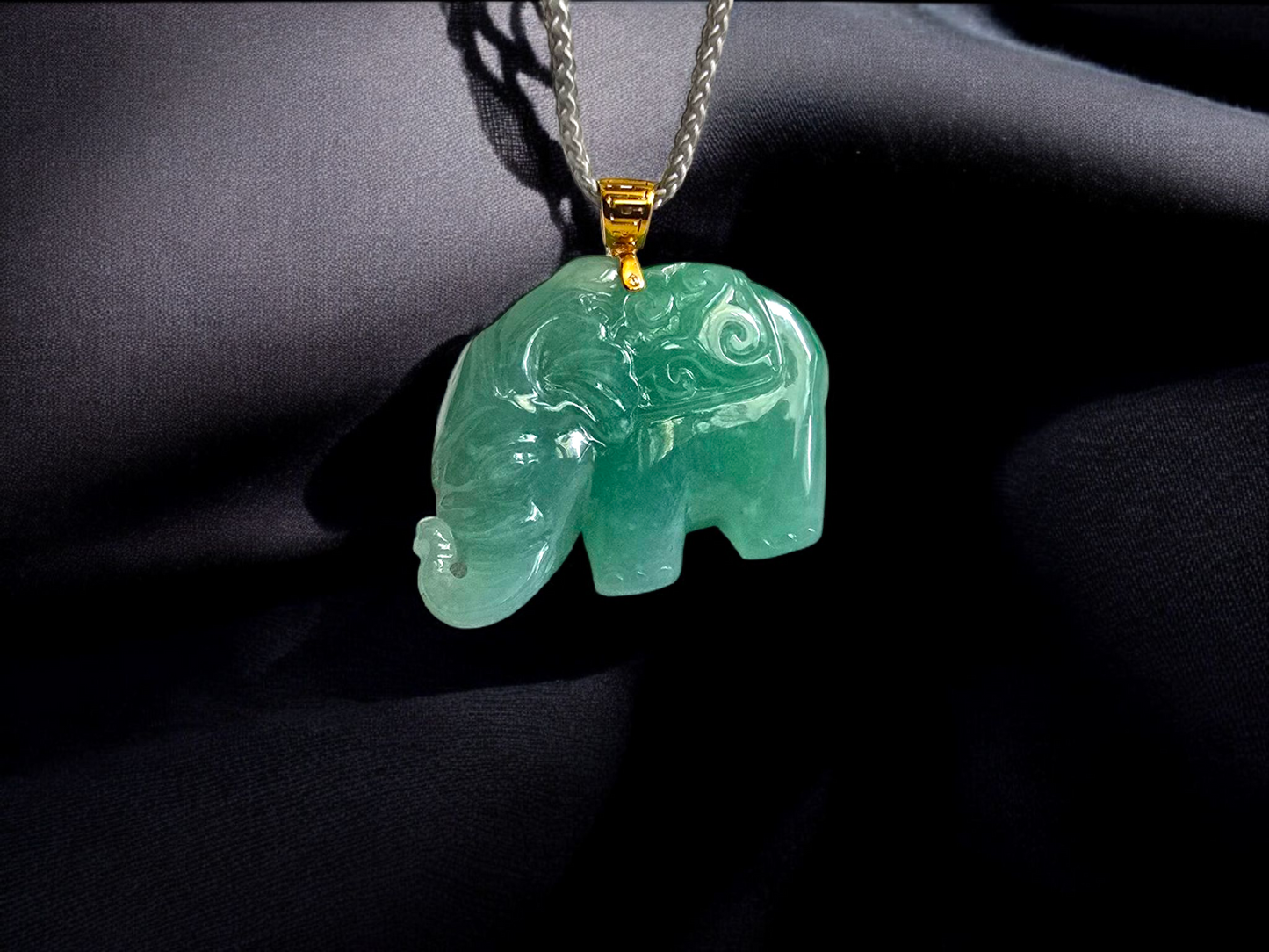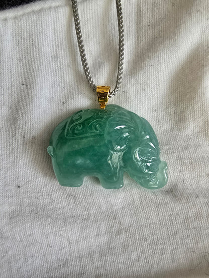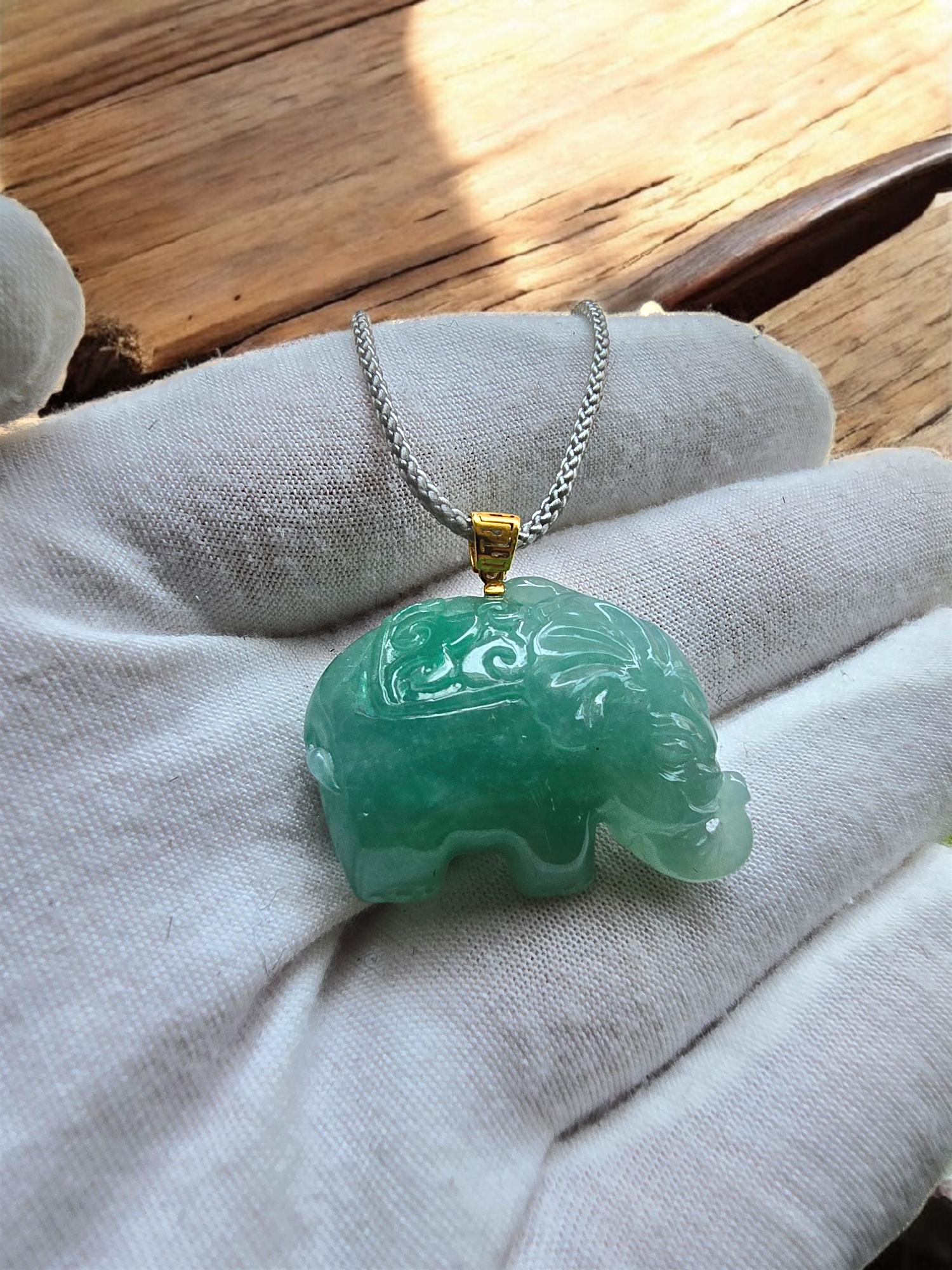 Hanako the Elephant Burmese Green A-Jadeite Jade Pendant with solid 18K Yellow Gold - Certified