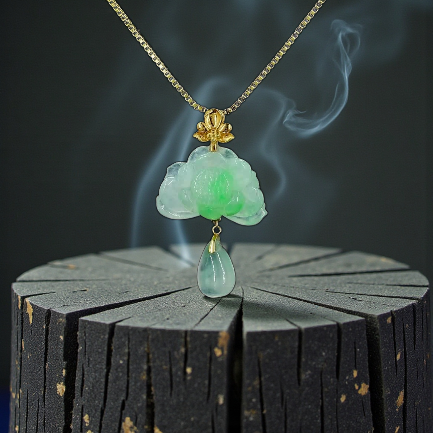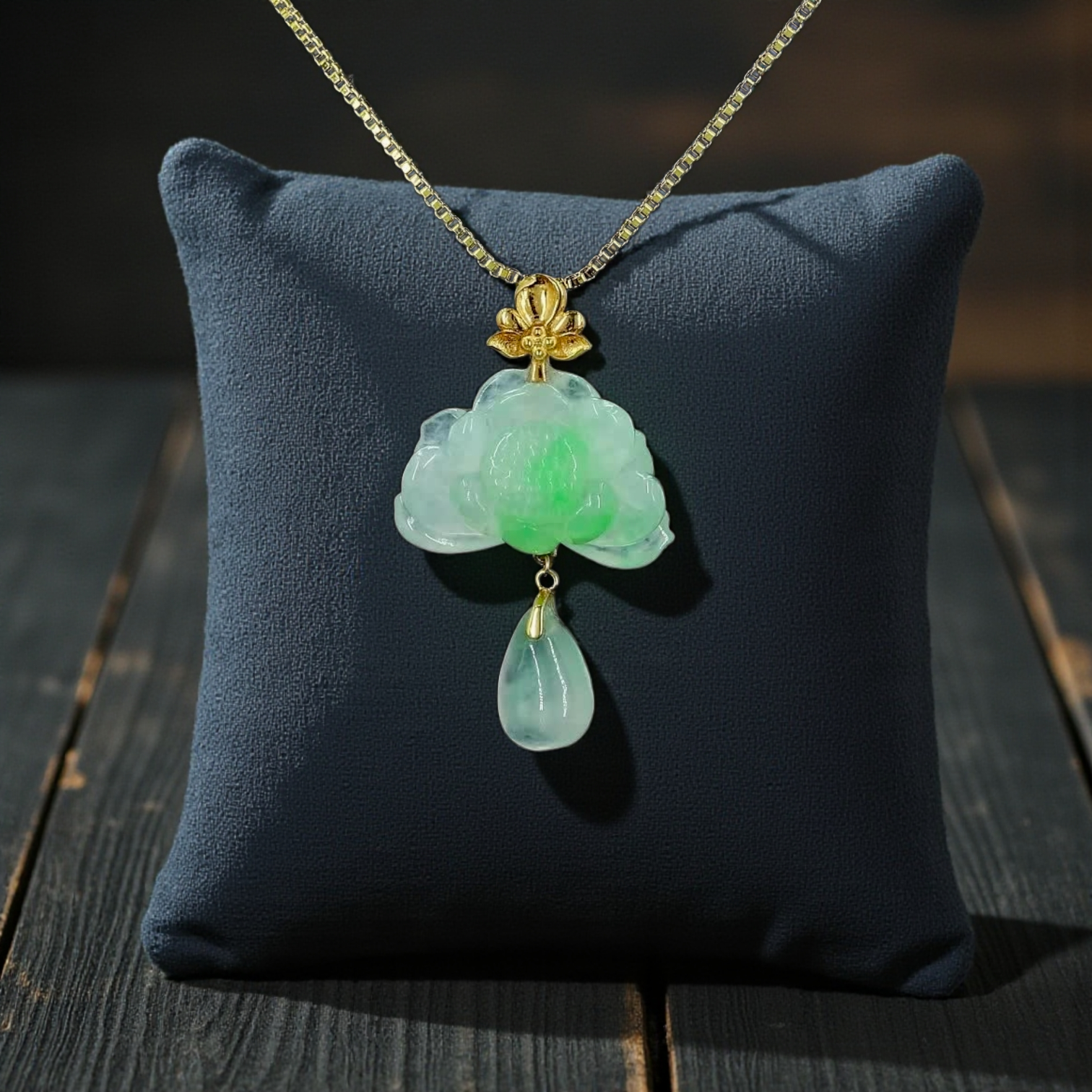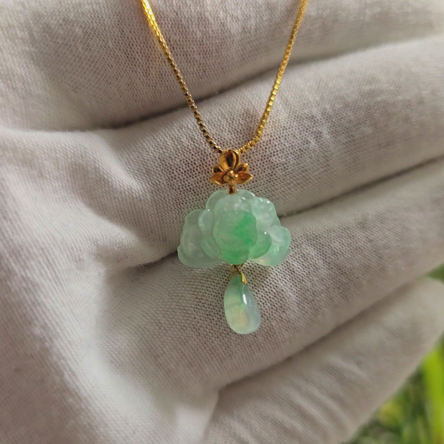 Hasu Flower Dangling Burmese A-Jadeite Pendant (with 18K Yellow Gold) - Certified