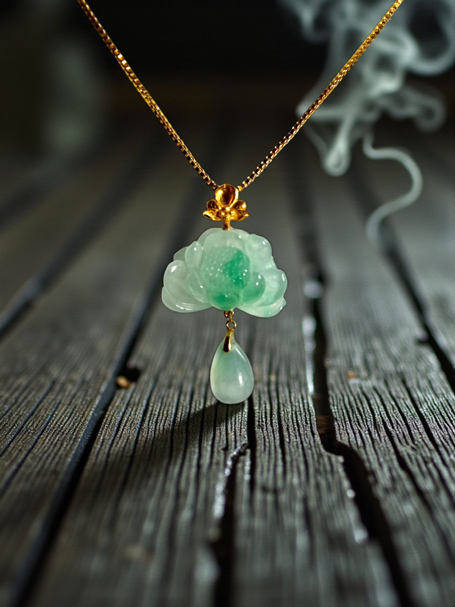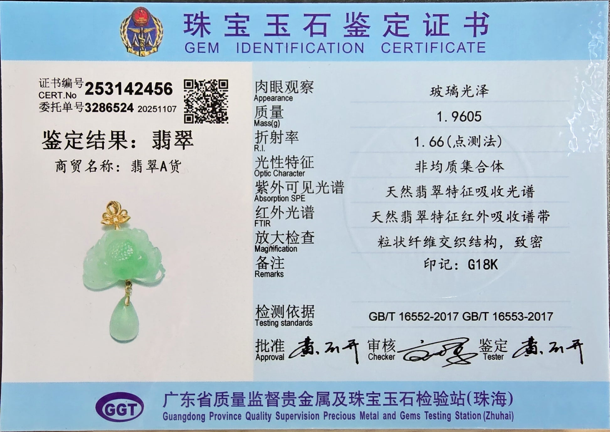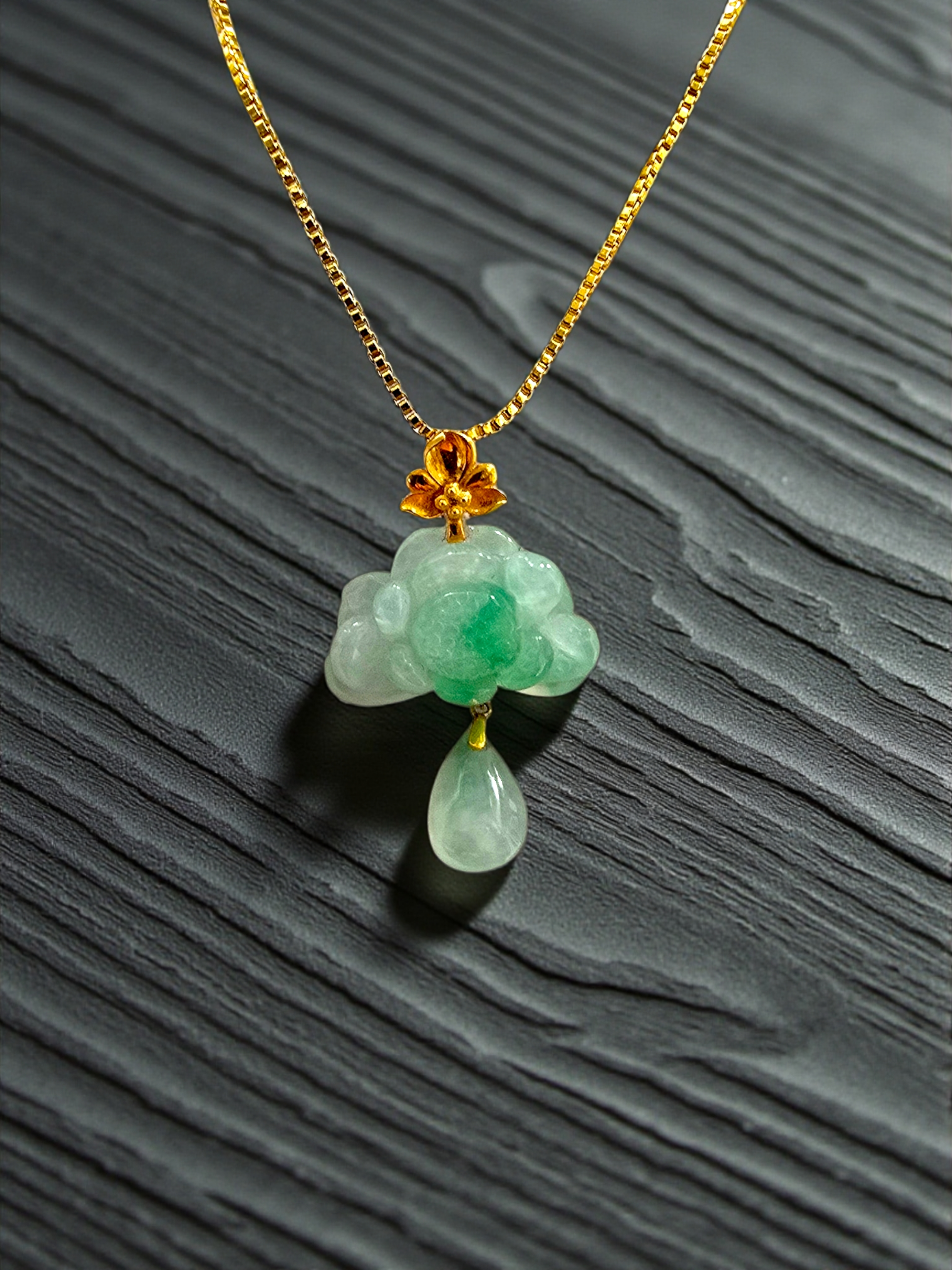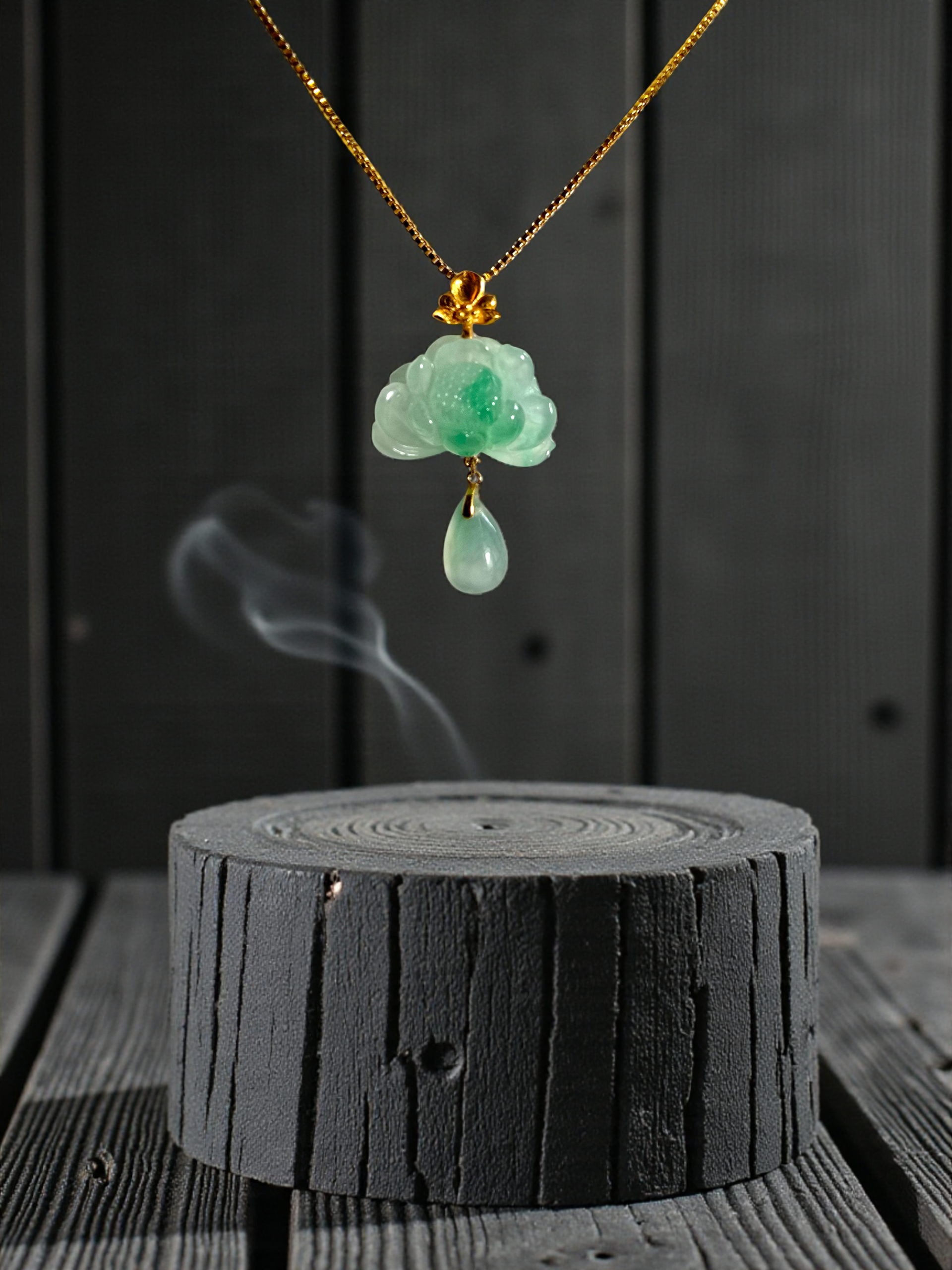 Hasu Flower Dangling Burmese A-Jadeite Pendant (with 18K Yellow Gold) - Certified