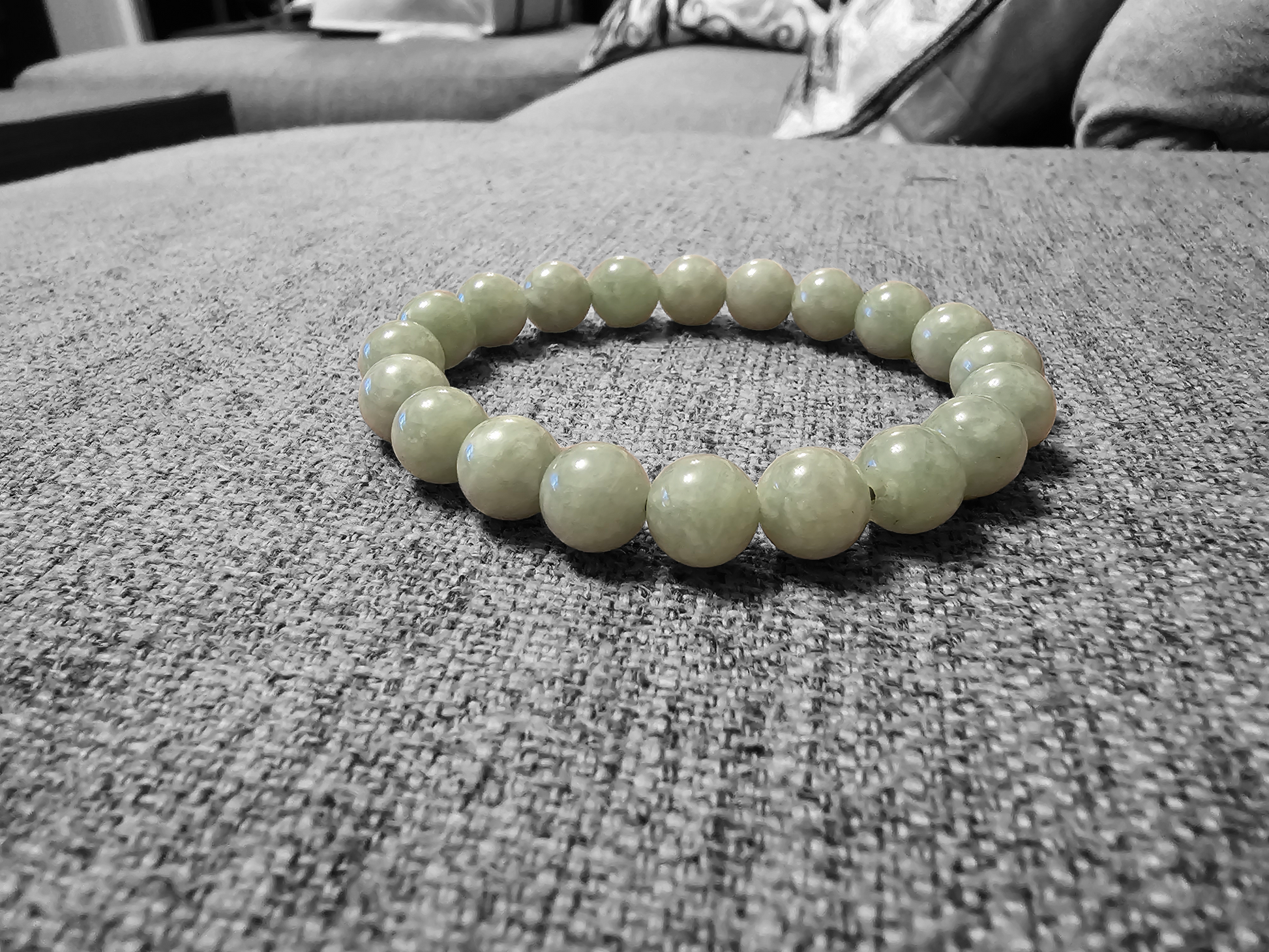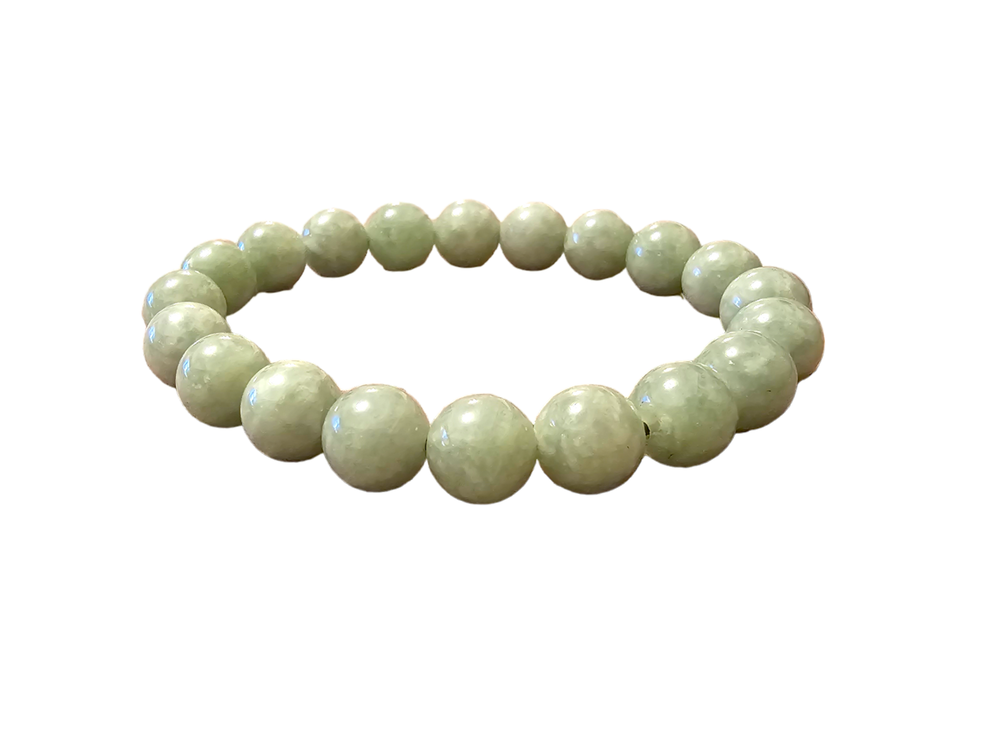 10mm each, 18 perfectly calibrated Green Jadeite Beads. Some of the rarest naturally occurring hues of A-Jadeite, calibrated Green creates a visually stunning Bracelet. Completely untreated and 100% natural, this is a great accompaniment to formal and casual settings alike.