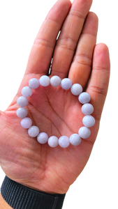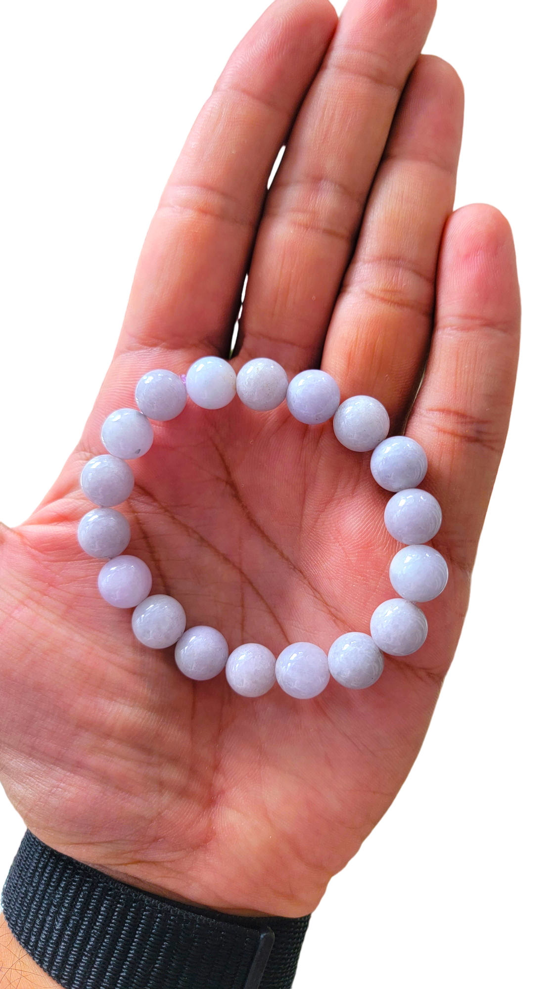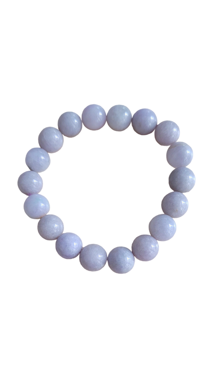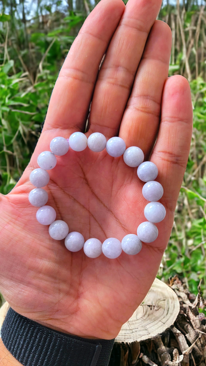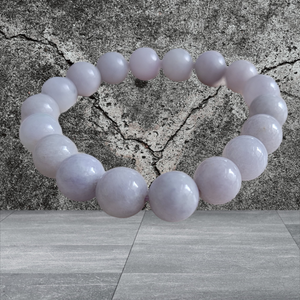 10mm each, 18 perfectly calibrated Lavender Jadeite Beads. Some of the rarest naturally occurring hues of Jadeite, this Burmese A-Jadeite Beaded Bracelet is perfect for an opulent look. Completely untreated and 100% natural, this is a great accompaniment to formal and casual settings alike.